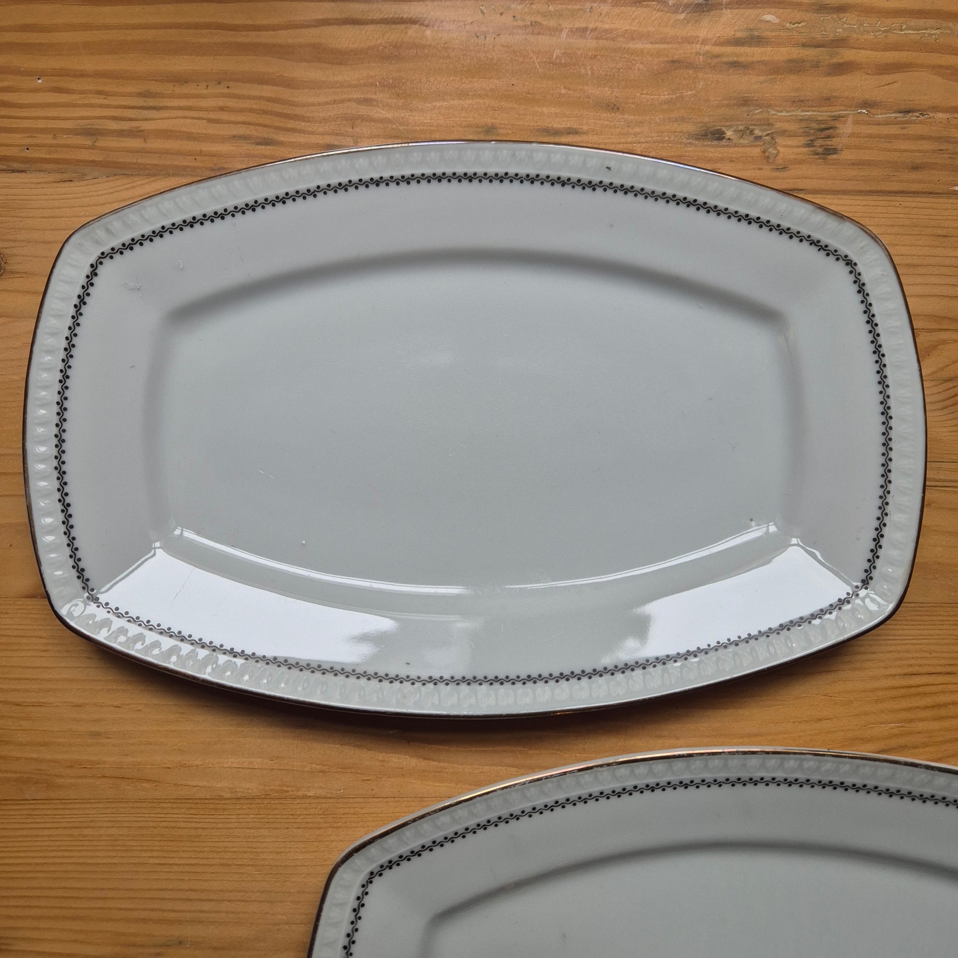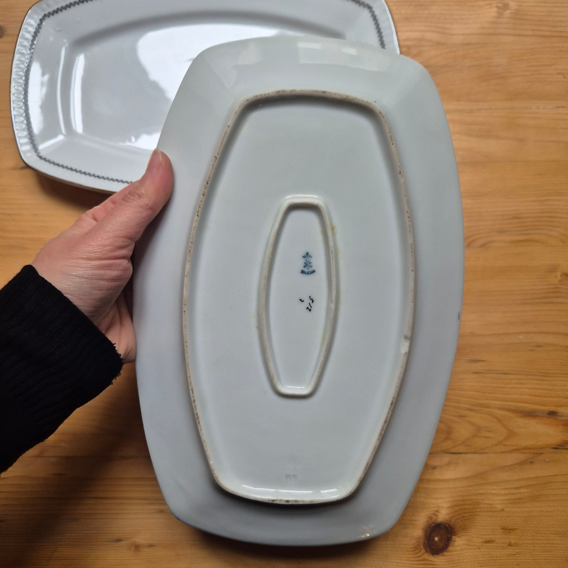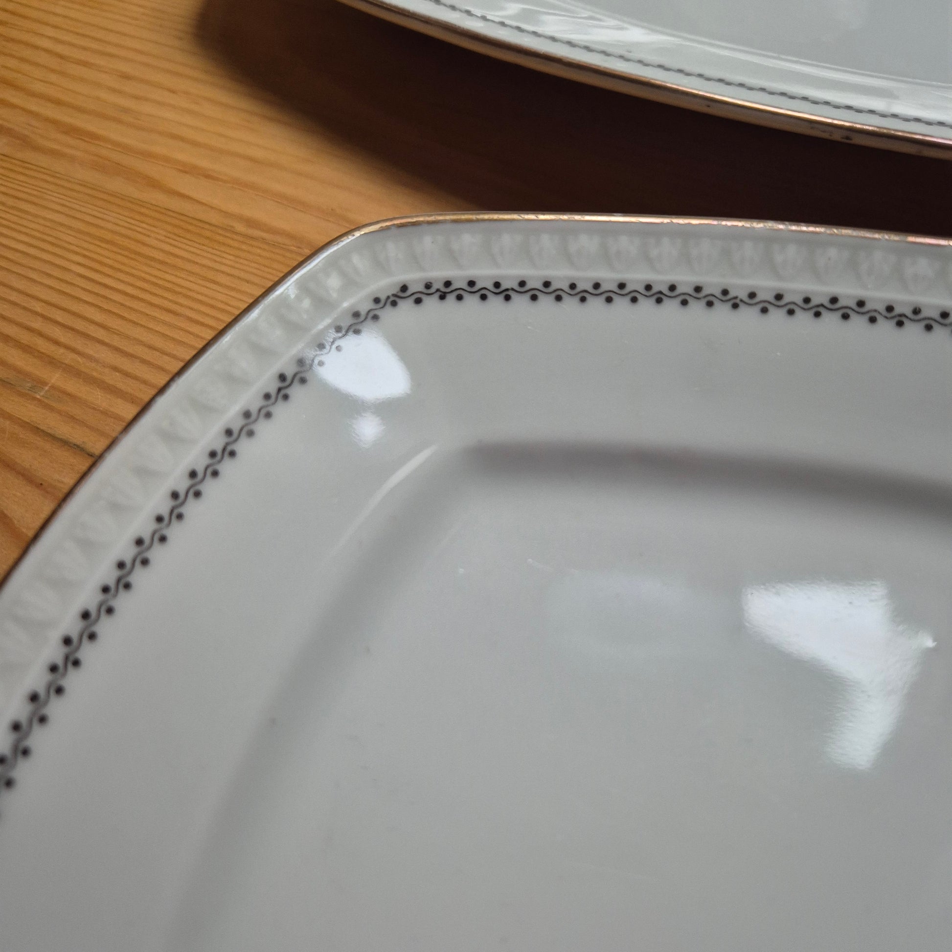 2x Alte Servierplatten Teller Vintage Silesia Porzellan weiß gold schwarz