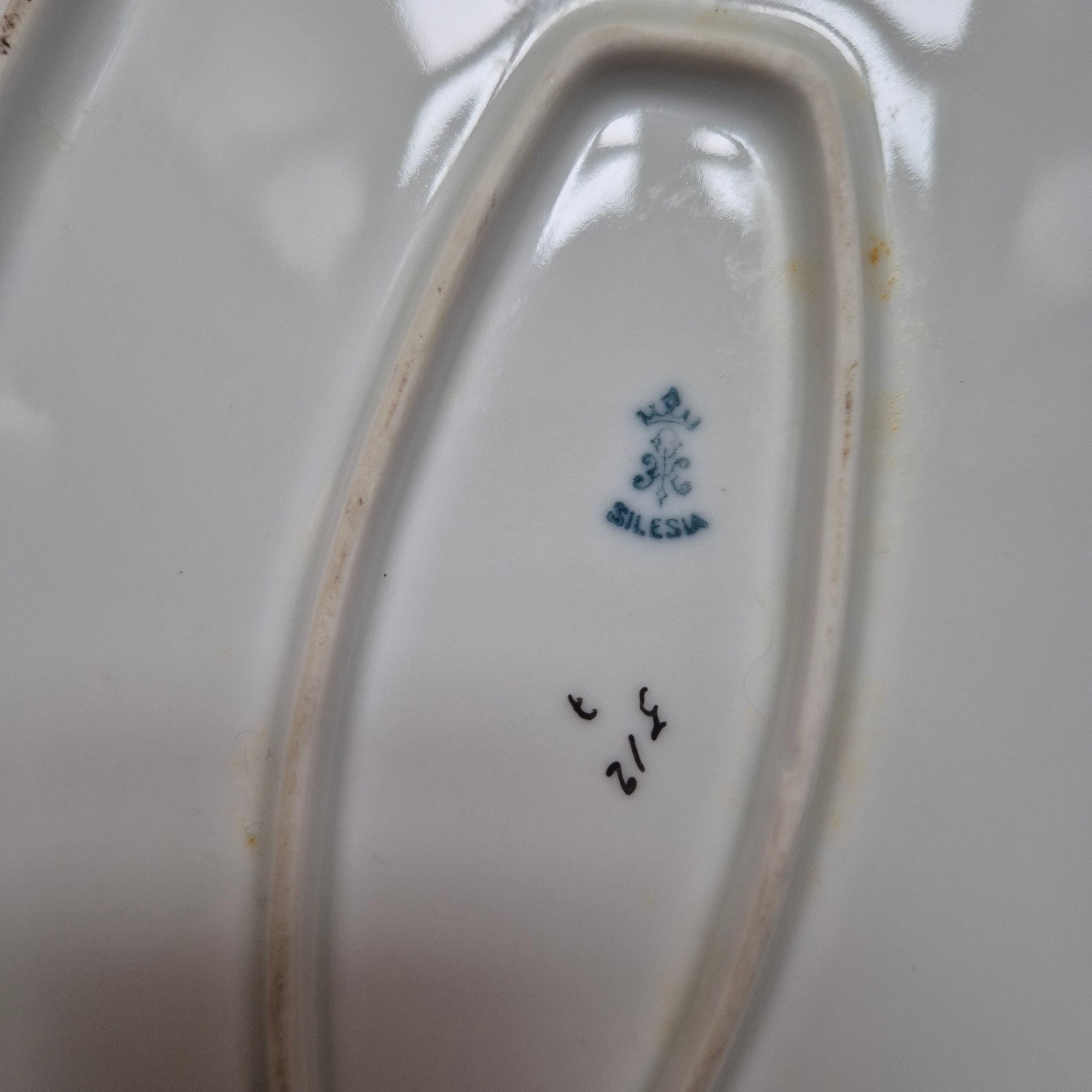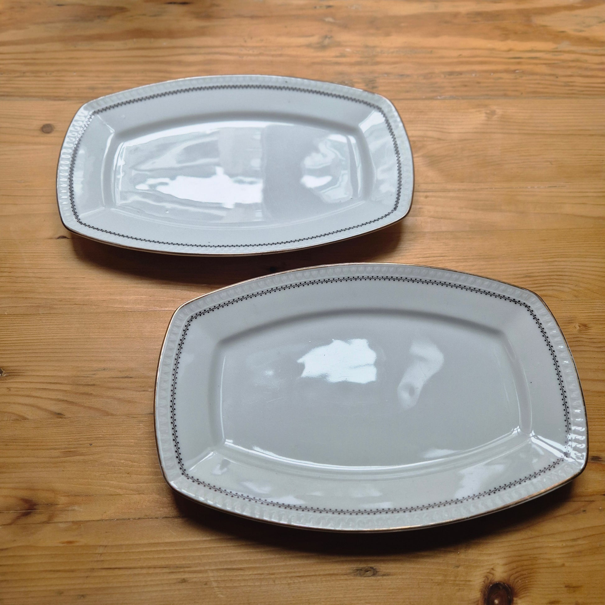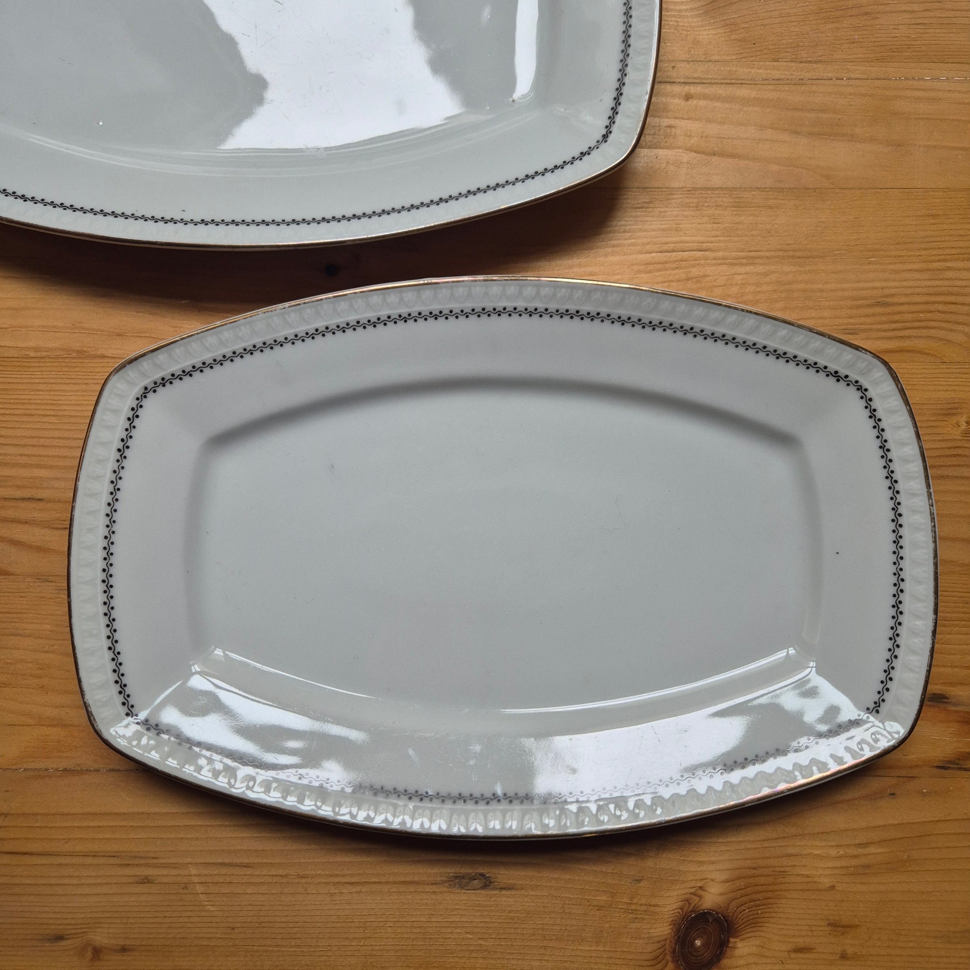 2x Alte Servierplatten Teller Vintage Silesia Porzellan weiß gold schwarz