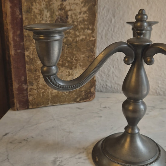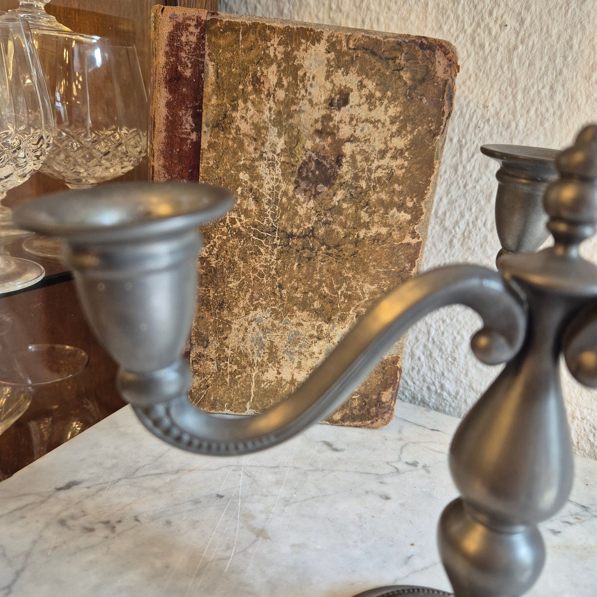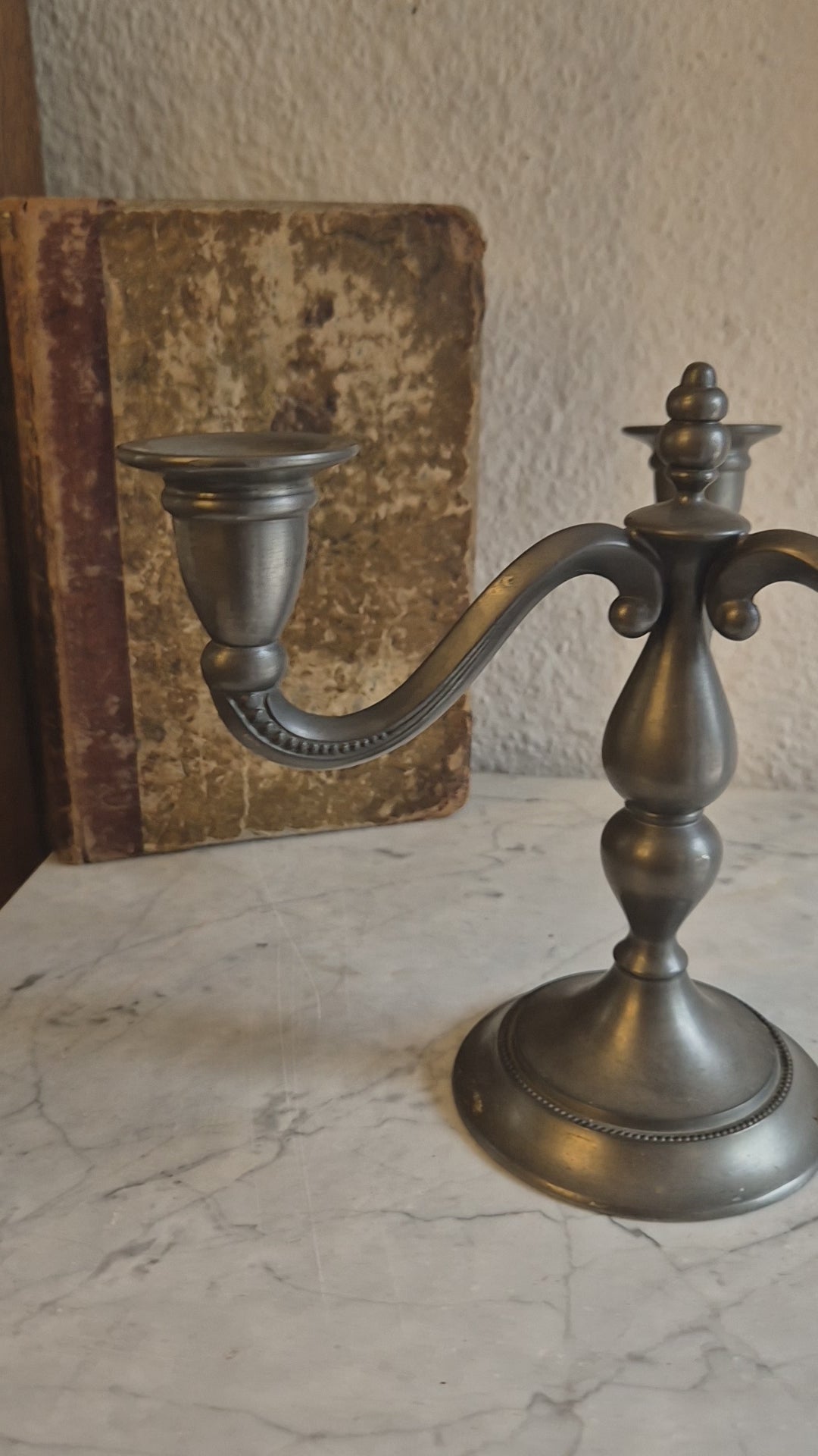 Verleihen Sie Ihrem Zuhause mit diesem verspielten Vintage Royal Holand Zinn-Daalderop 3-armigen Kerzenständer einen königlichen Charme. Die drei eleganten Arme tragen Ihre Kerzen stilvoll und schaffen ein warmes, einladendes Licht. Perfekt, um jedem Raum Charakter und einen Hauch Nostalgie zu verleihen – für gemütliche Momente voller Vintage-Flair und ein Augenzwinkern zeitloser Eleganz!