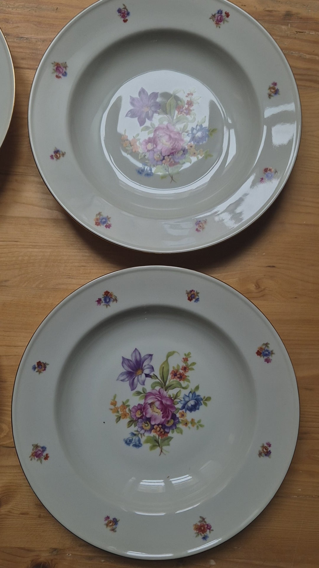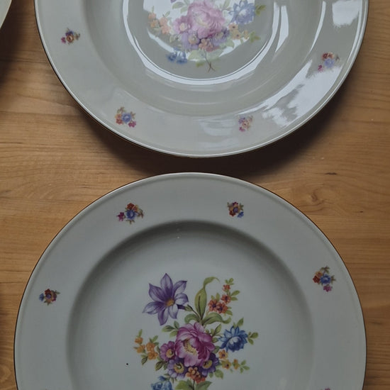 6x Antike Suppenteller Blumendekor weiß Goldrand Koenigszelt Made in Poland