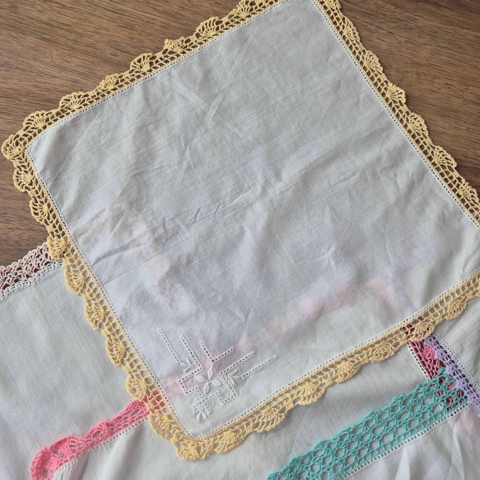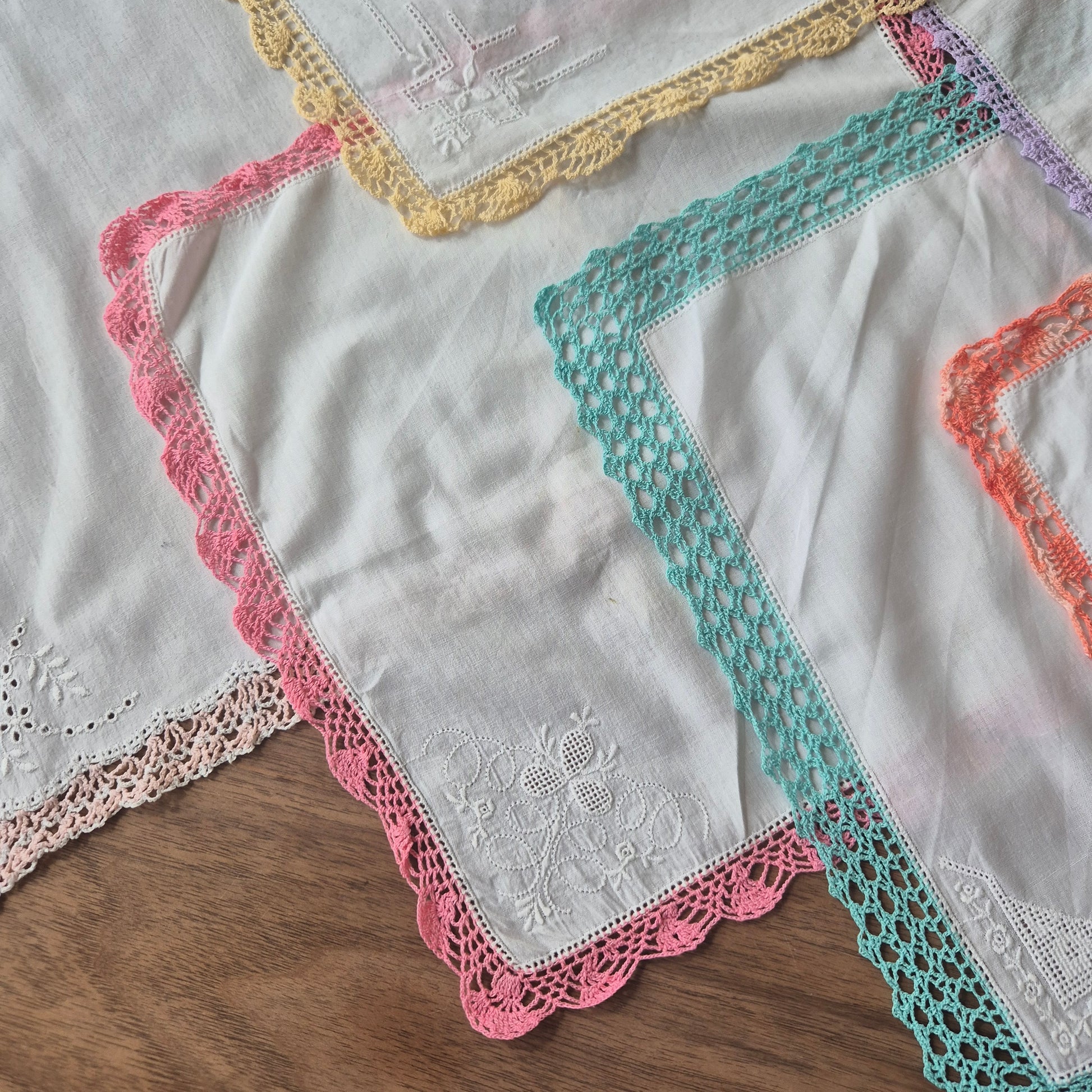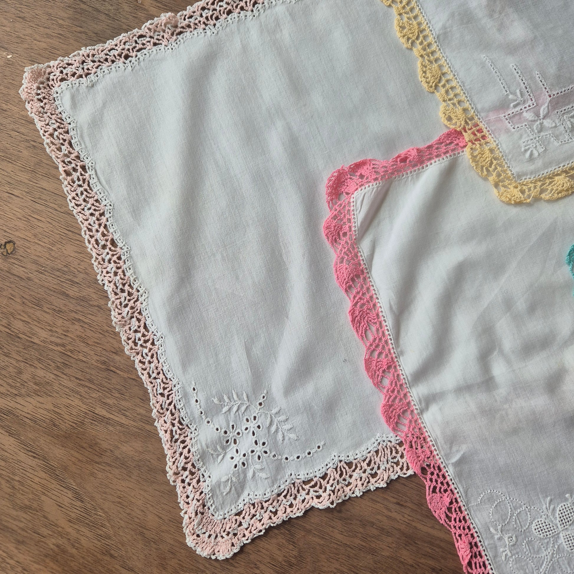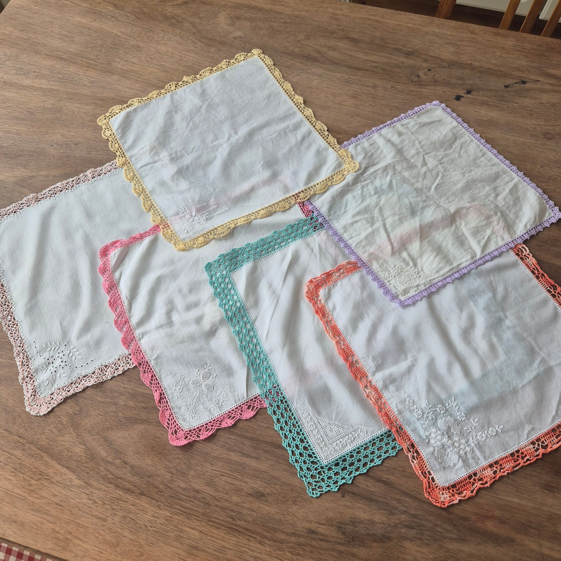 6x Spitzen Taschentücher geklöppelter Rand Stofftaschentücher Spitzenrand 24x24cm 🤍