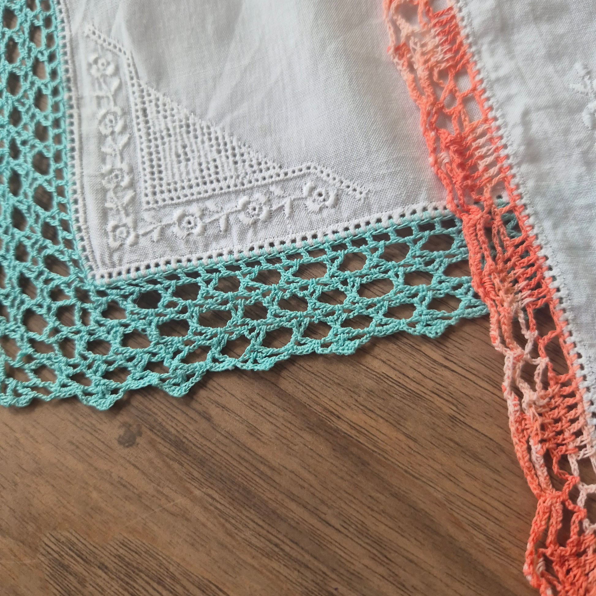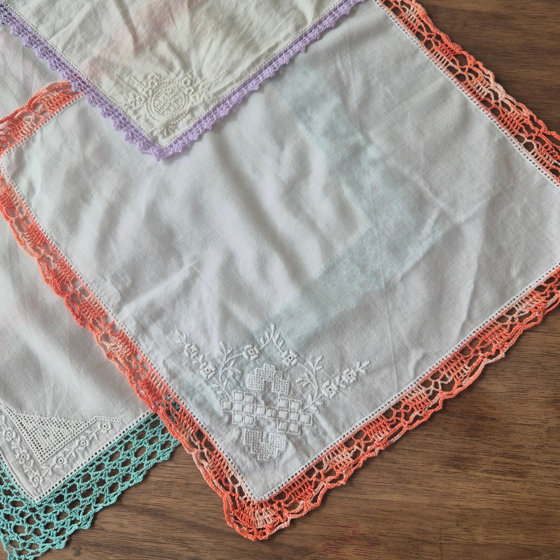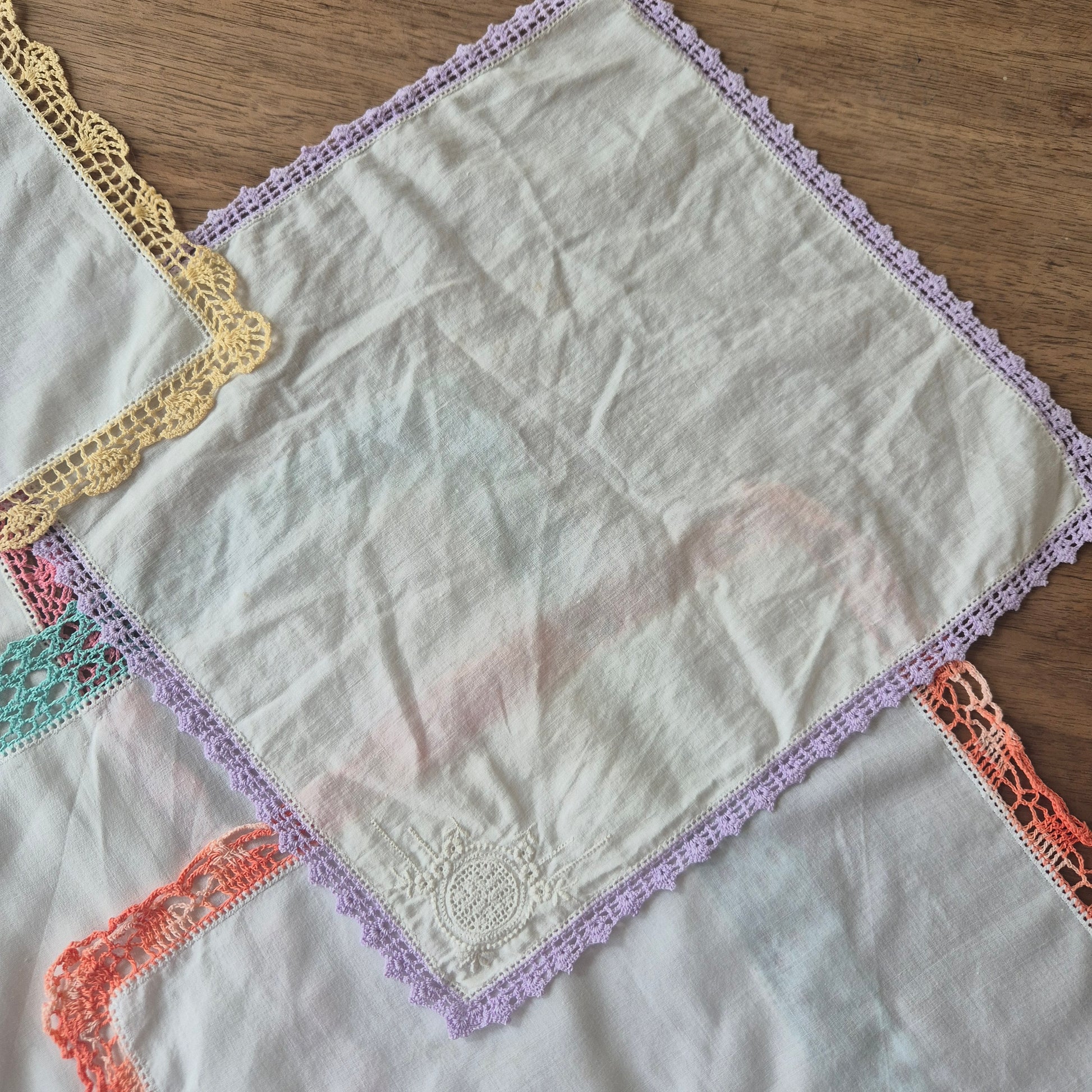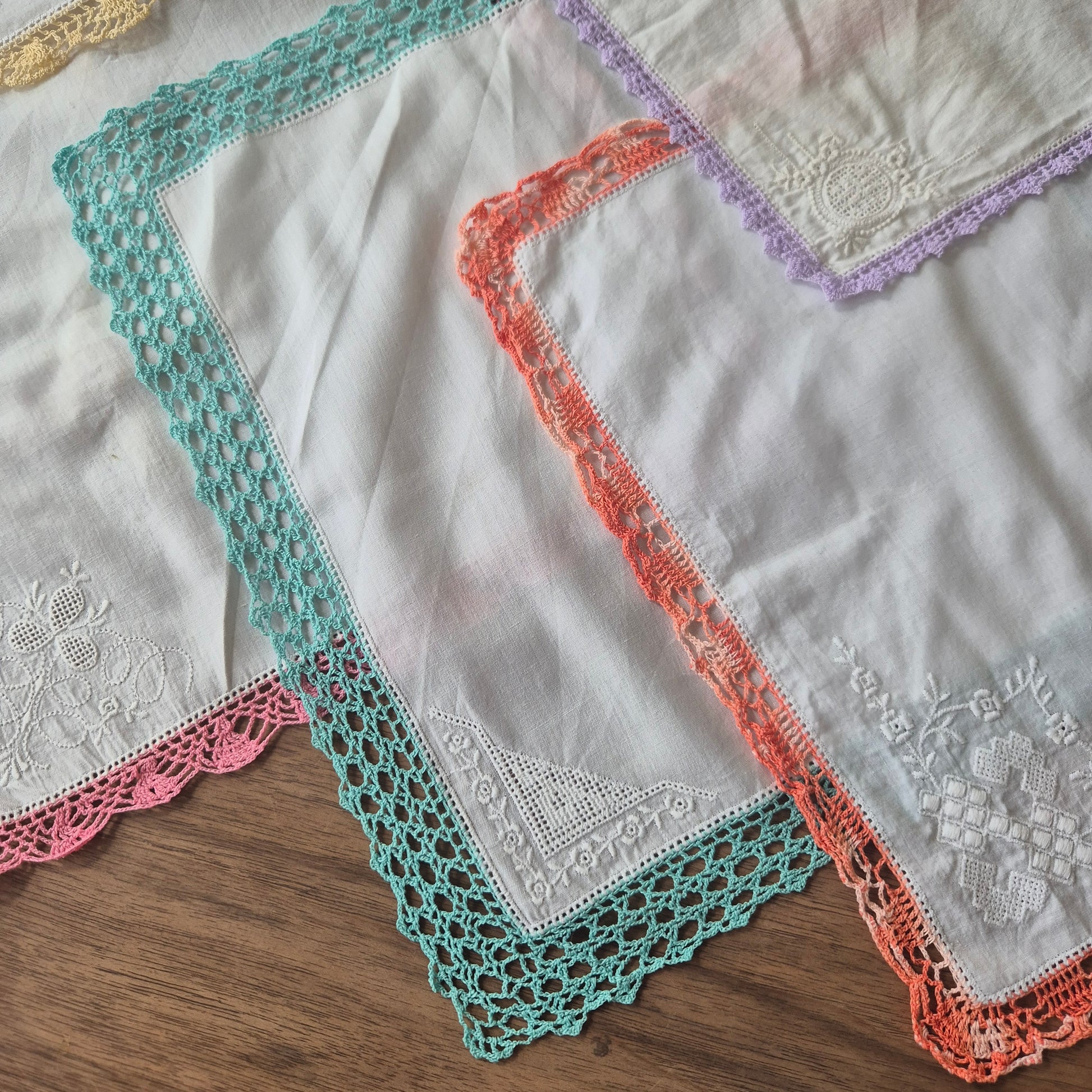 6x Spitzen Taschentücher geklöppelter Rand Stofftaschentücher Spitzenrand 24x24cm 🤍