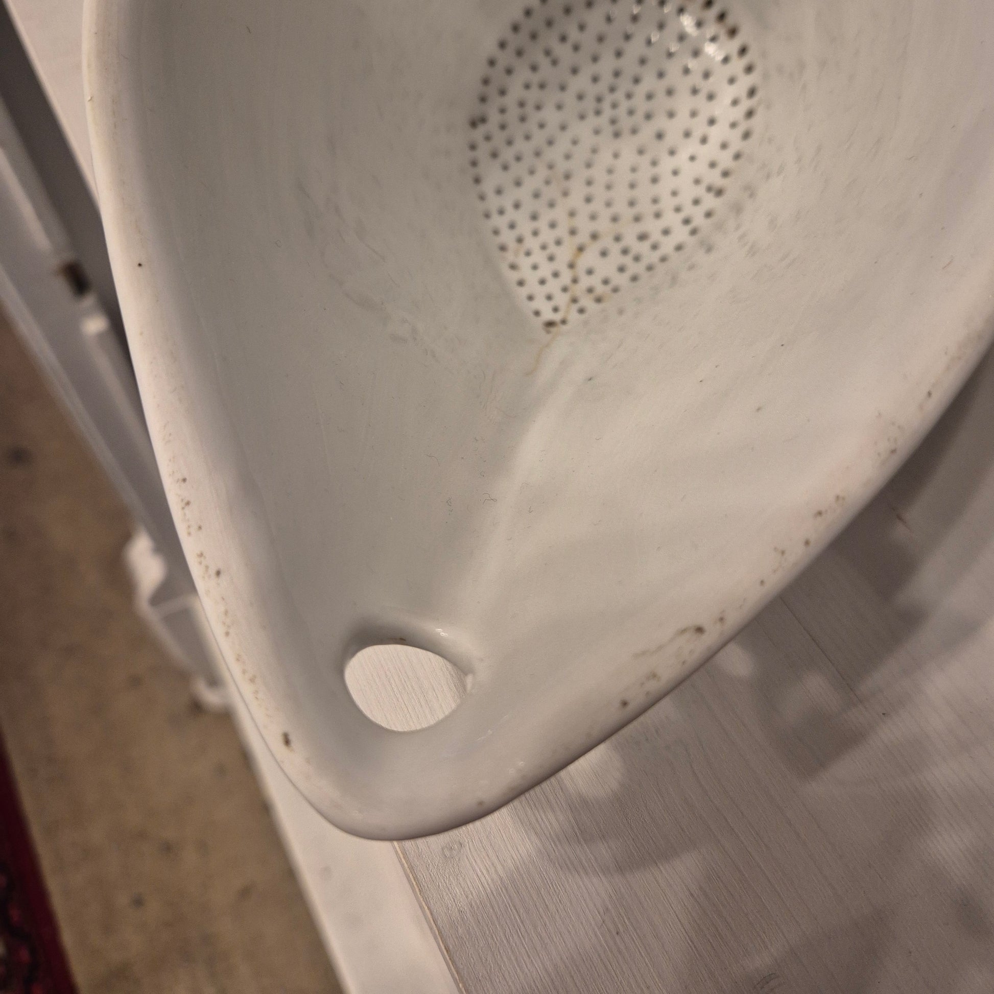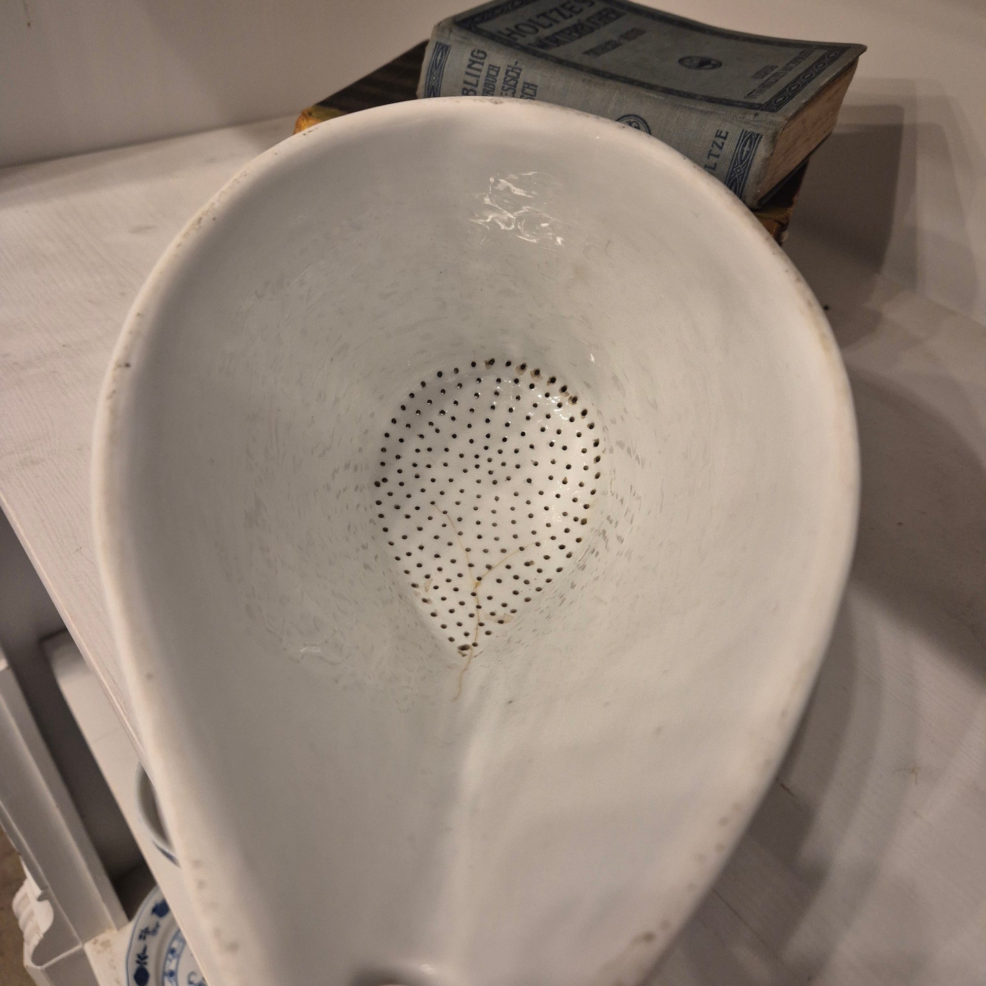 Dieses charmante Porzellansieb im klassischen Zwiebelmuster ist ein wahres Schätzchen für Liebhaber von Vintage-Schätzen! Mit seinem zeitlosen Blau-Weiß-Design bringt es nostalgischen Charme in jede Küche oder jeden Wohnraum. Das fein gearbeitete Sieb eignet sich perfekt als funktionales Dekostück – ob zum Mehlsieben oder einfach als Wanddeko, die Geschichten erzählt. Ein Stück Geschichte, das Handwerk und Eleganz vereint und jedem Raum einen Hauch von Authentizität verleiht.