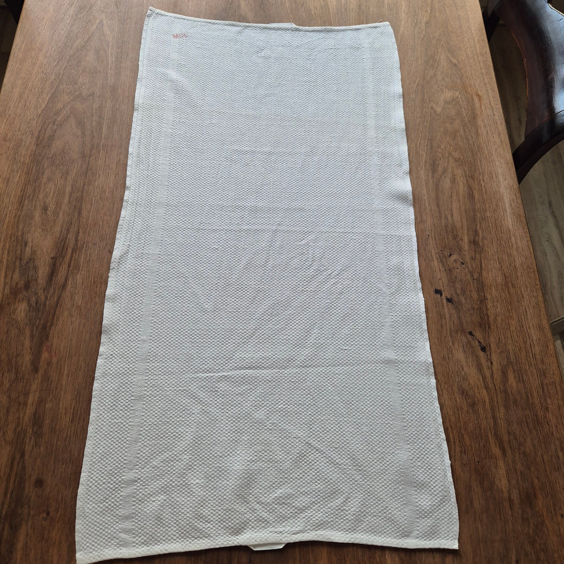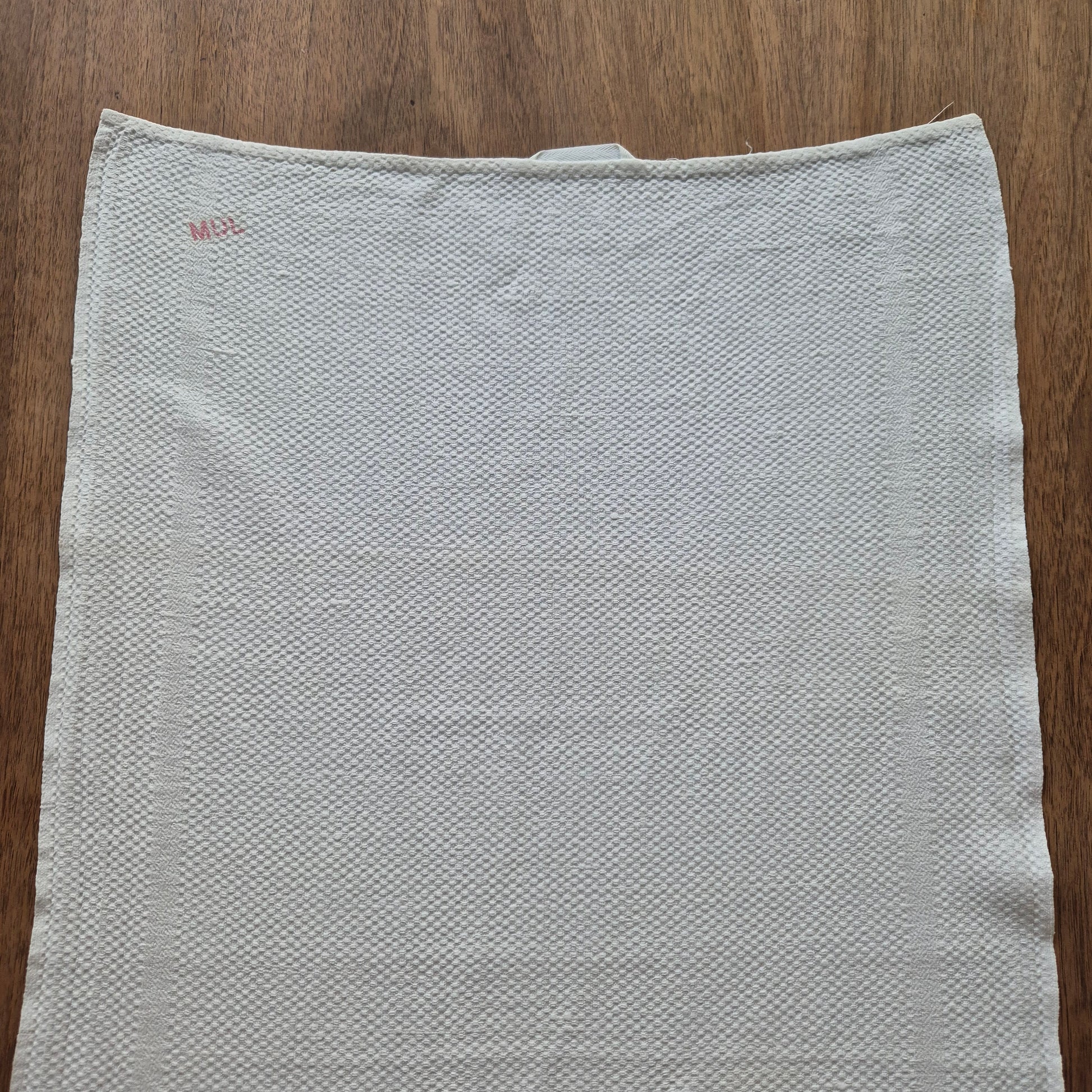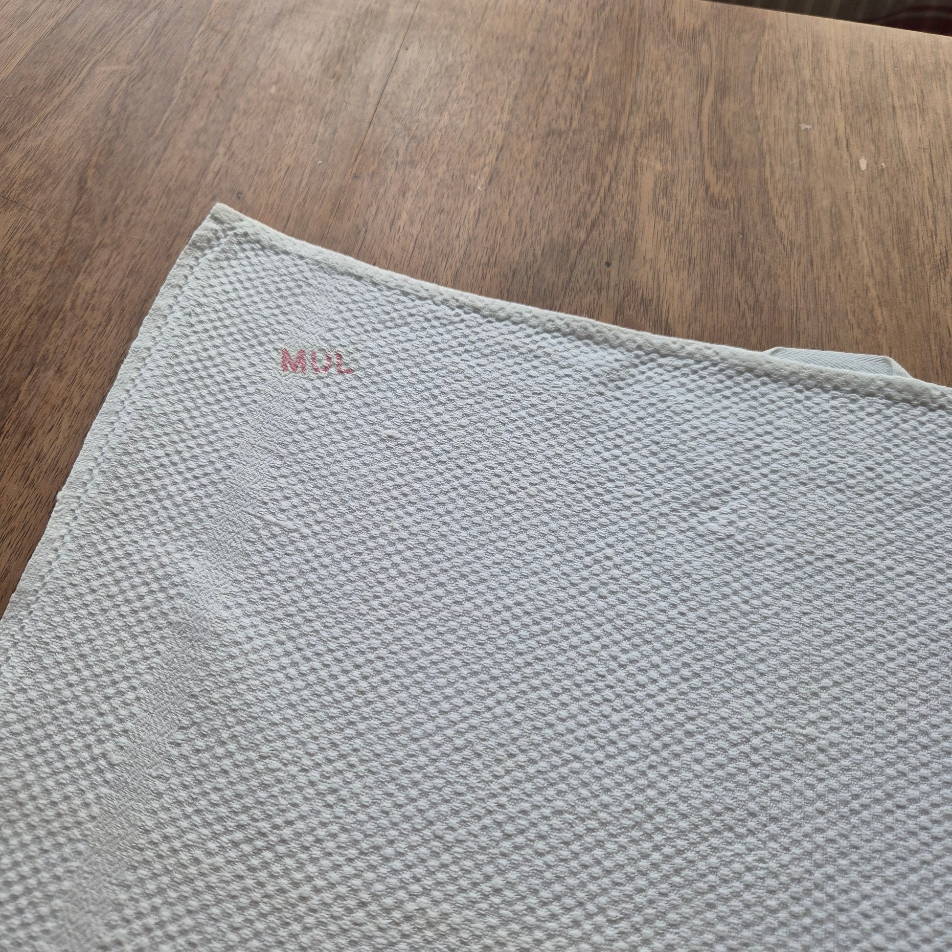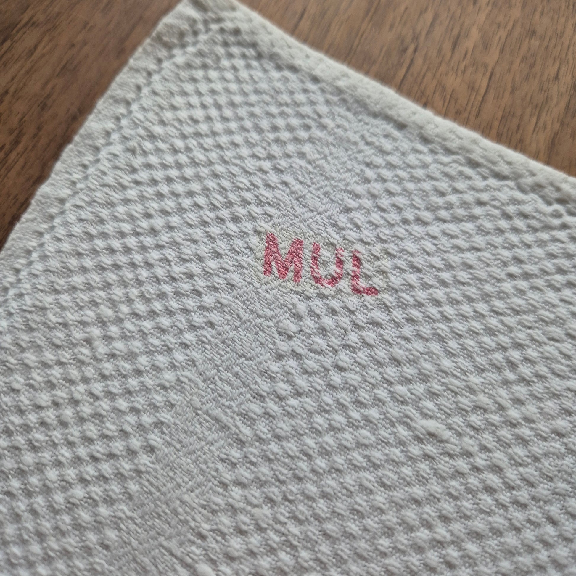 Antikes Leinen Küchen-&Geschirrtuch weiß Aufschrift "MUL"
