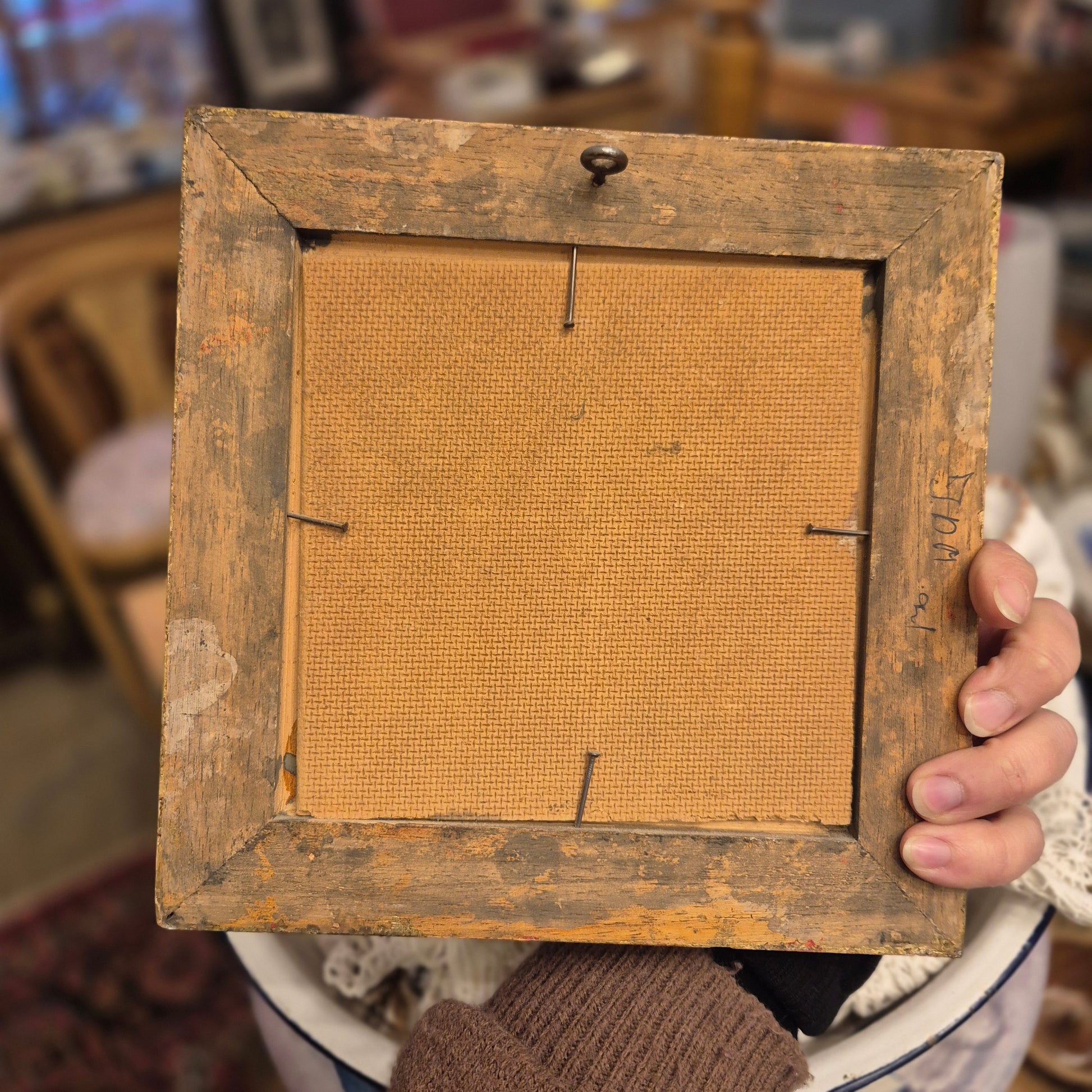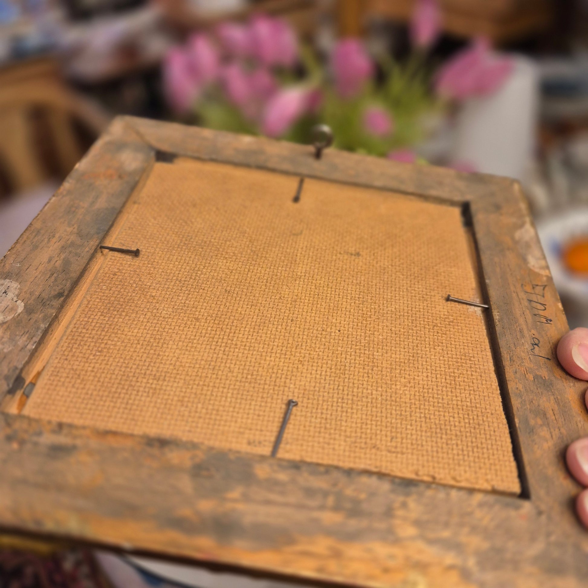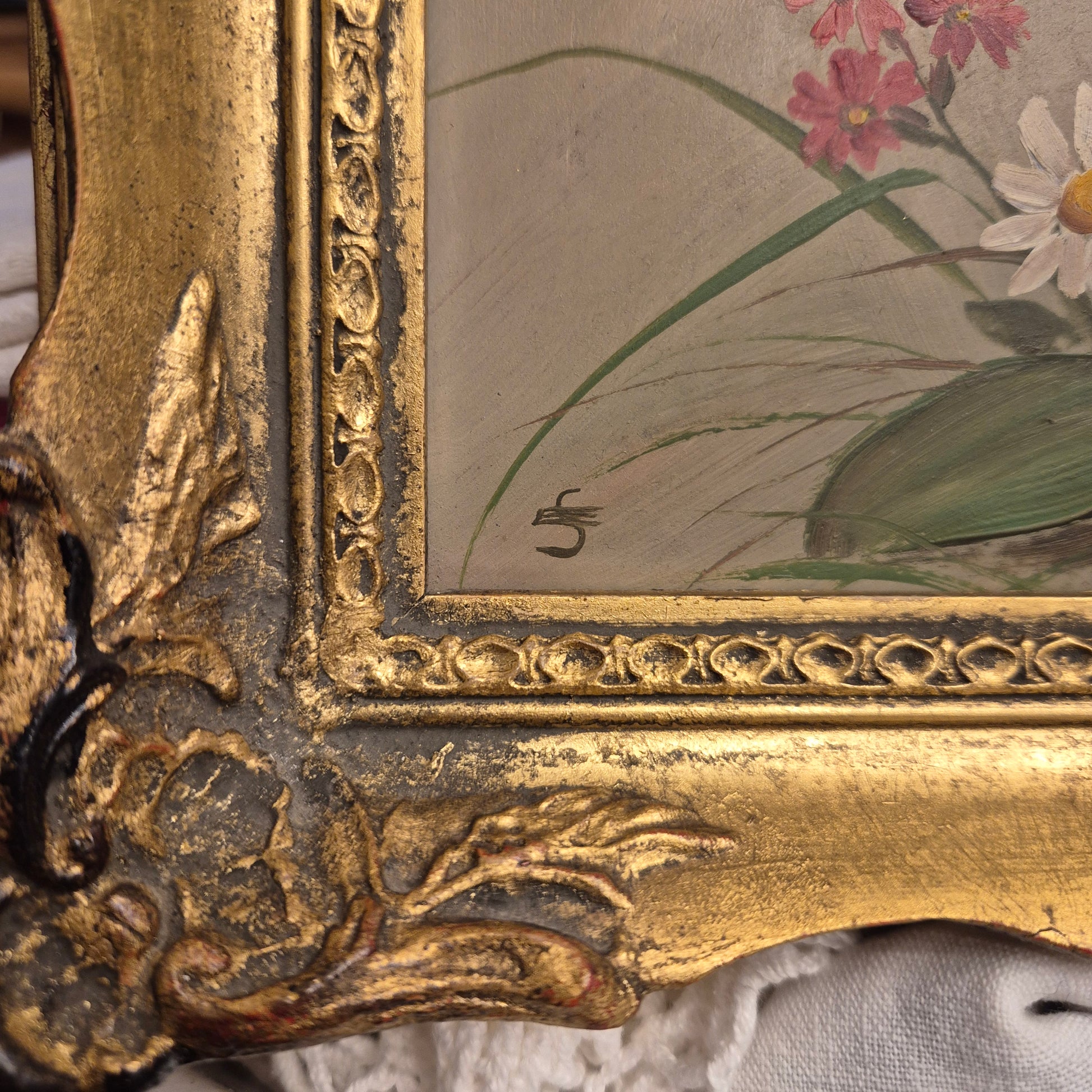 Altes gerahmtes Blumenbild blauer Enzian im Barock Stil Ölmalerei