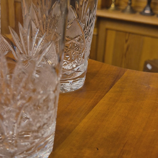 Sechs edle Kristall-Whisky Gläser im Vintage-Stil – perfekt für Genießer mit Geschmack! Diese klassischen Gläser bestechend durch ihre zeitlose Eleganz und hochwertige Verarbeitung. Ideal zum Servieren von Whisky, Bourbon oder anderen edlen Spirituosen. Das Set bringt nostalgischen Charme in jedes Wohnzimmer und macht sich hervorragend in der Hausbar. Ein Glas weist einen minimalen Chip auf – aber hey, das verleiht ihm nur noch mehr Charakter! Ein wunderschönes Stück Vintage-Geschichte für Sammler und Liebhaber klassischer Barware.