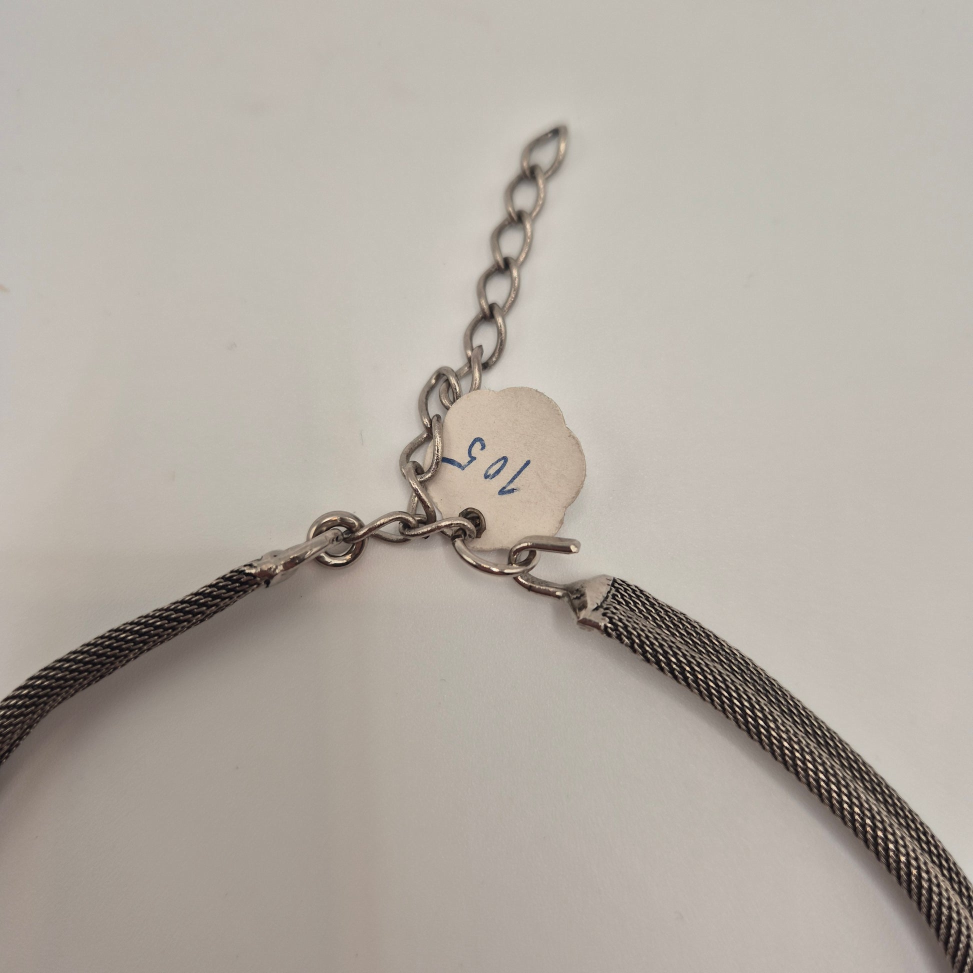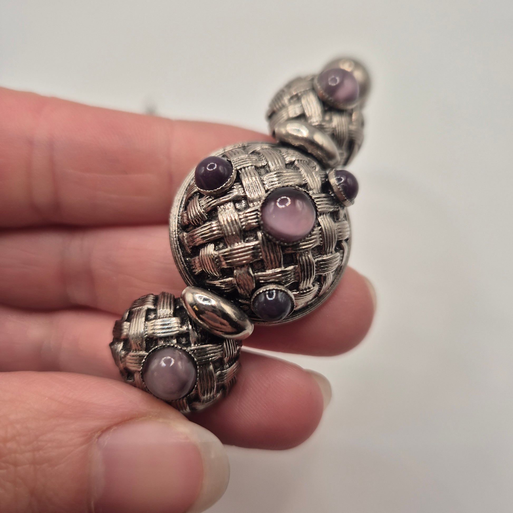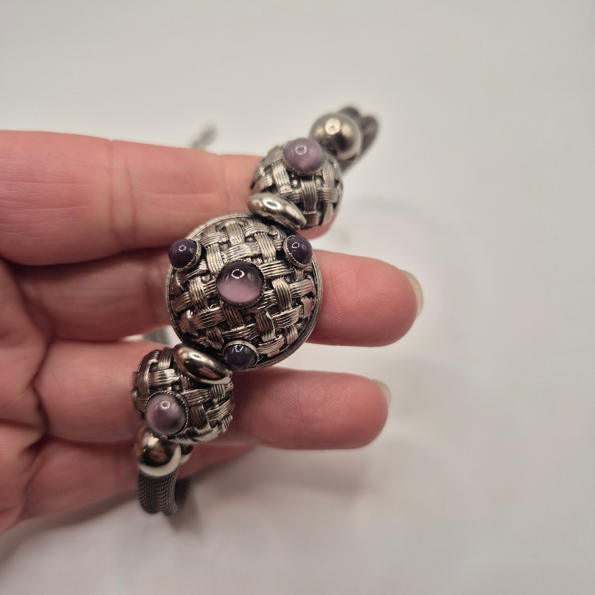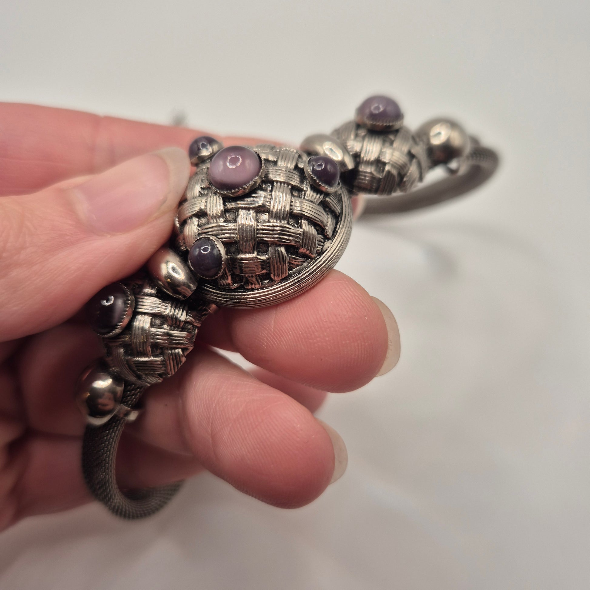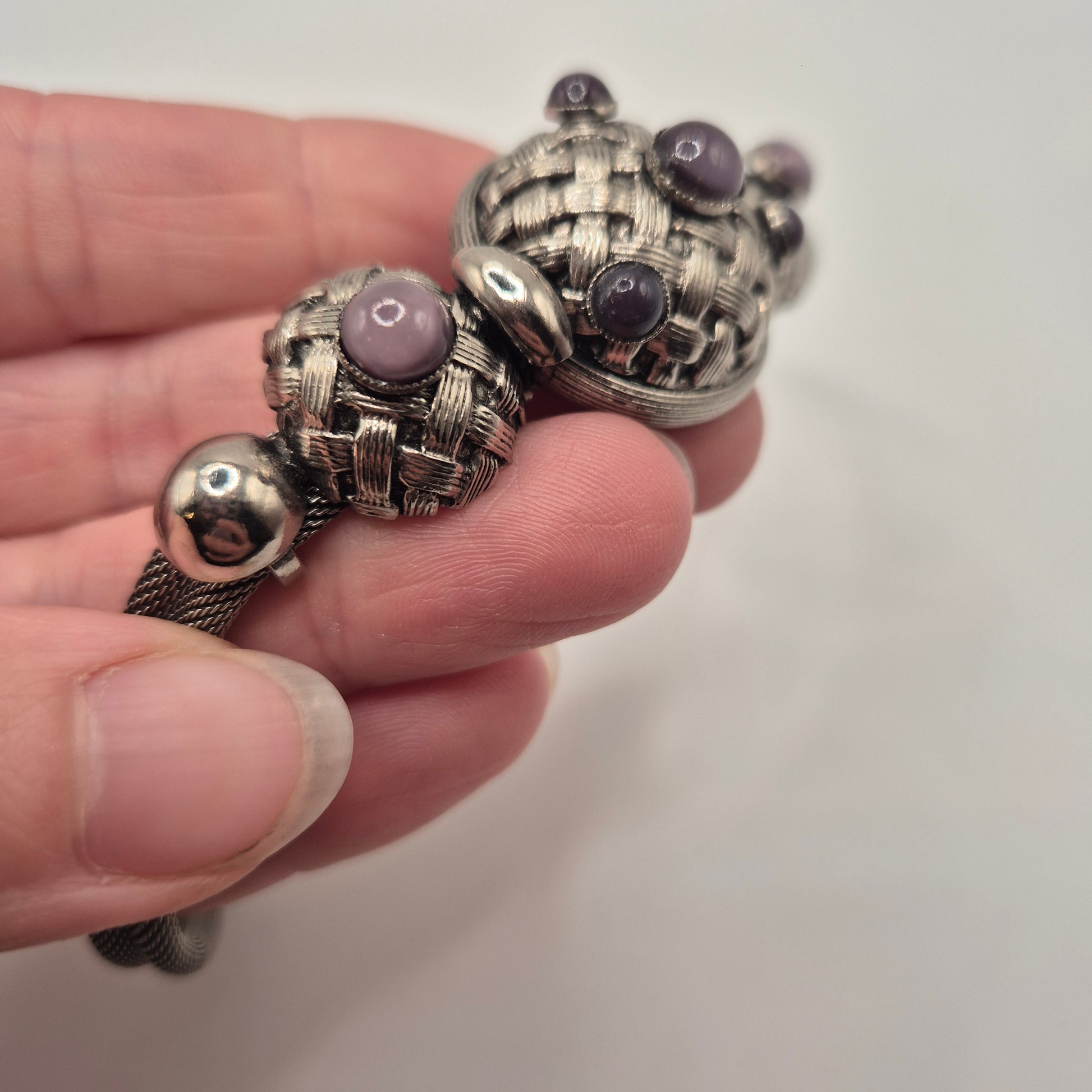 Vintage 80er Jahre Mesh Chocker Silberfarbend mit Lila Stein Cabochon Stil