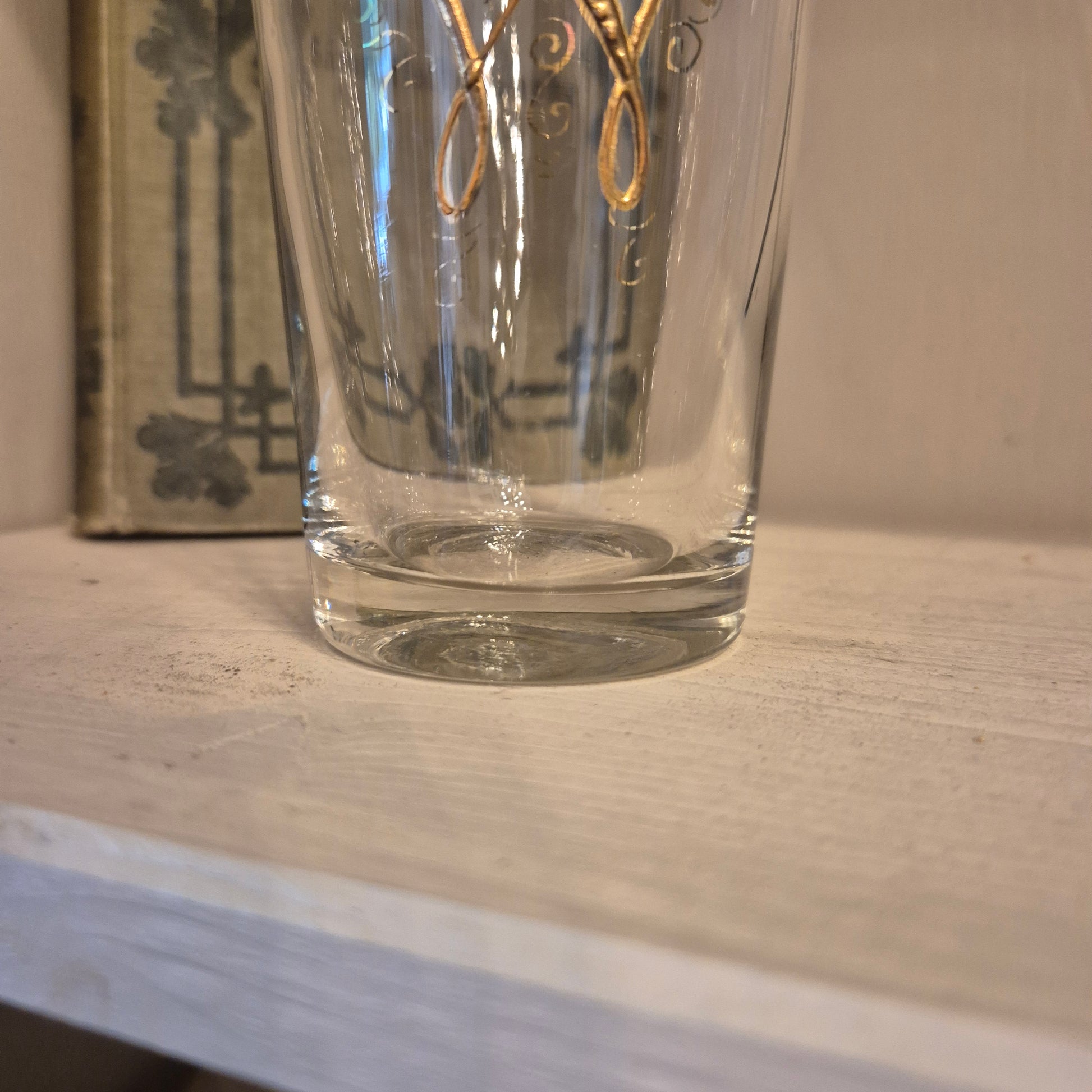 Antikes Jugendstil Glas Trinkglas mit goldenem Buchstabe W Monogramm W.