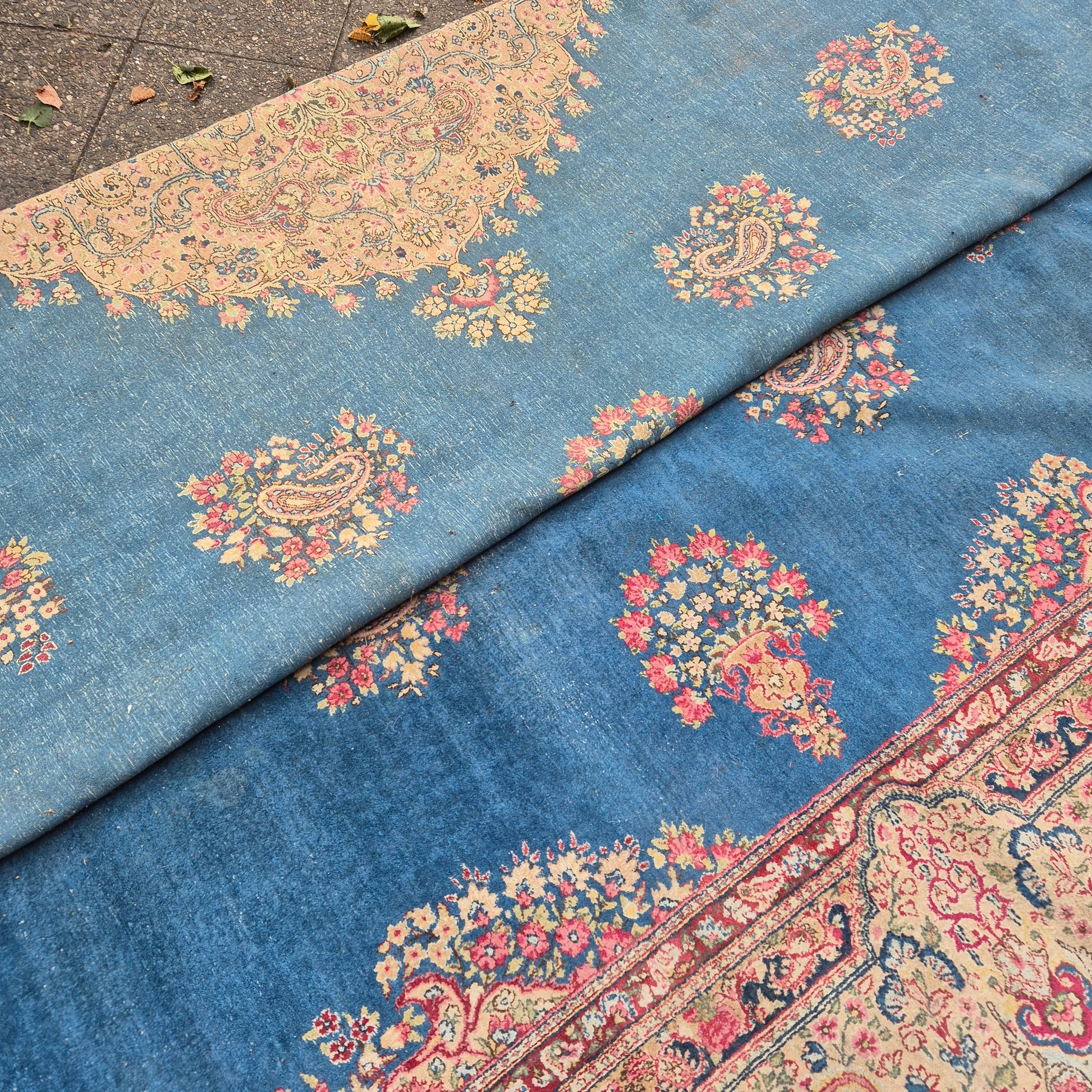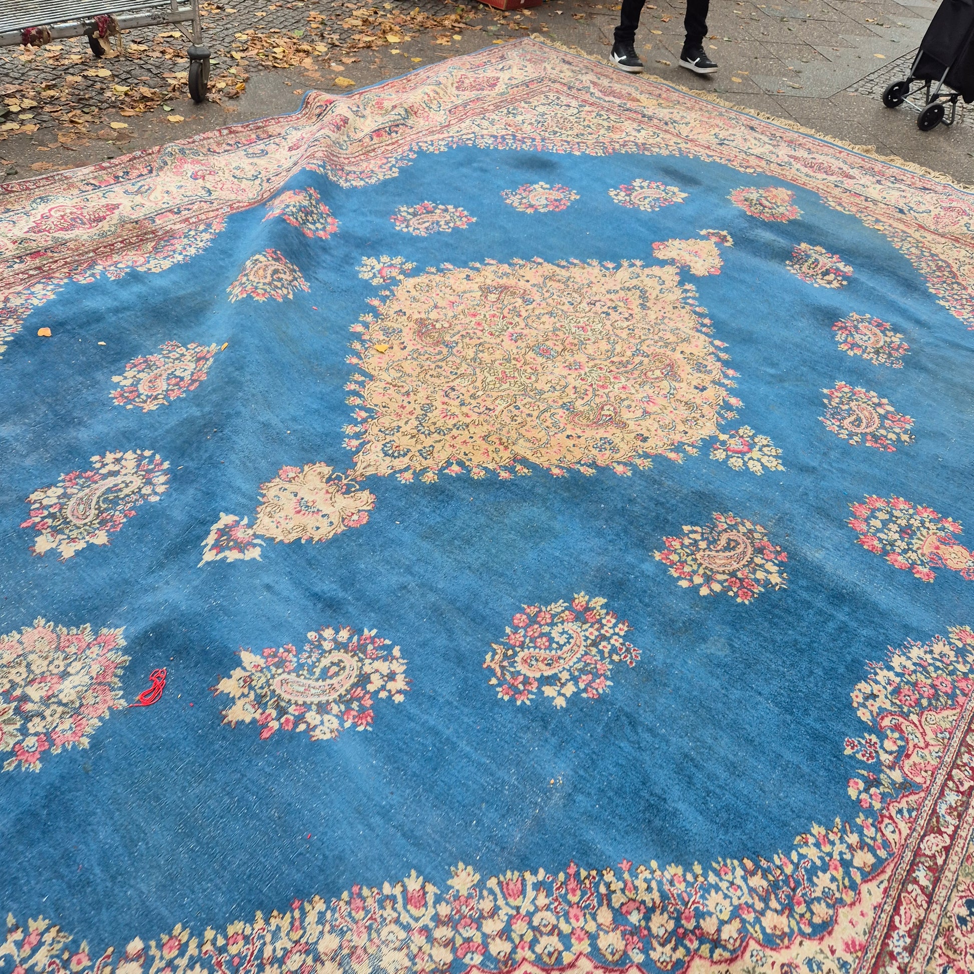 Befindet sich im original Zustand. Nicht gereinigt! Kleine Strukturfehler (Löcher usw.) aufgrund des alters möglich. Antiker Perserteppich aus Villa (ca. 550x400 cm) – Ein Stück Geschichte für Ihr Zuhause