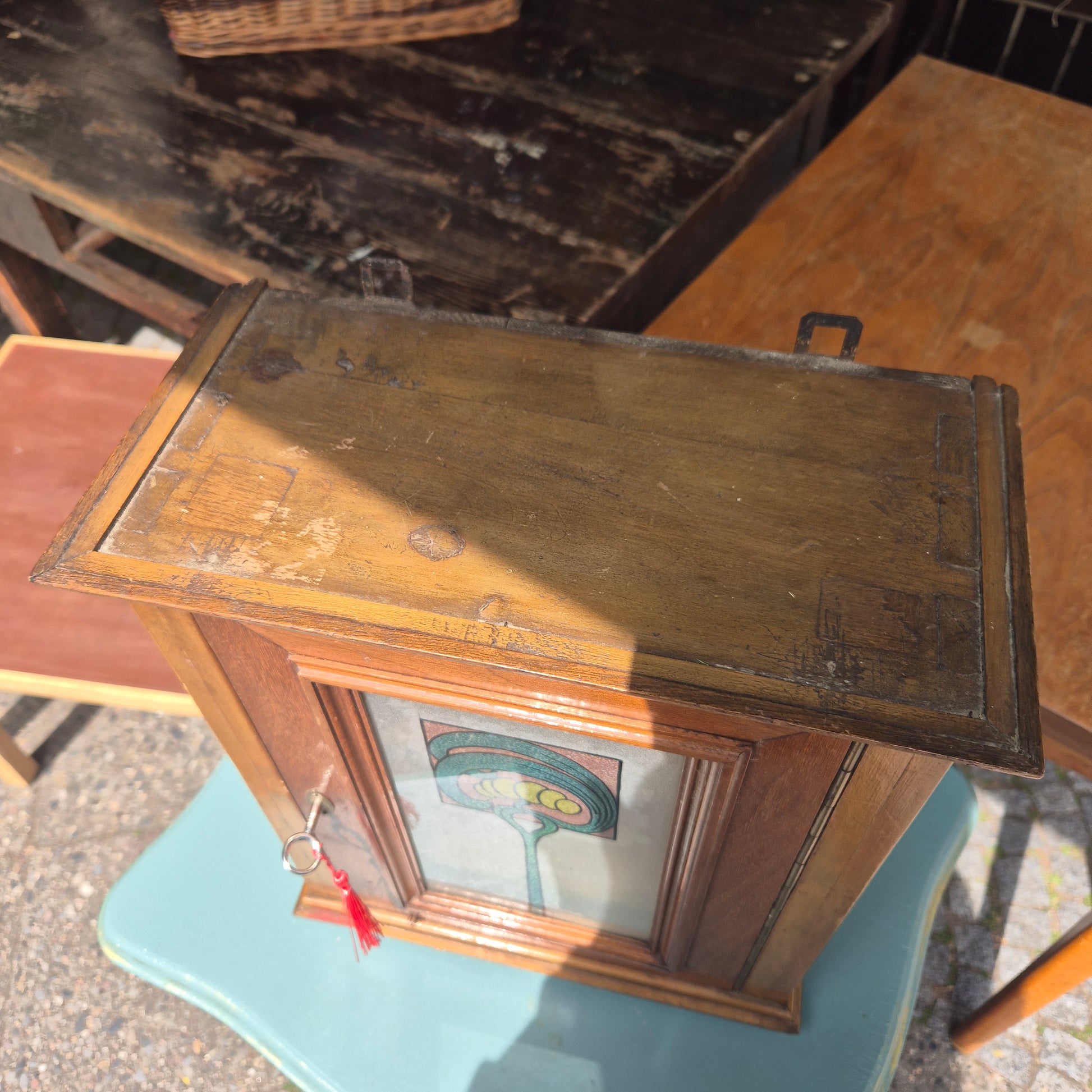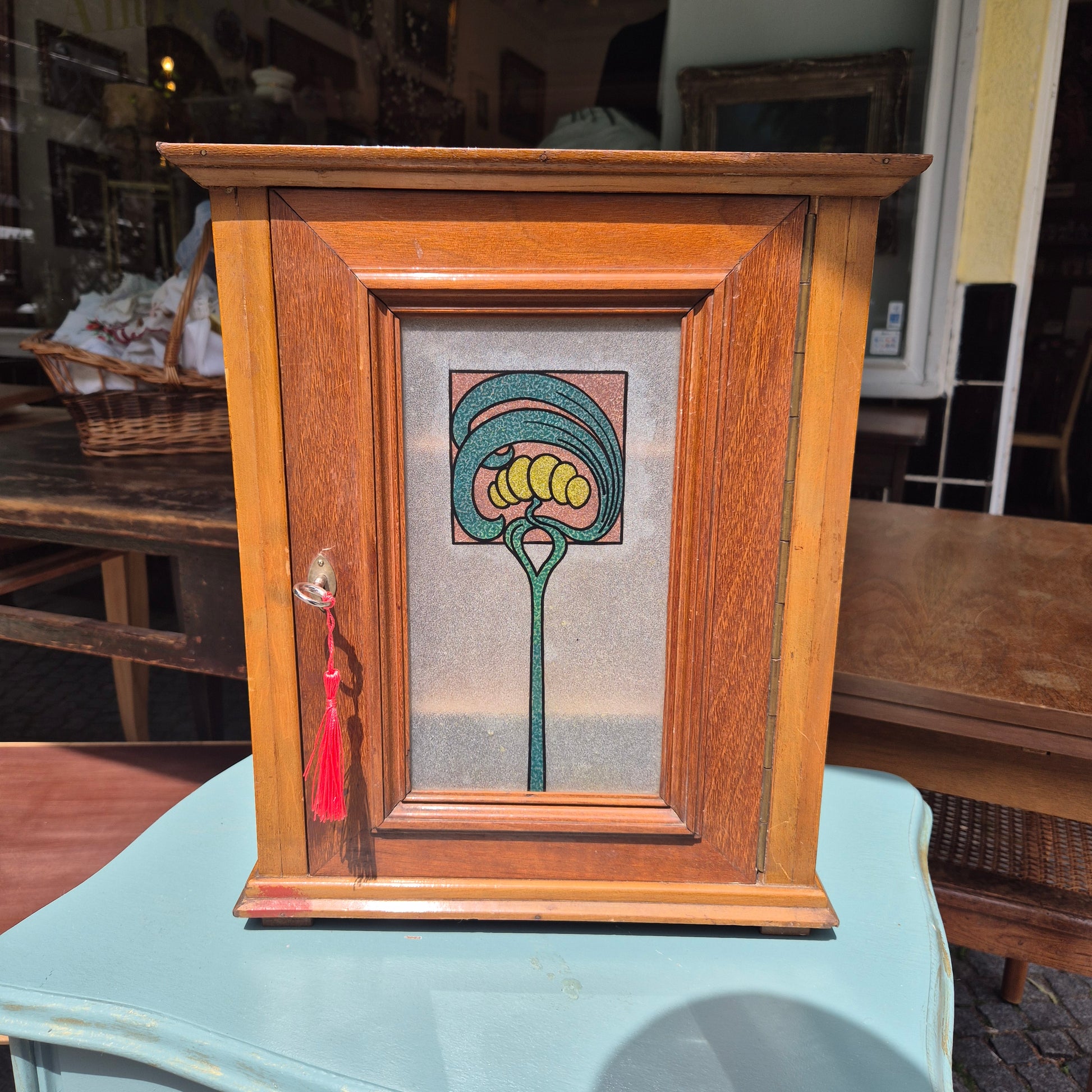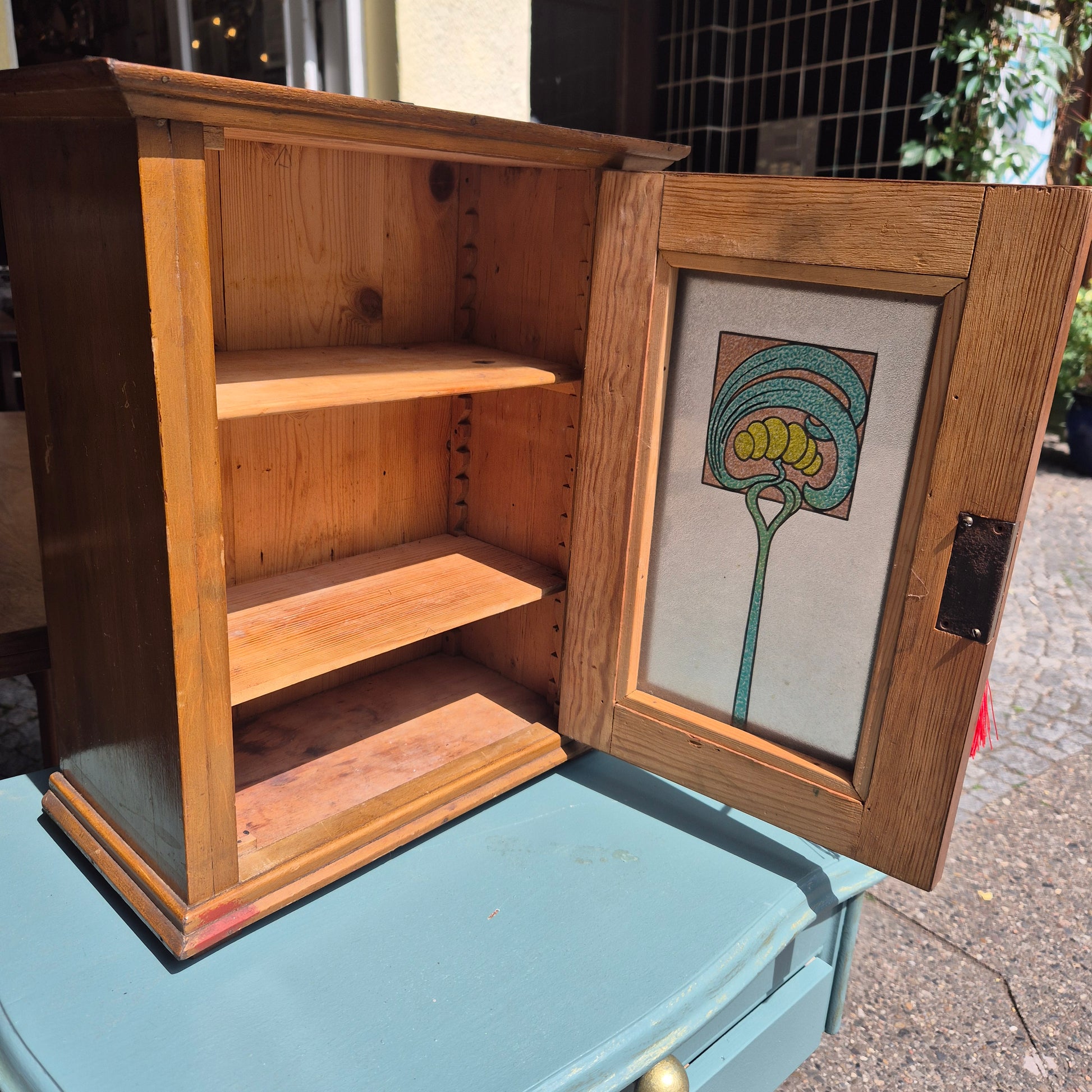 Jugendstil kleines Hängeschränkchen mit originalem Glas Medizinschrank Badschrank Flurschrank