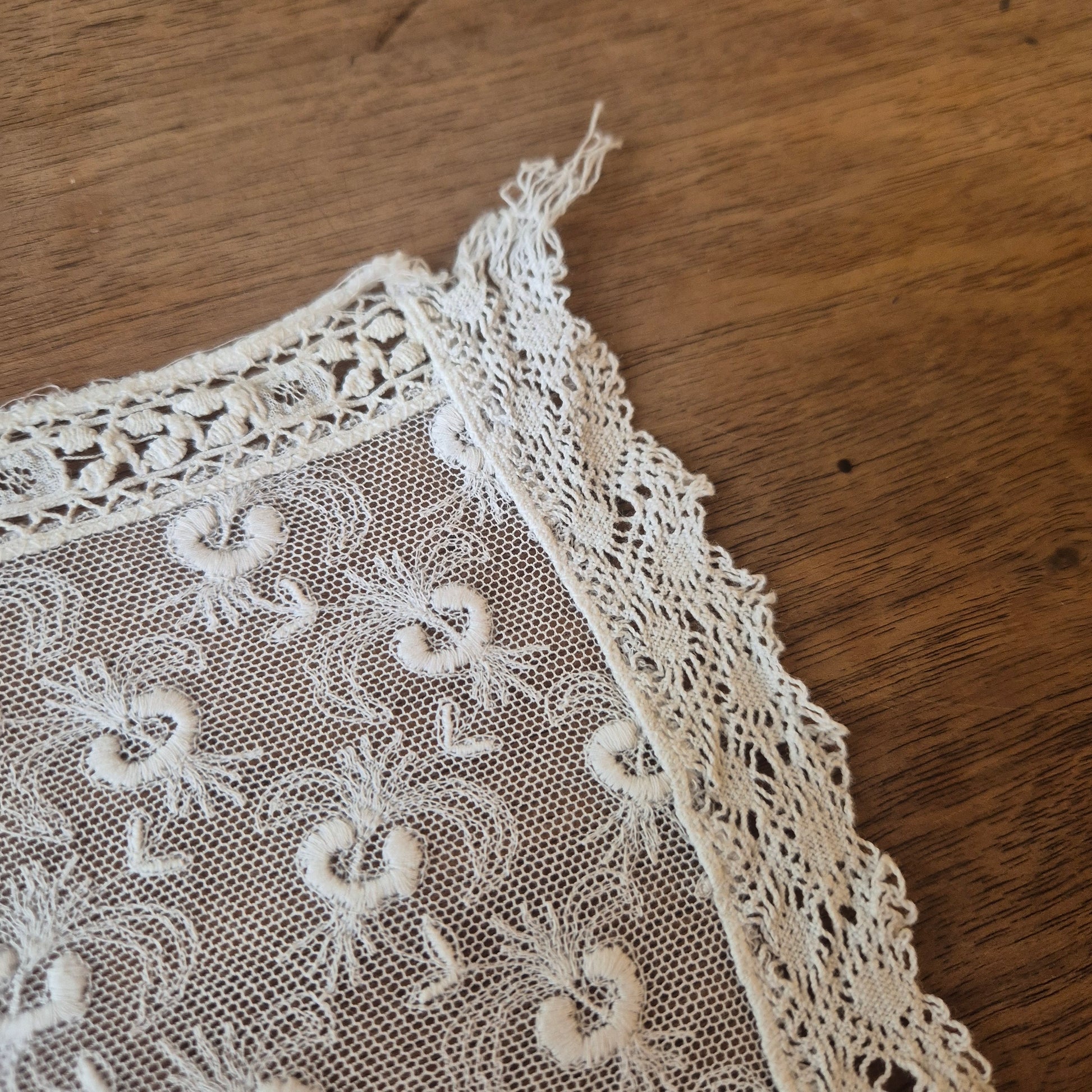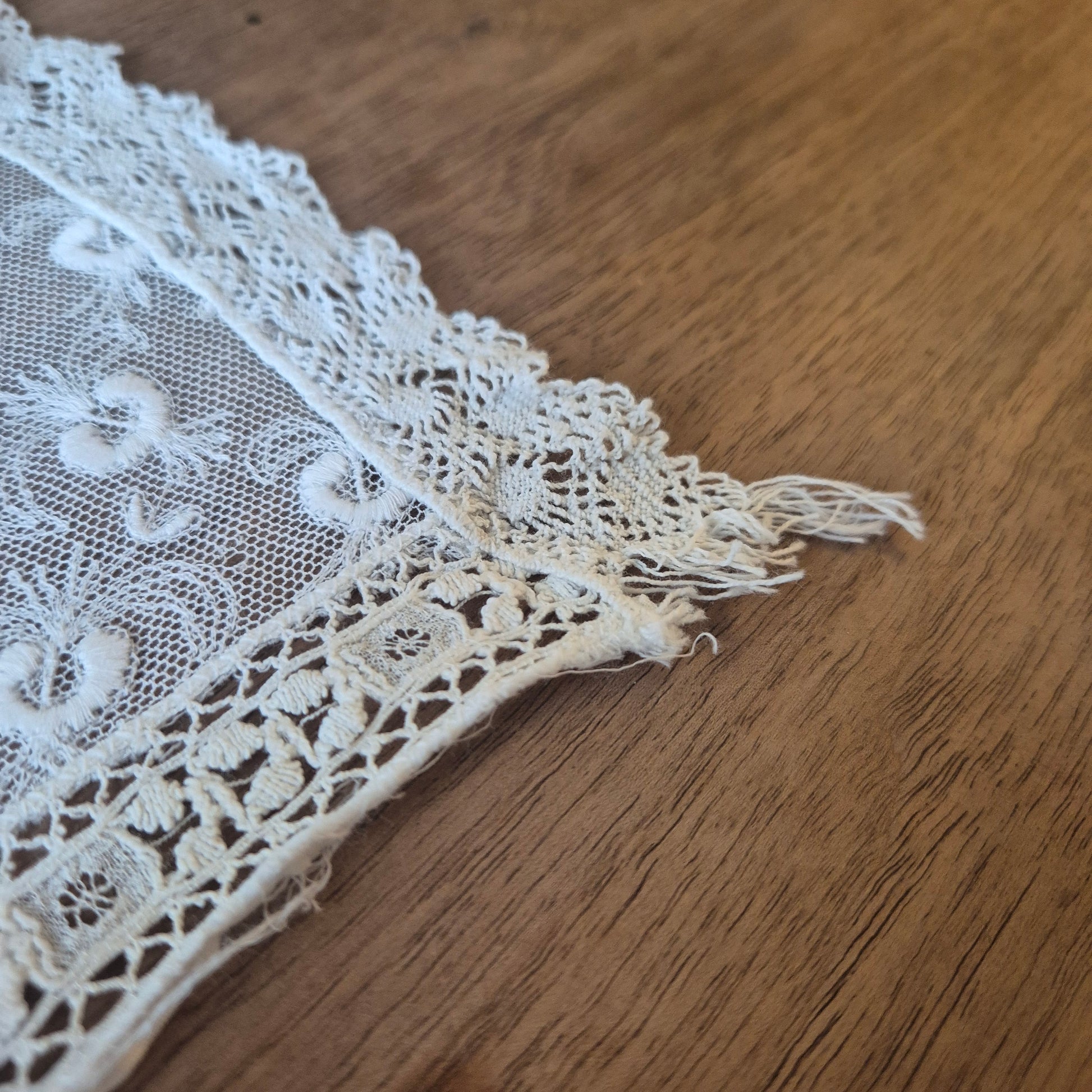 1x Antike handgemachte Spitze Borte Stickerei 16x78cm Zierdeckchen