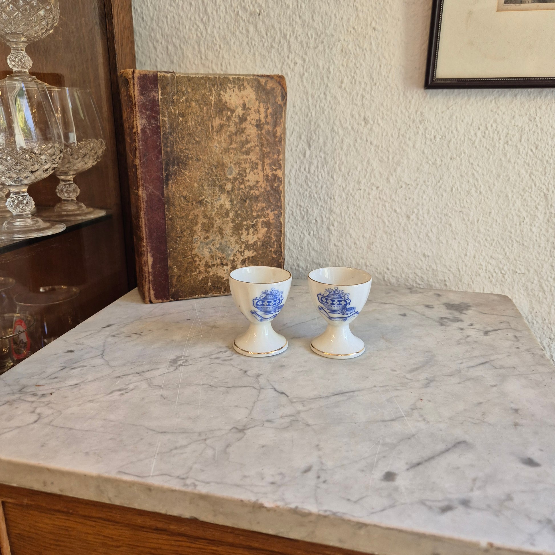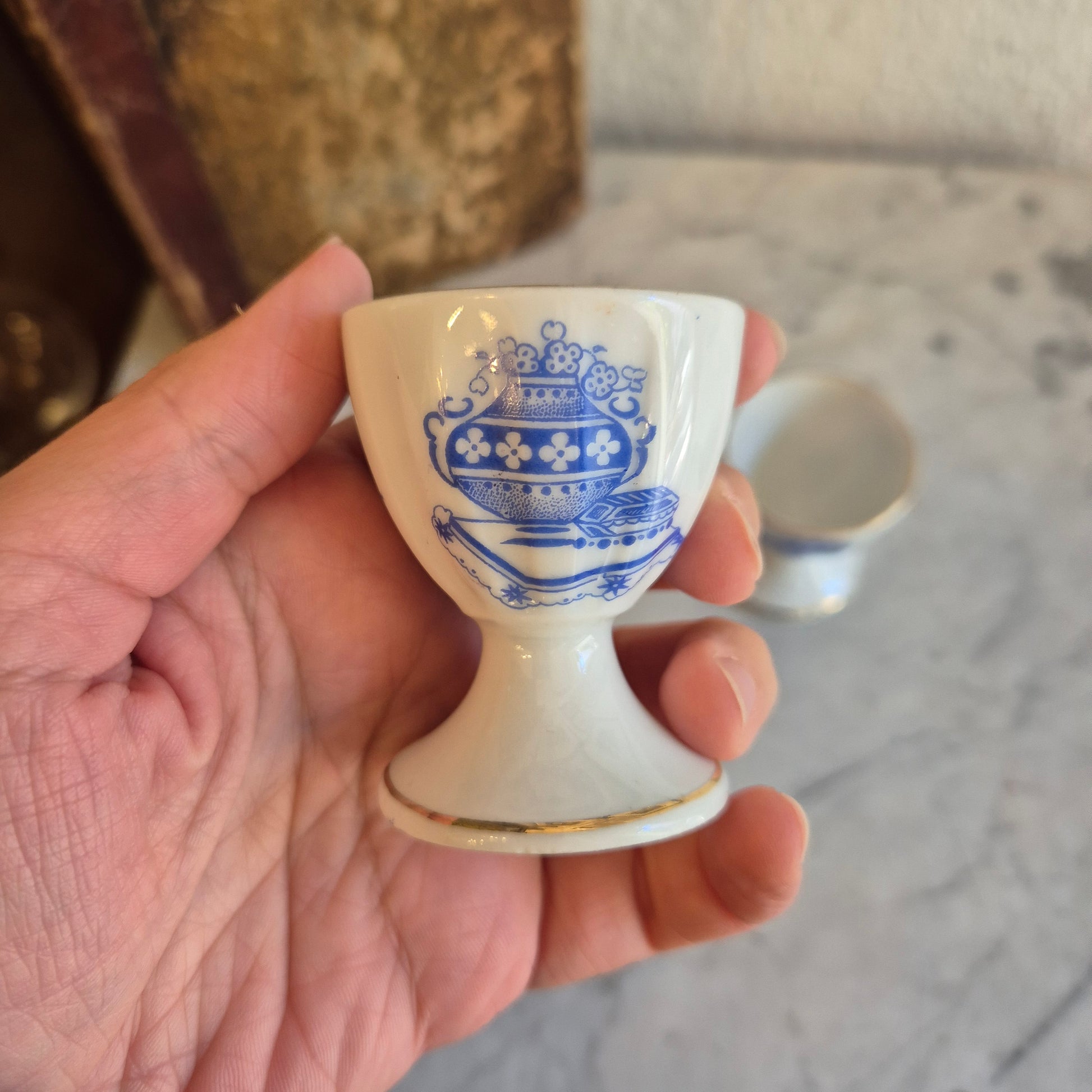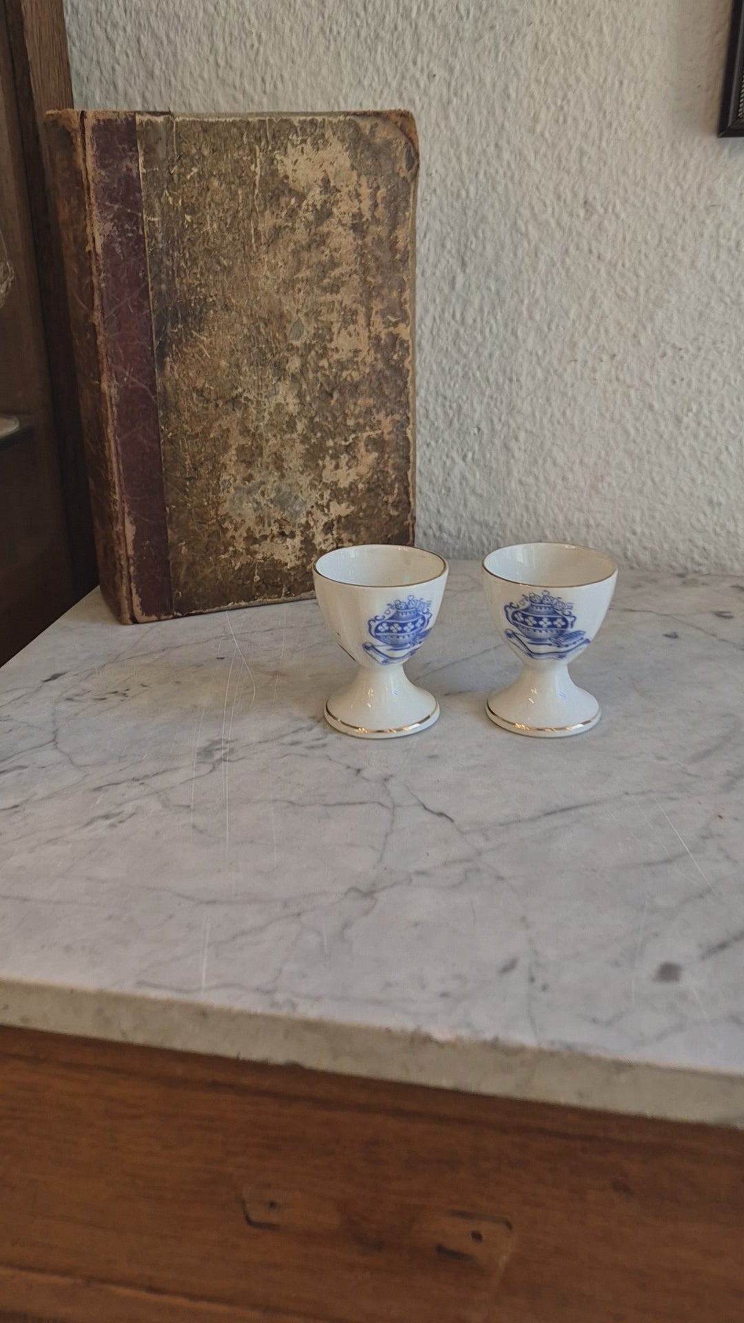 2x Antike Porzellan Eierbecher WIE echt Tuppack China Blau Tiefenfurt Blau Weiß