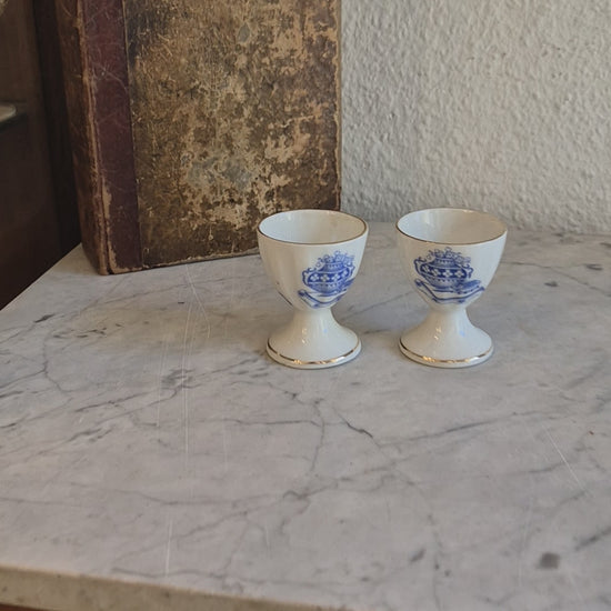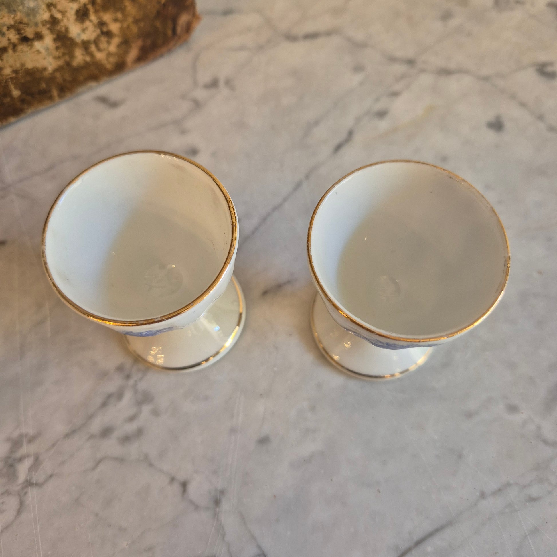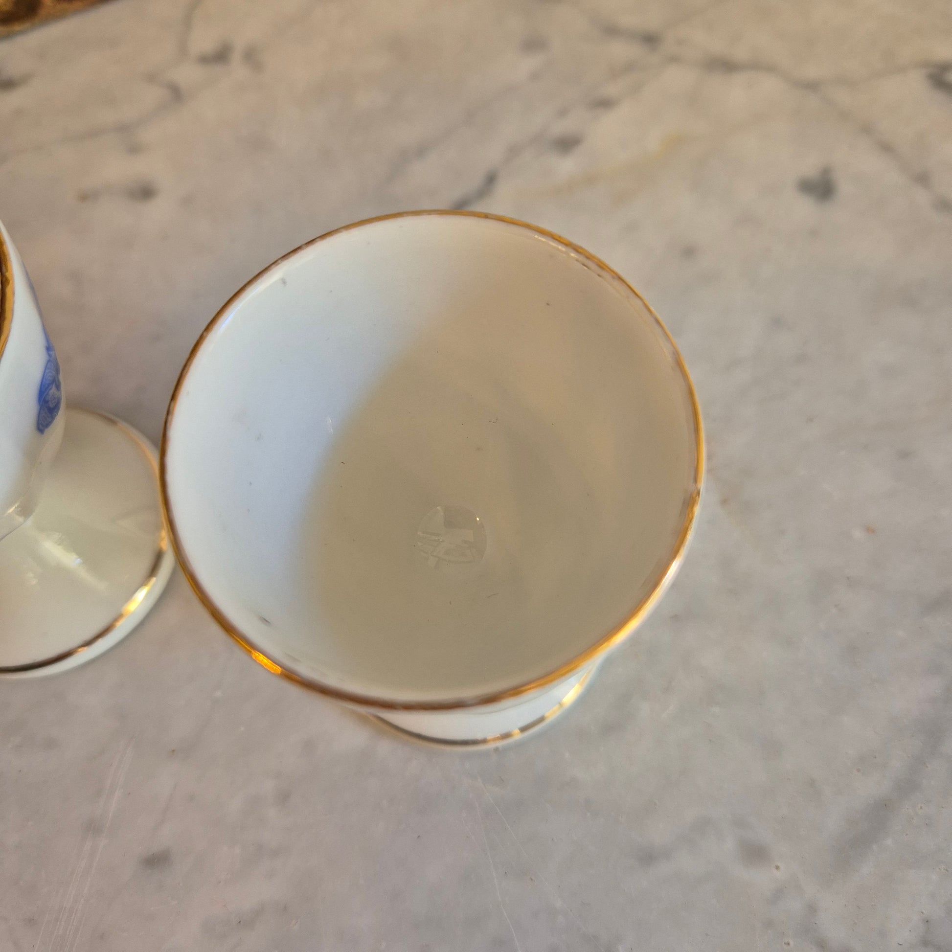 2x Antike Porzellan Eierbecher WIE echt Tuppack China Blau Tiefenfurt Blau Weiß
