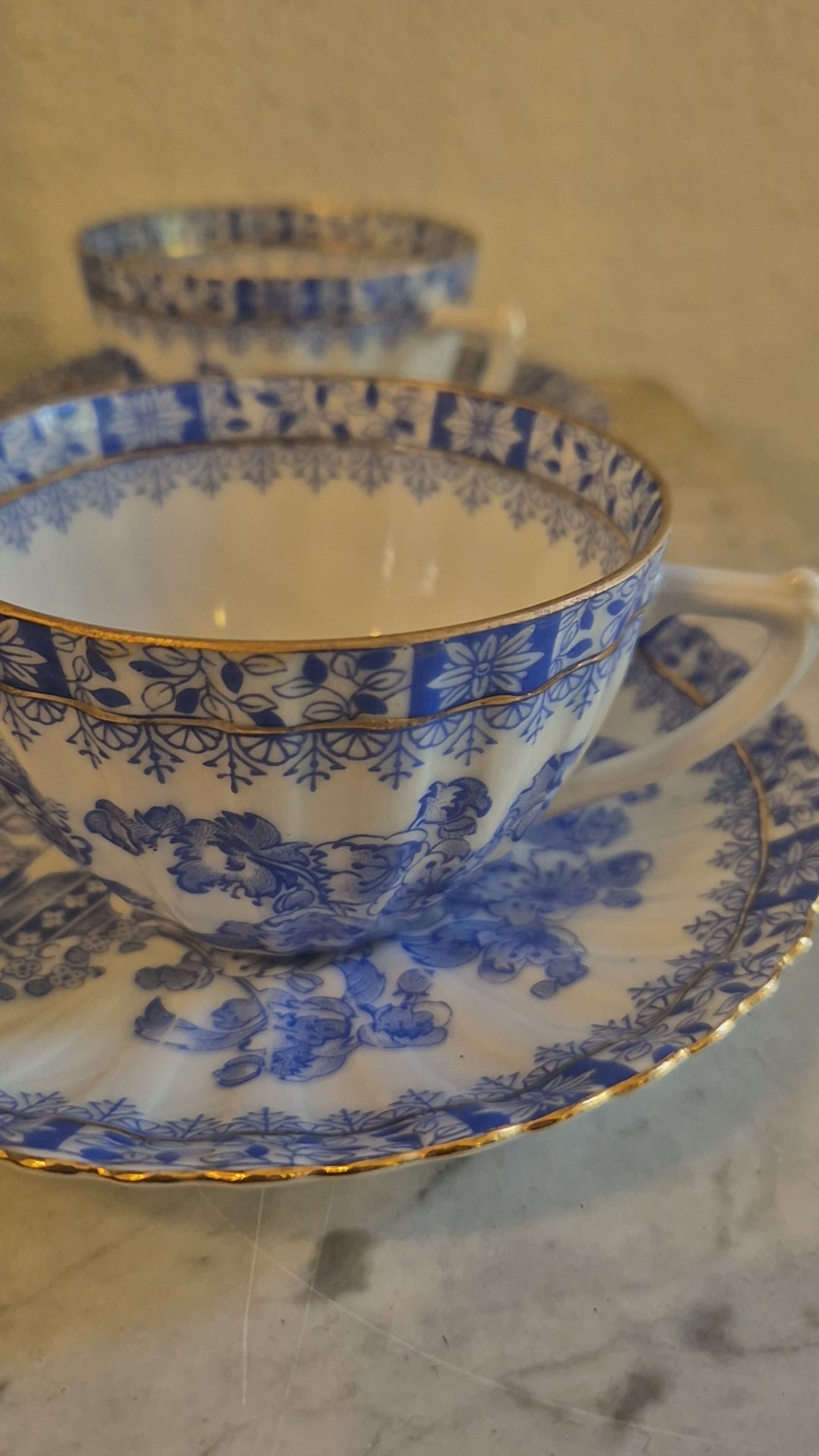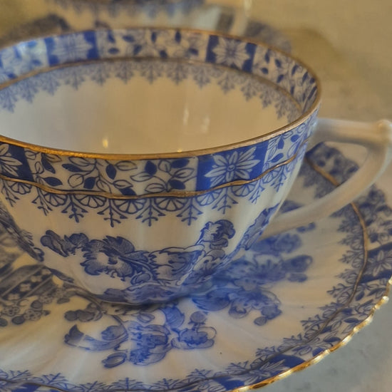 4x Antike Kaffeetassen Echt Tuppack China Blau Tiefenfurt Blau Weiß
