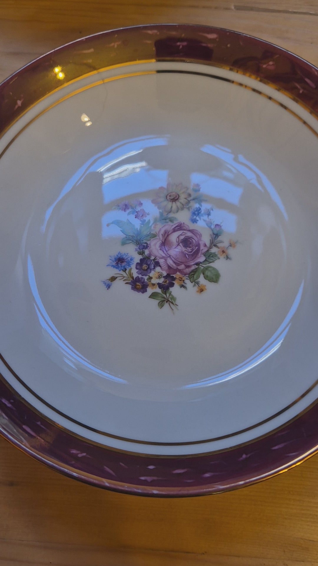 Diese 6x antiken Speiseteller mit Blumendekor in Weiß und lila Goldrand sind sowohl funktional als auch ästhetisch ansprechend. Perfekt für die Präsentation und Servieren von leckeren Speisen. Verleihen Sie Ihrer Tafel einen Hauch von Eleganz und Nostalgie mit diesen antiken Tellern.