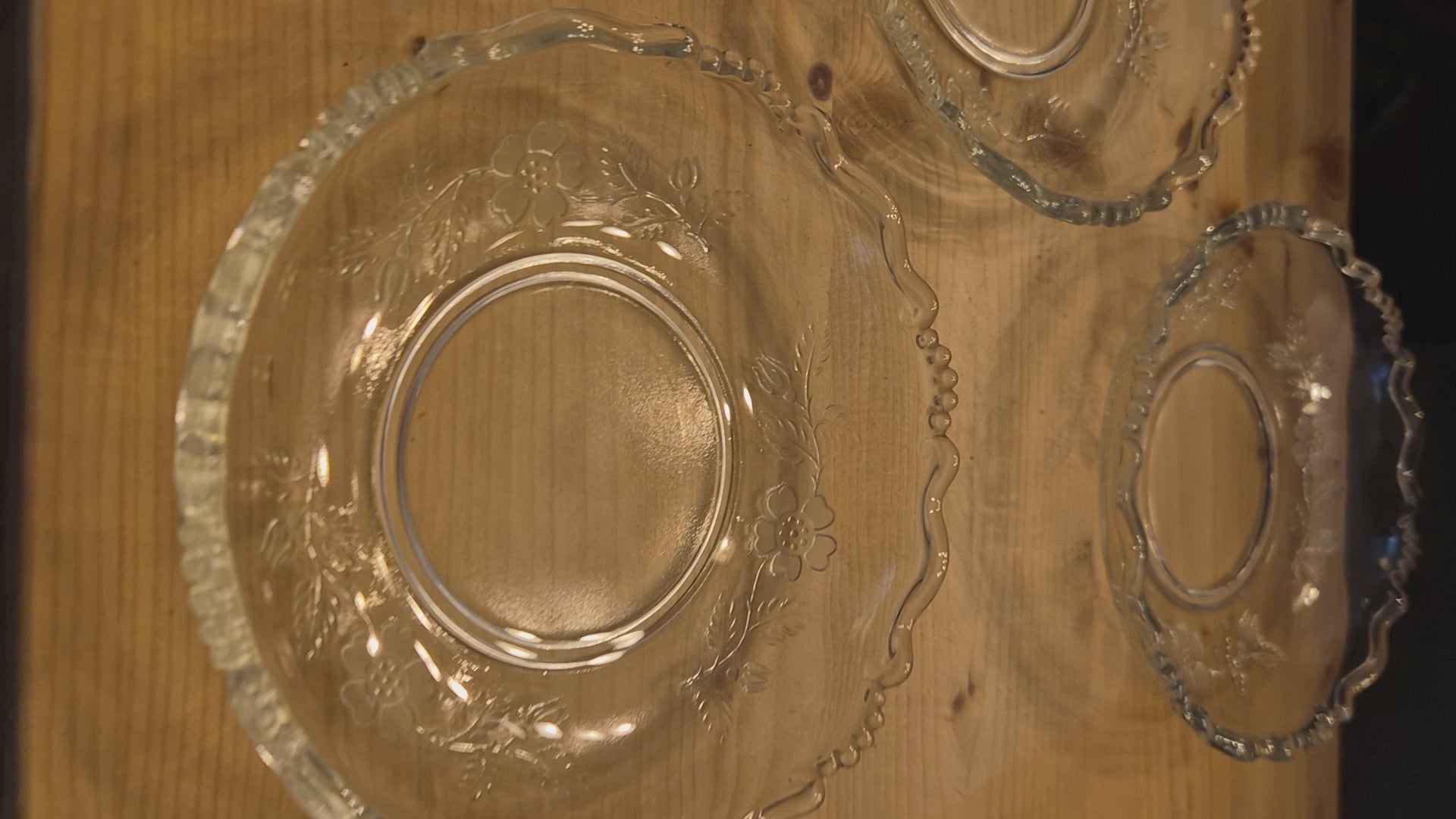 5x Vintage Glas oder Bleikristall Schalen Kuchen Teller Blumenmuster