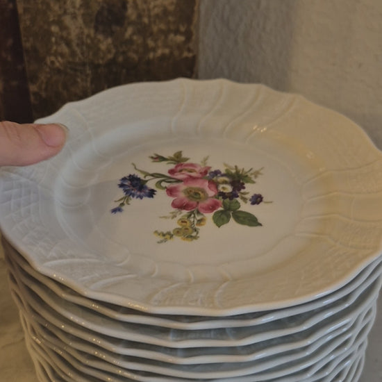12x Antike Hutschenreuther Porzellan Kuchenteller mit Blumenmotiv Reliefrand