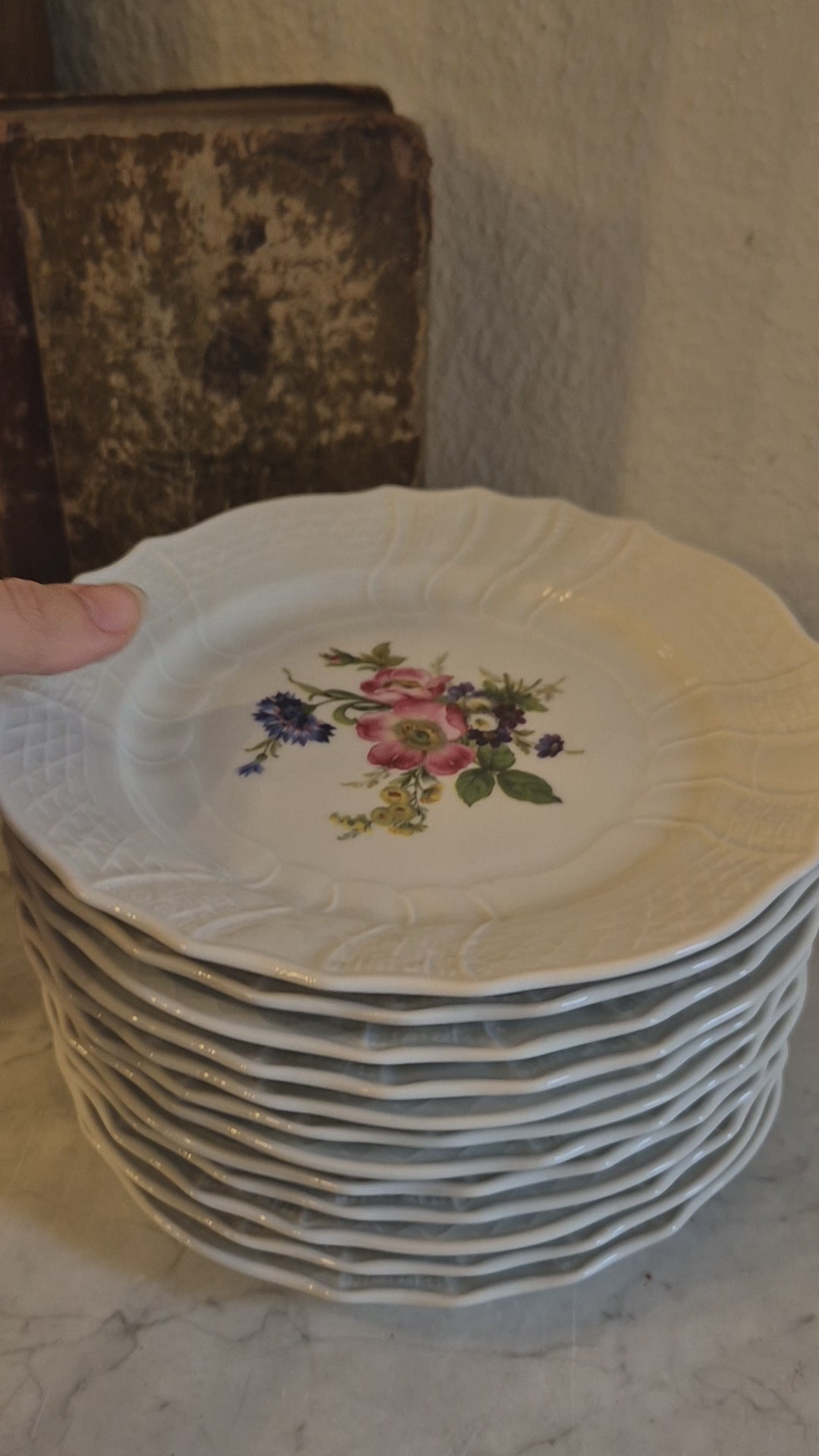 "Genießen Sie Ihre süßen Köstlichkeiten auf diesen 12 antiken Porzellan-Kuchentellern von Hutschenreuther. Mit einem bezaubernden Blumenmotiv und einem detailreichen Reliefrand ist jeder Teller ein echtes Unikat. Perfekt für Ihre Sammlung oder für besondere Anlässe. Guten Appetit!"