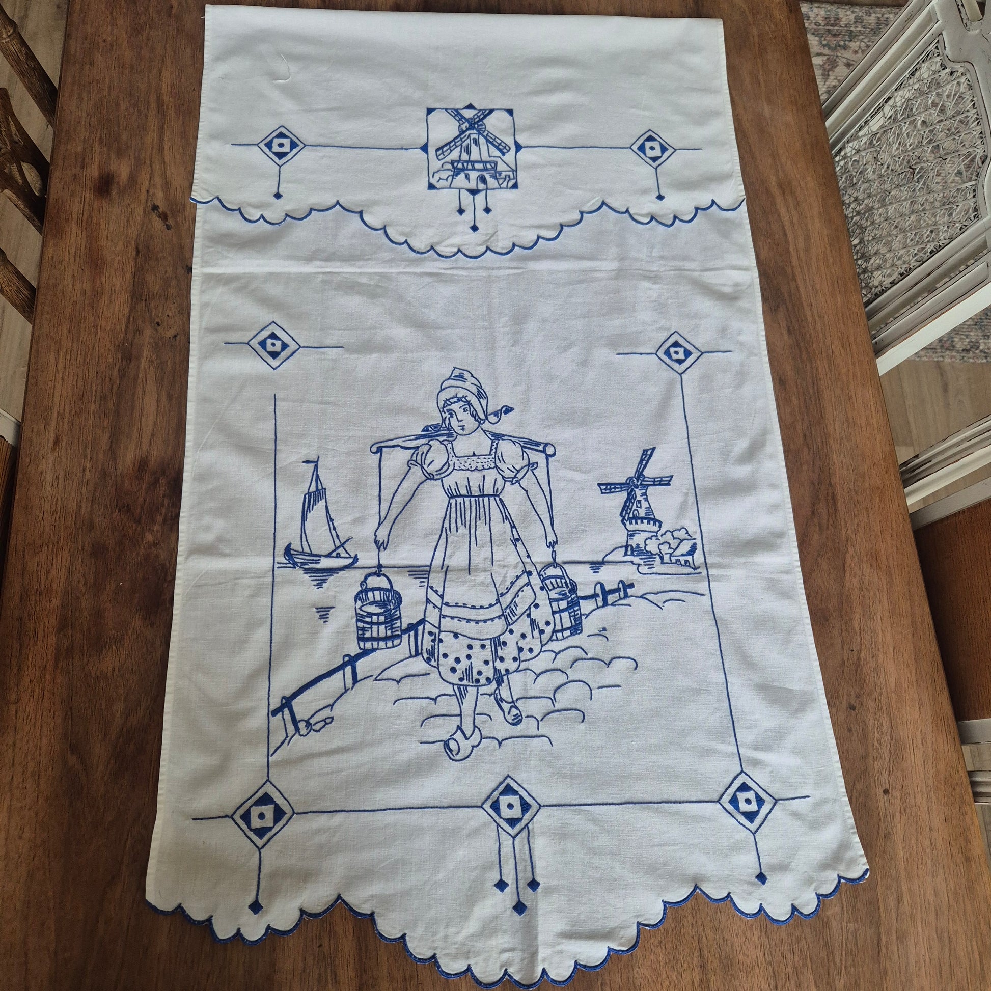 Vintage Überhandtuch blau weiß Mühlen Holland Handmade 60x134cm