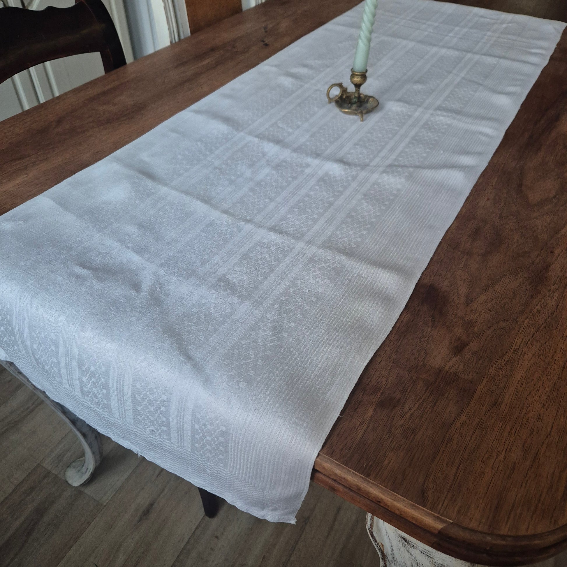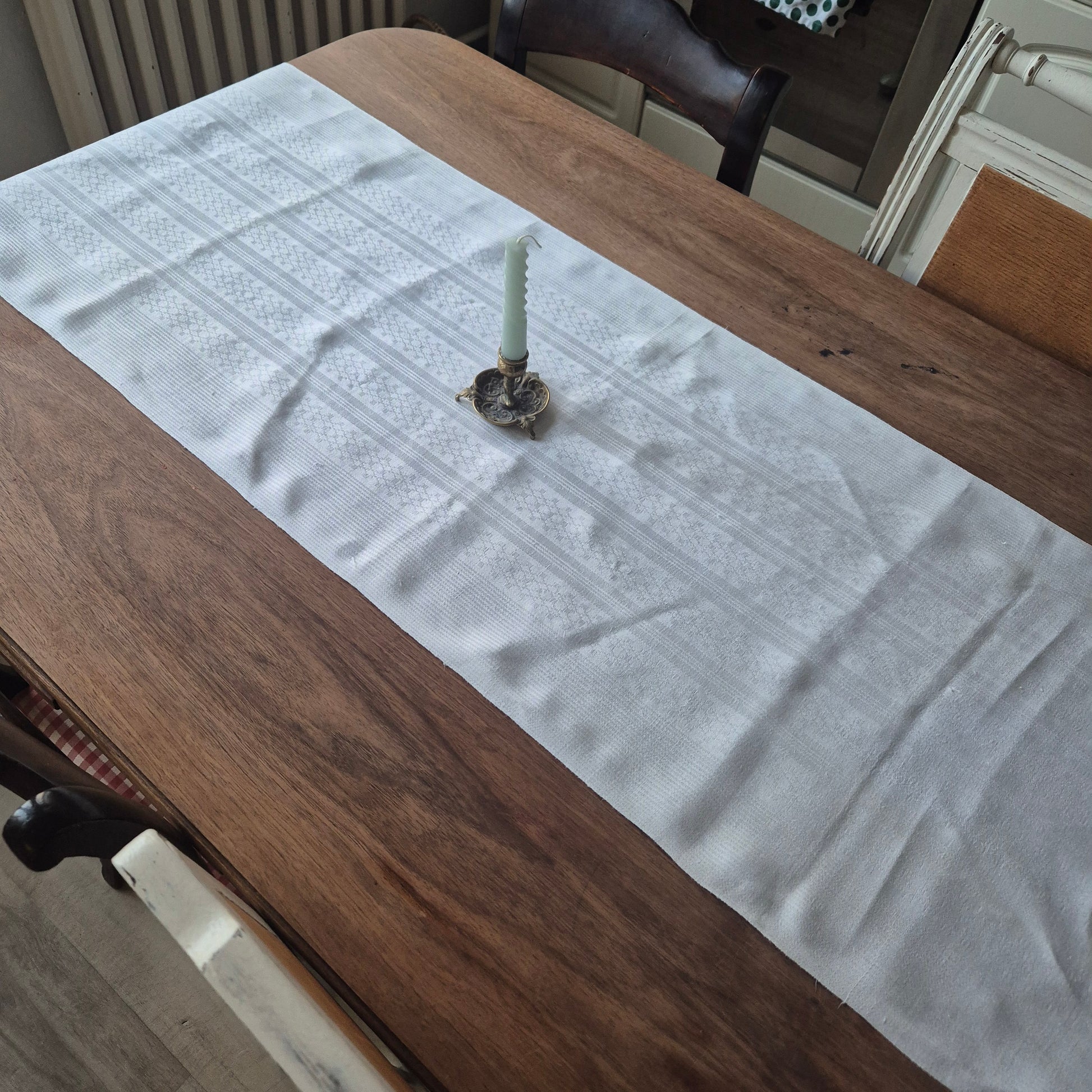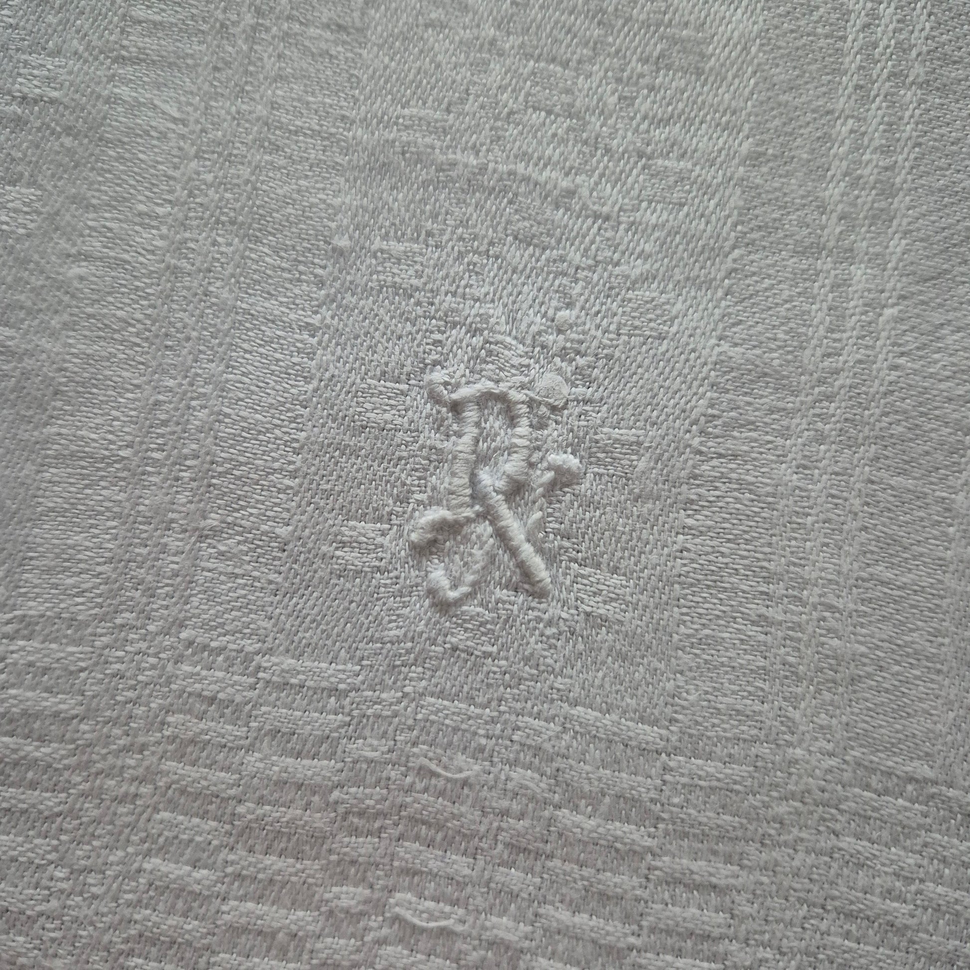 Antikes Jugendstil Küchen- & Geschirrtuch weiß Leinen Baumwolle 44x148cm Monogramm D.N. ♡