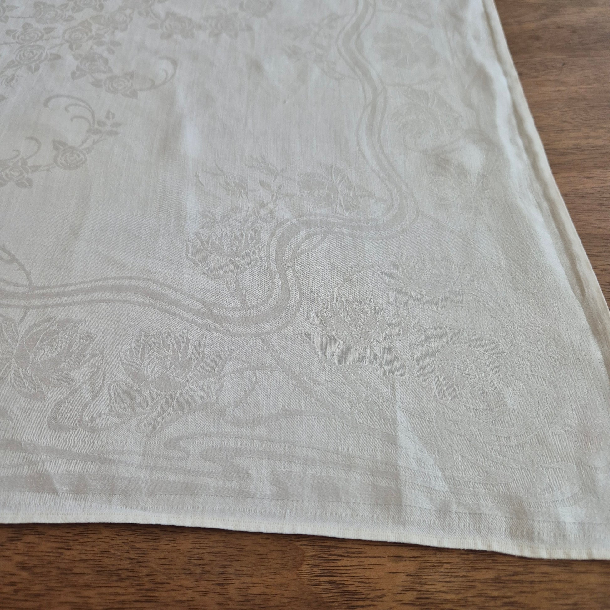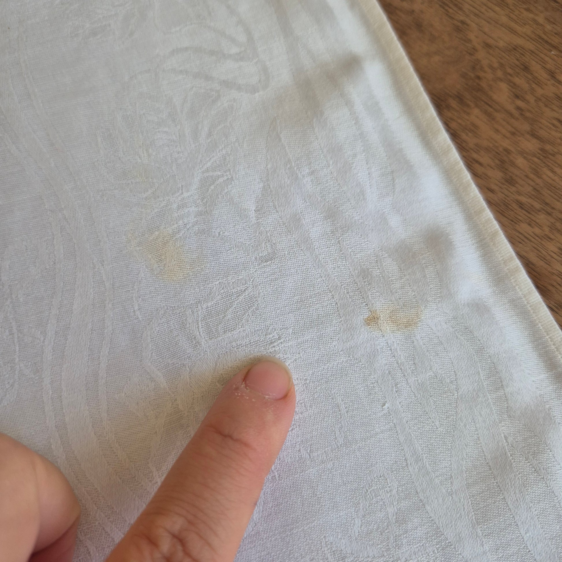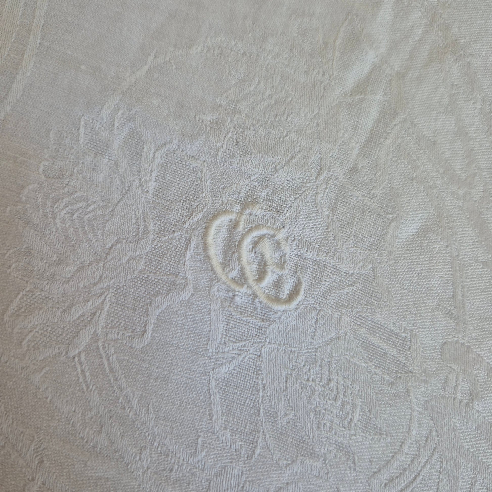 Antike Jugendstil Serviette/Mitteldecke weiß 64x64cm Damast Blumen Stockflecken Monogramm G.C.