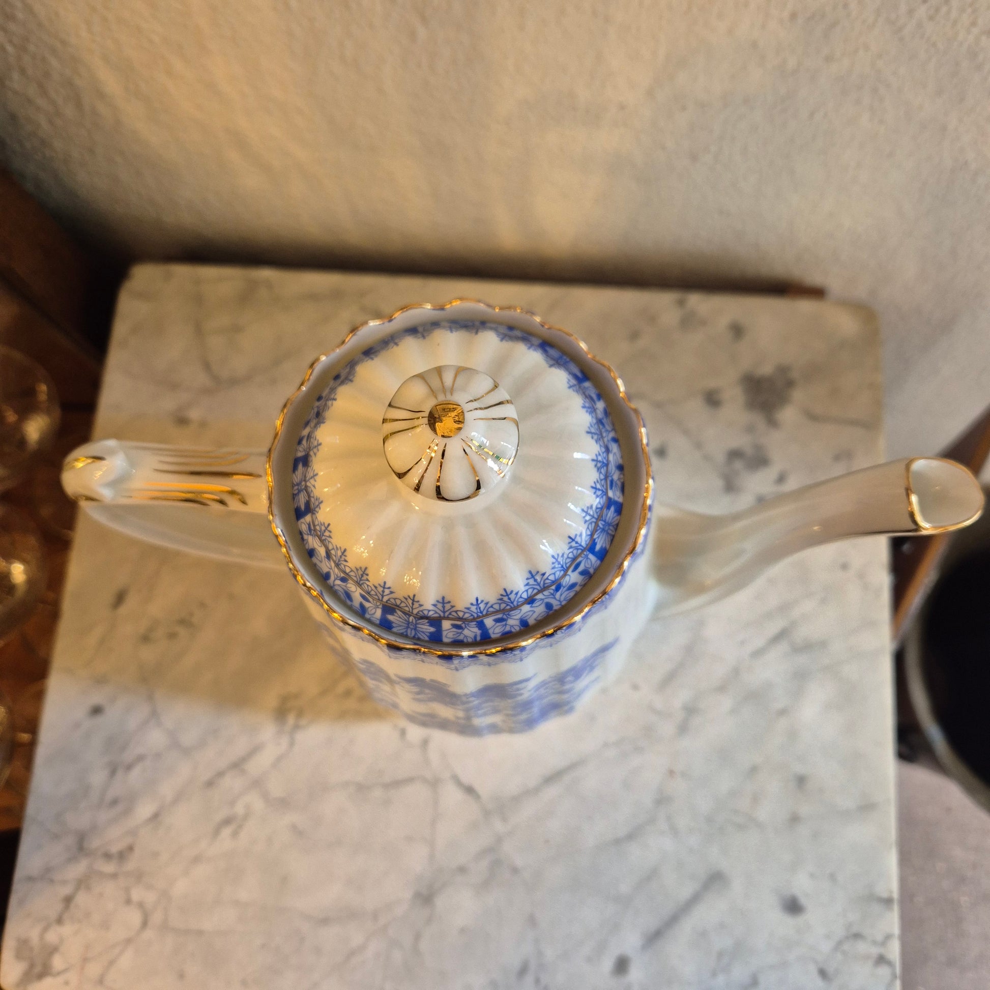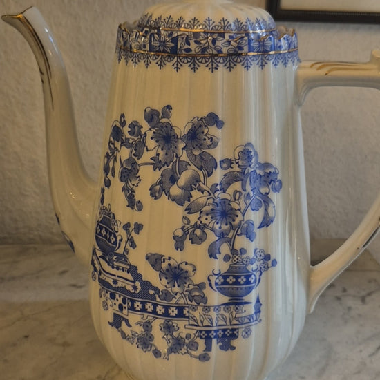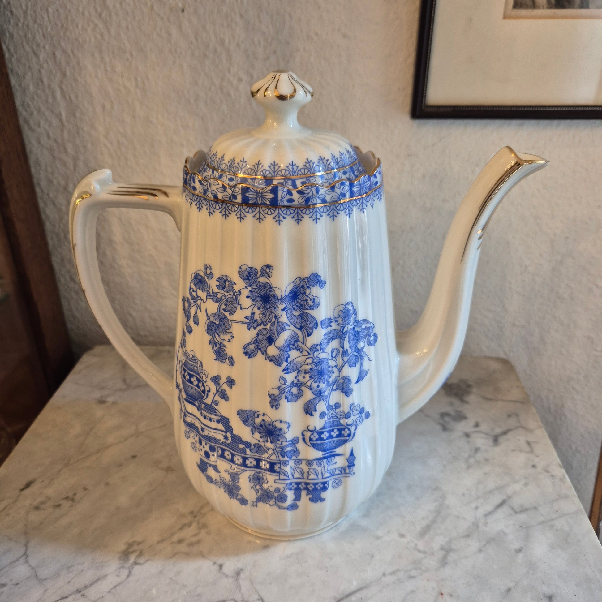 Diese antike Kaffeekanne aus dem echten Tuppack China Blau Tiefenfurt besticht durch ihr charmantes Blau-Weiß-Design und entführt Sie in vergangene Zeiten. Perfekt, um Ihren Kaffee mit einer Prise Nostalgie zu genießen und dabei stilvoll Ihre Tafel zu schmücken. Ein echtes Highlight für Liebhaber klassischer Porzellankunst!