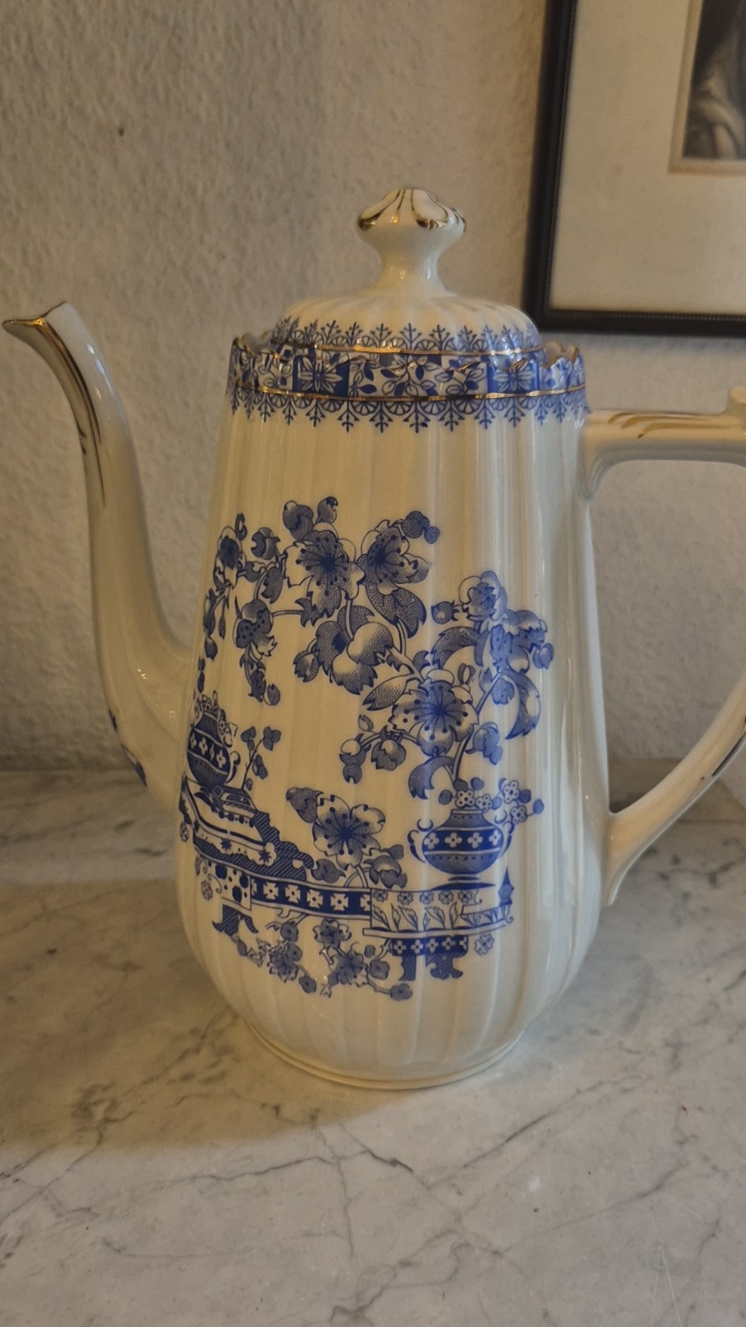 Antike Kaffeekanne Echt Tuppack China Blau Tiefenfurt Blau Weiß