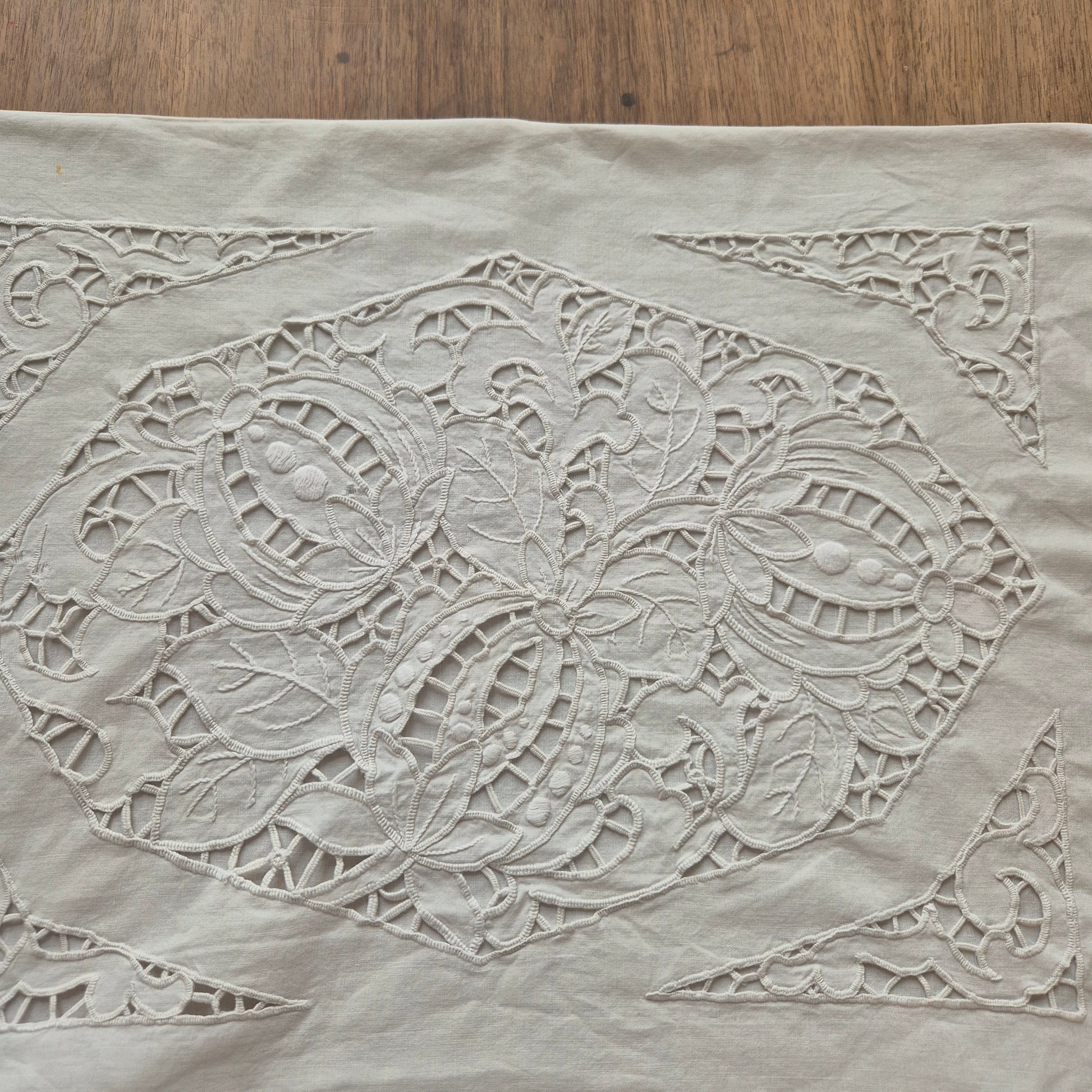 Antiker Kissenbezug zum vollenden mit Spitze Kissenhülle 41x51cm Baumwolle Stoffrest