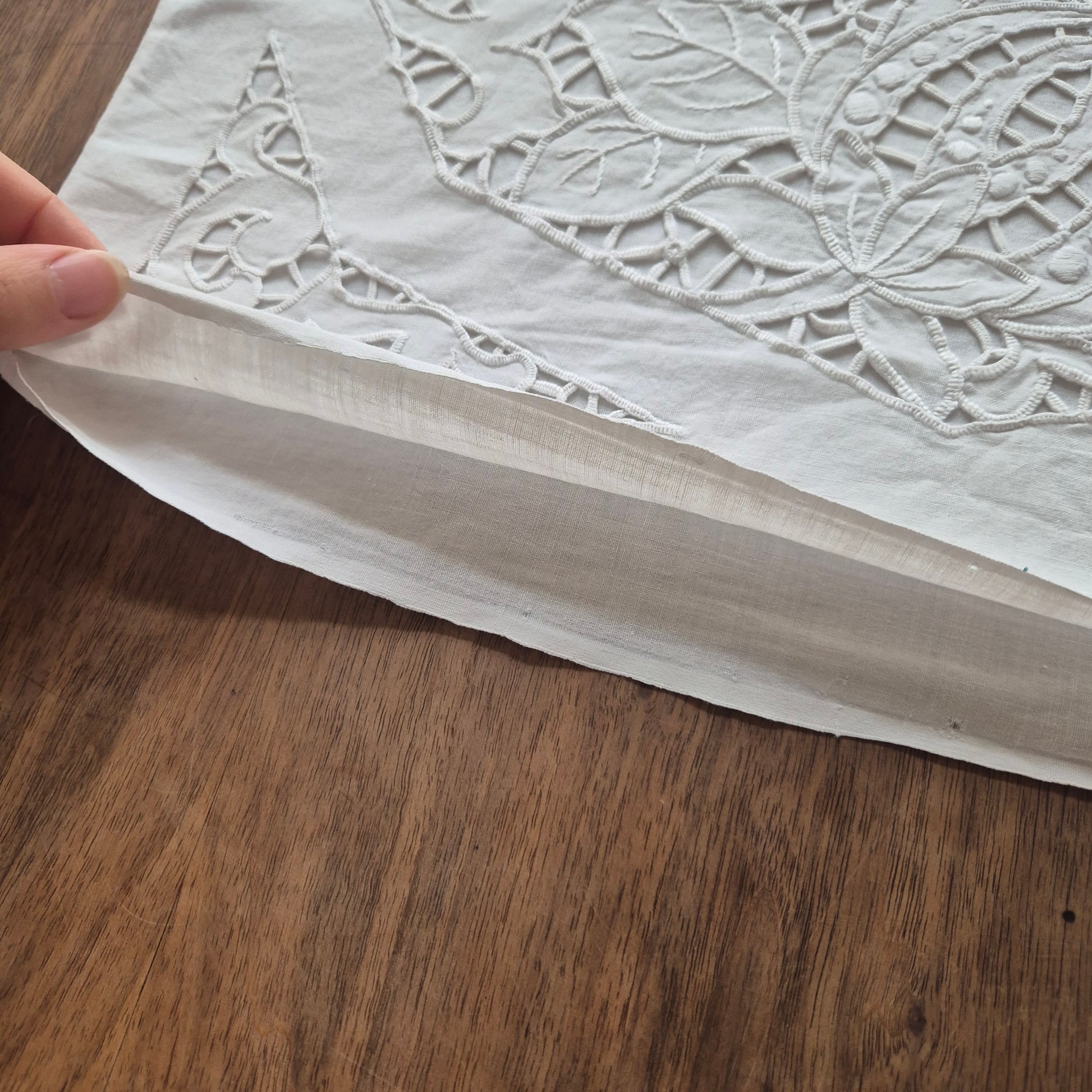 Dieser antike Kissenbezug aus 100 % Baumwolle misst 41x51 cm und wartet darauf, mit zauberhafter Spitze verziert zu werden. Ohne Verschluss zum Selbernähen bringt er kreativen Charme in jedes Zuhause. Ideal für alle, die ihrem Kissen ein individuelles, nostalgisches Finish schenken wollen!