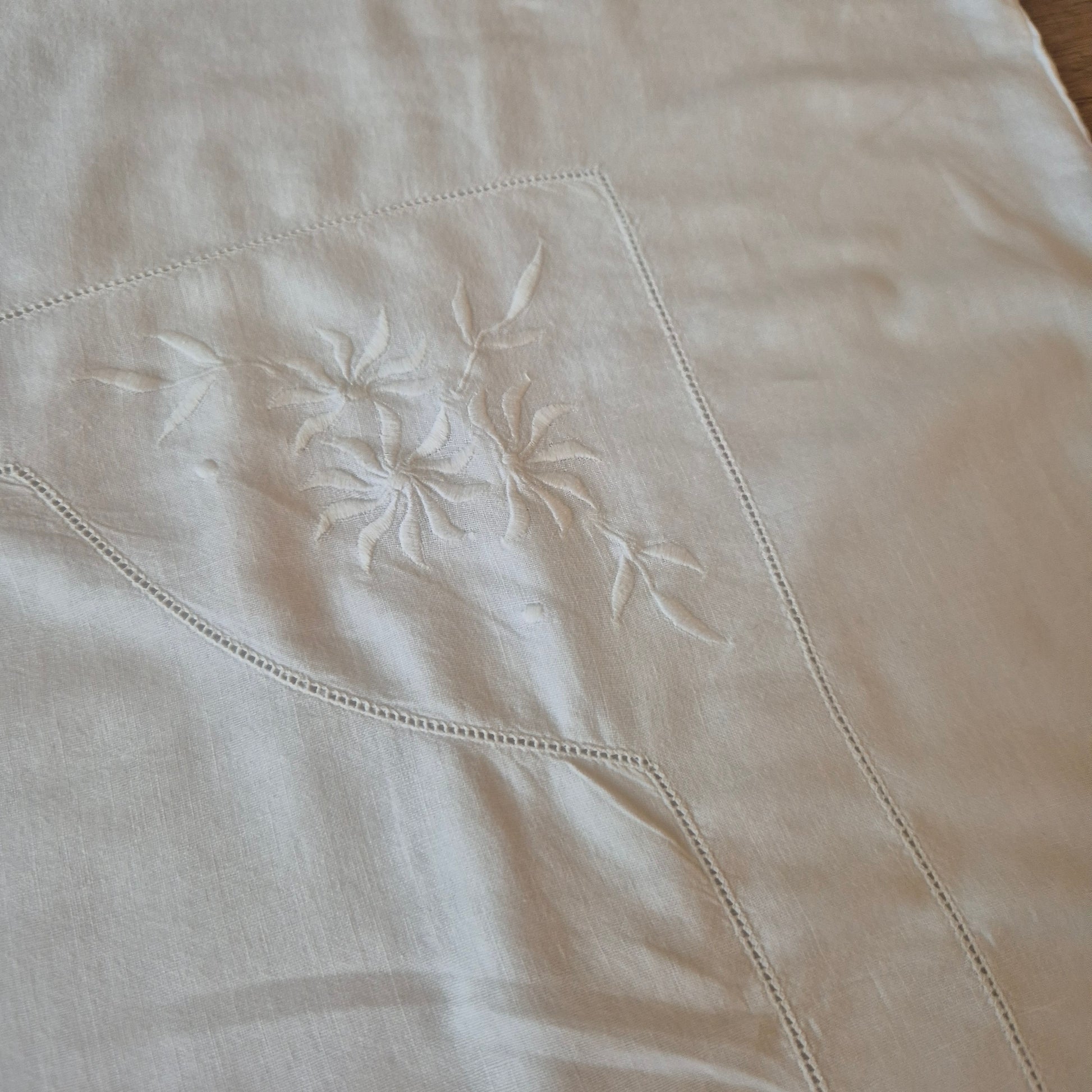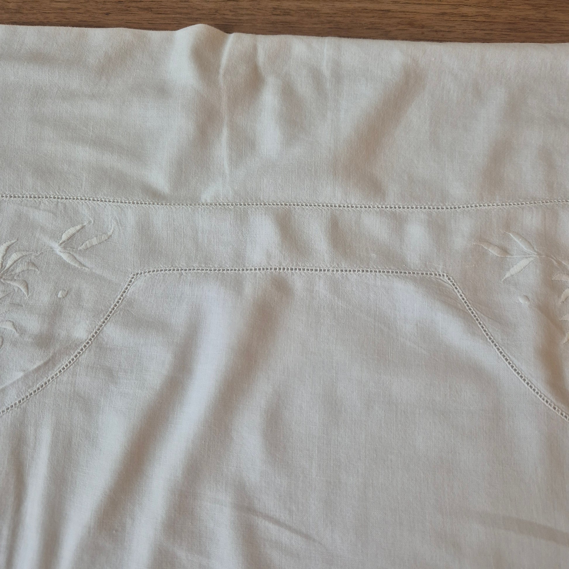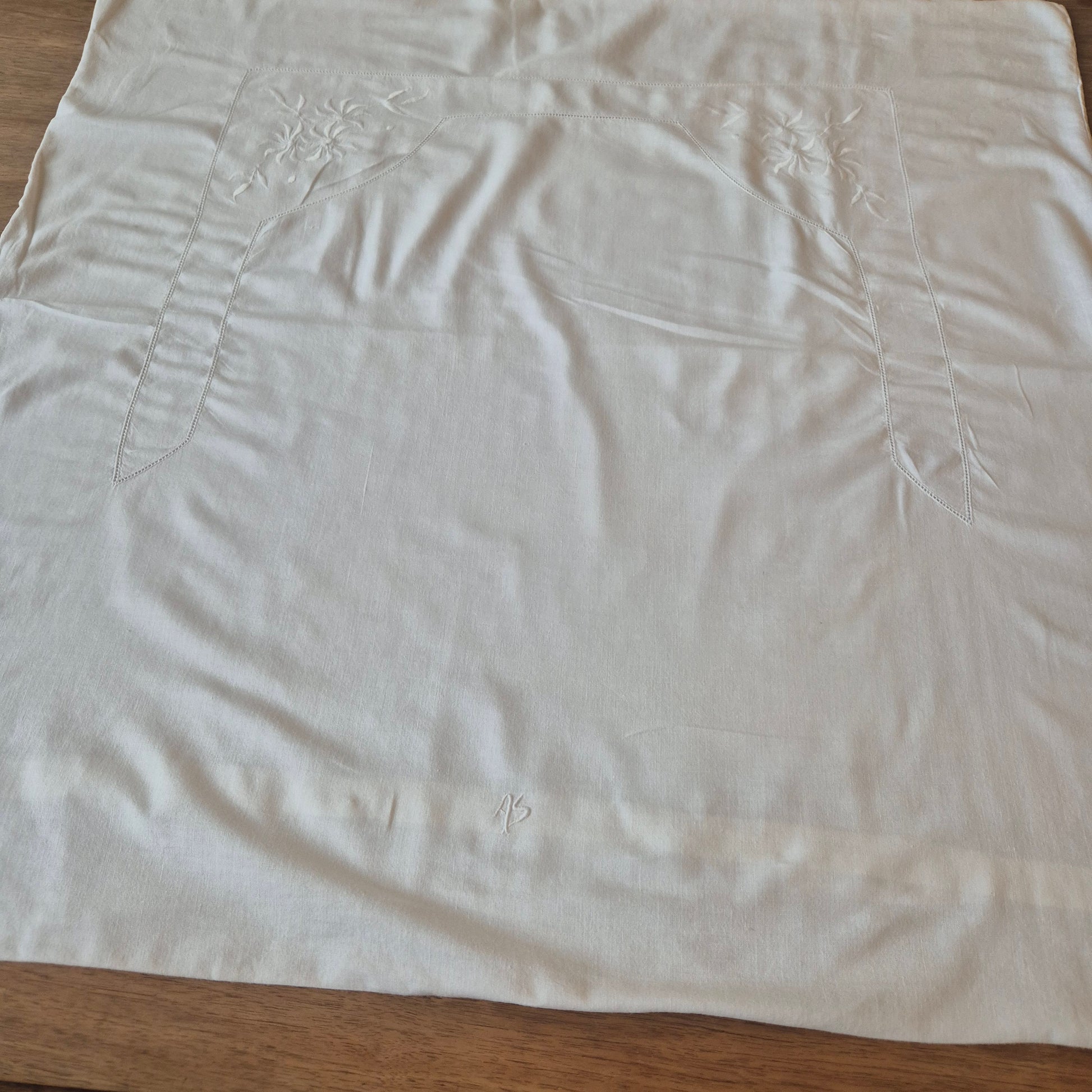 Antiker Kopfkissenbezug mit zarter Stickerei 76x78cm Baumwolle Monogramm A.S.