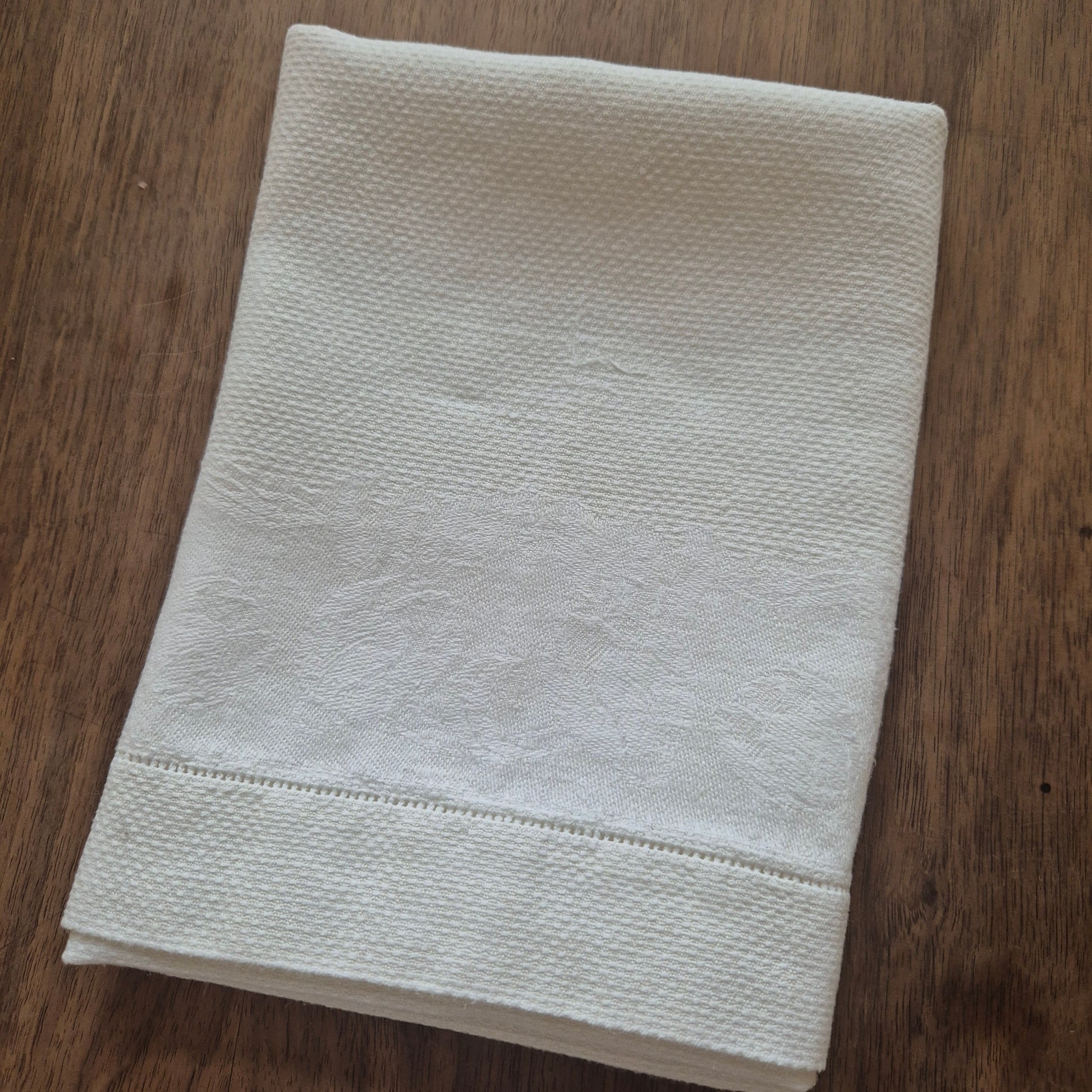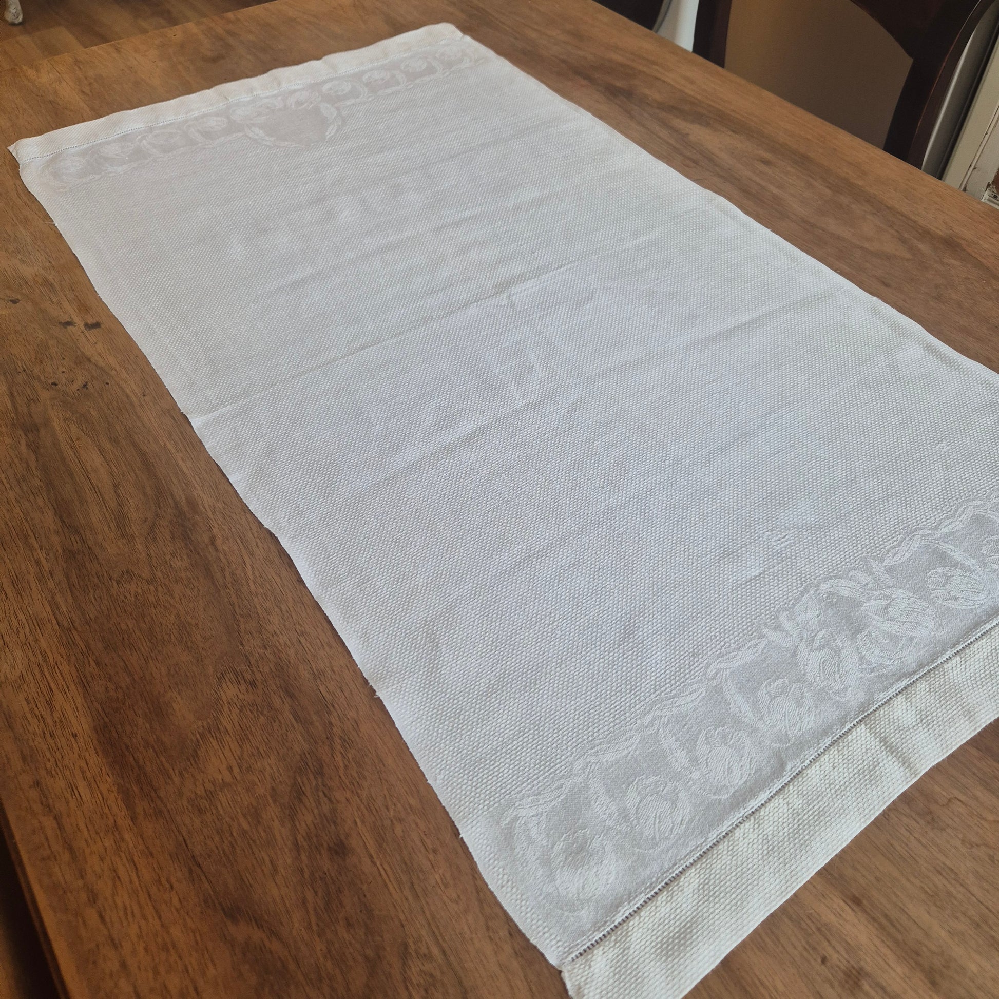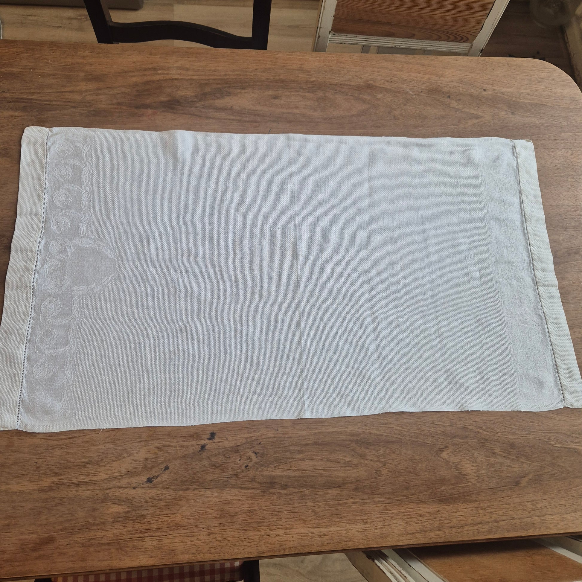 Antikes Jugendstil Küchen-&Geschirrtuch weiß Damast Baumwolle 49x90cm Tuplen