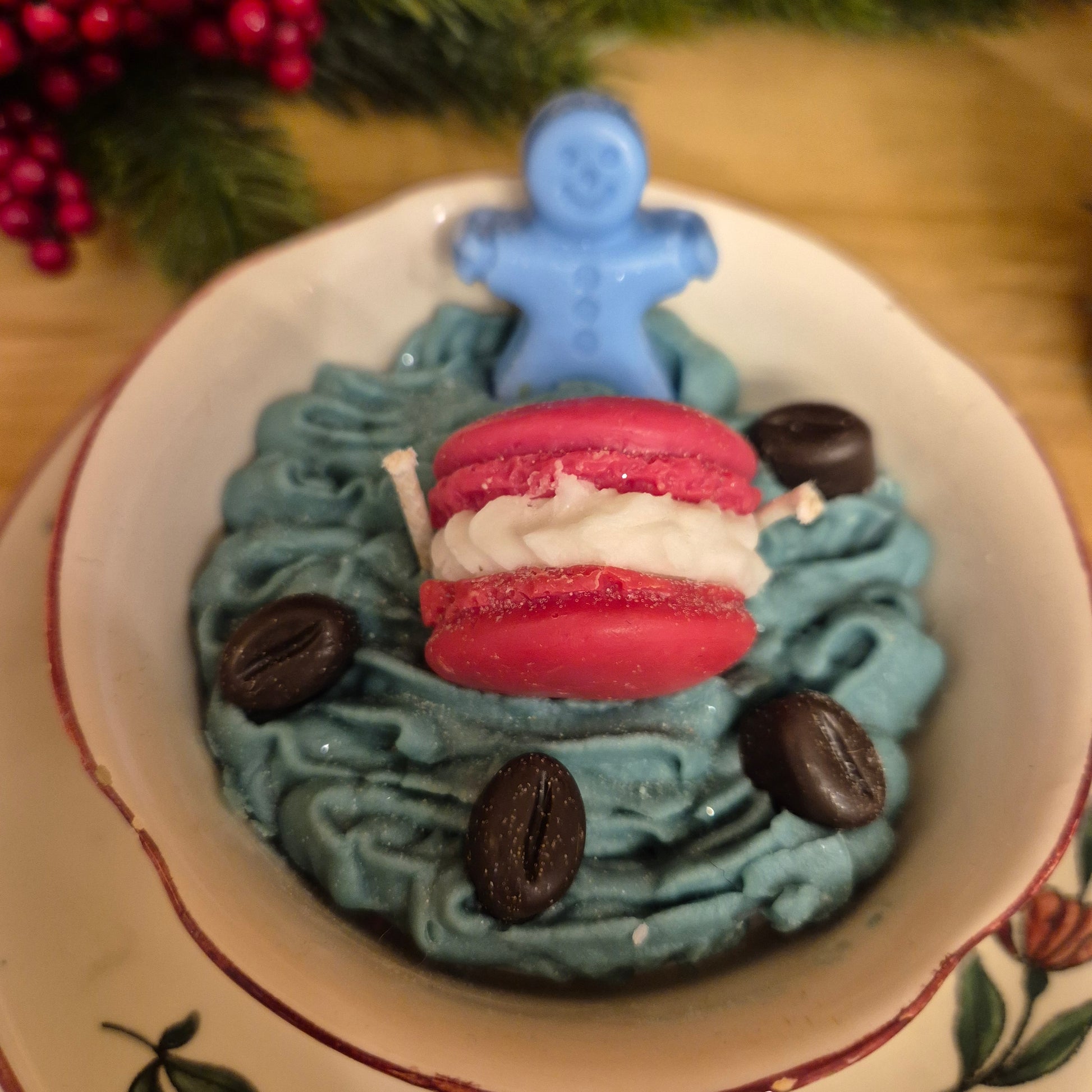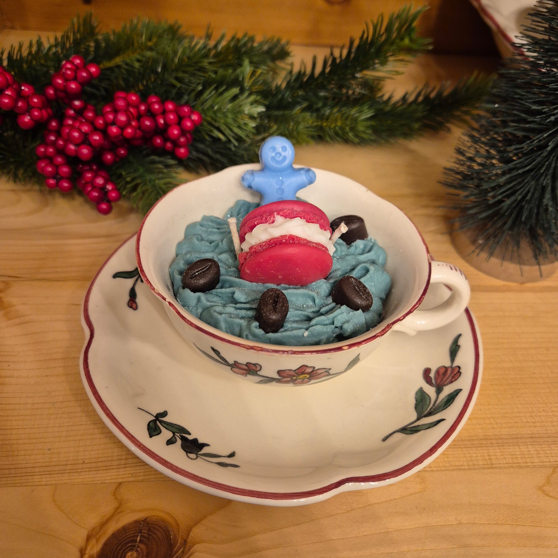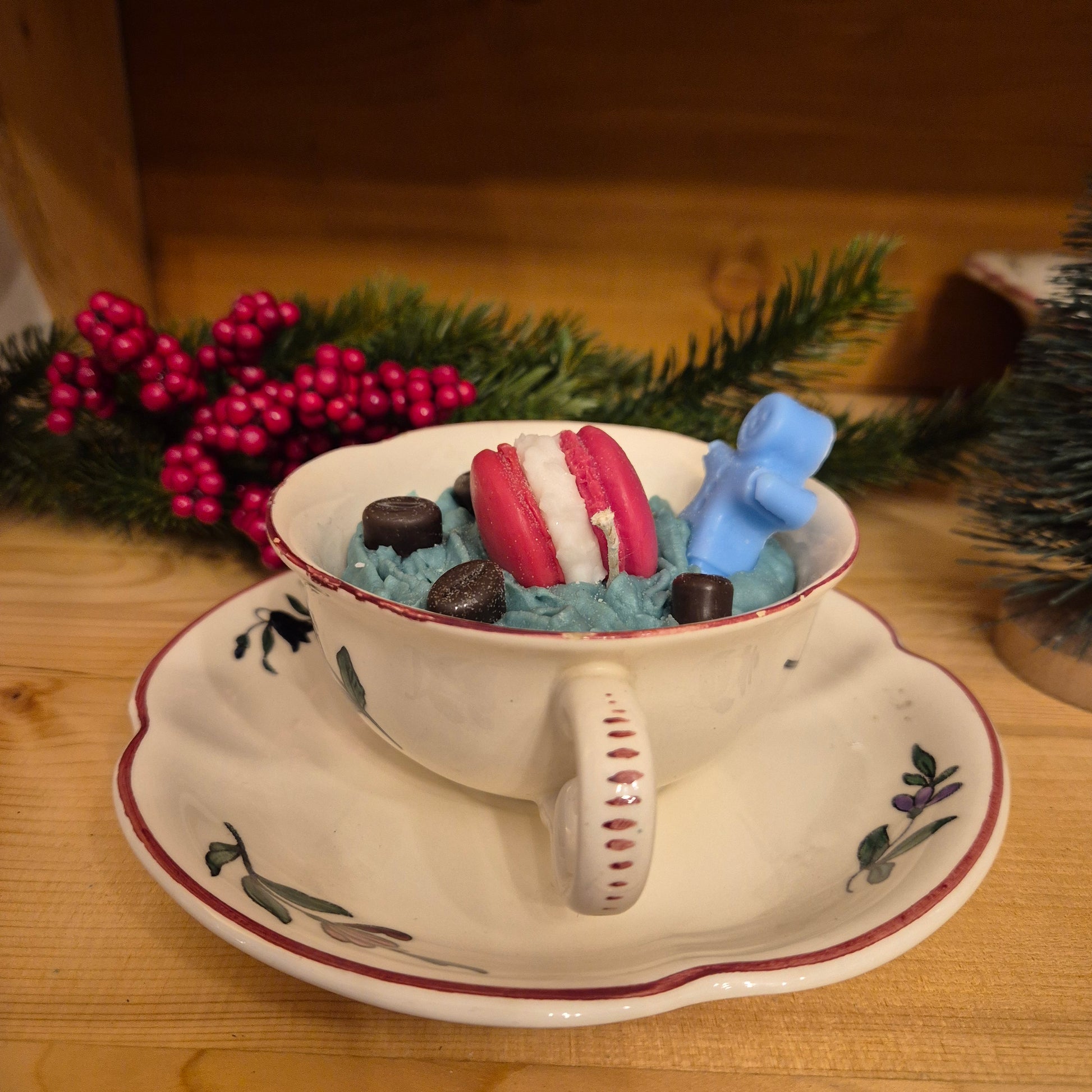 Handgemachte Sojawachskerze Weihnachtesgeschenk Sahne Macaron Dessert in Antiker Keramik Tasse Alt Strassburg