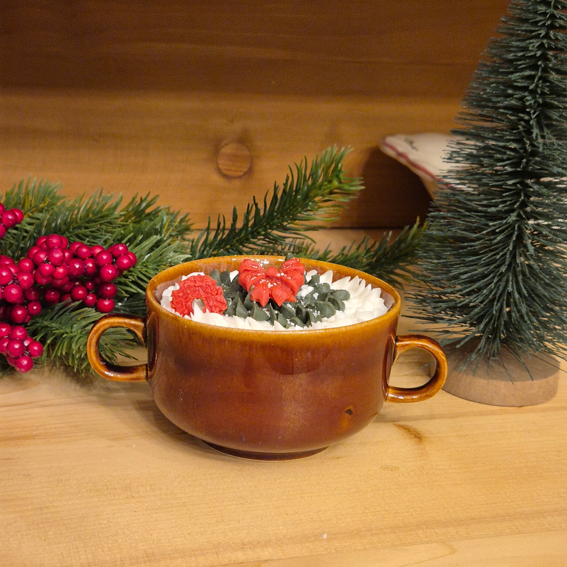 Handgemachte Sojawachskerze Weihnachtesgeschenk Sahne Dessert in Antiker Keramik Suppentasse GDR
