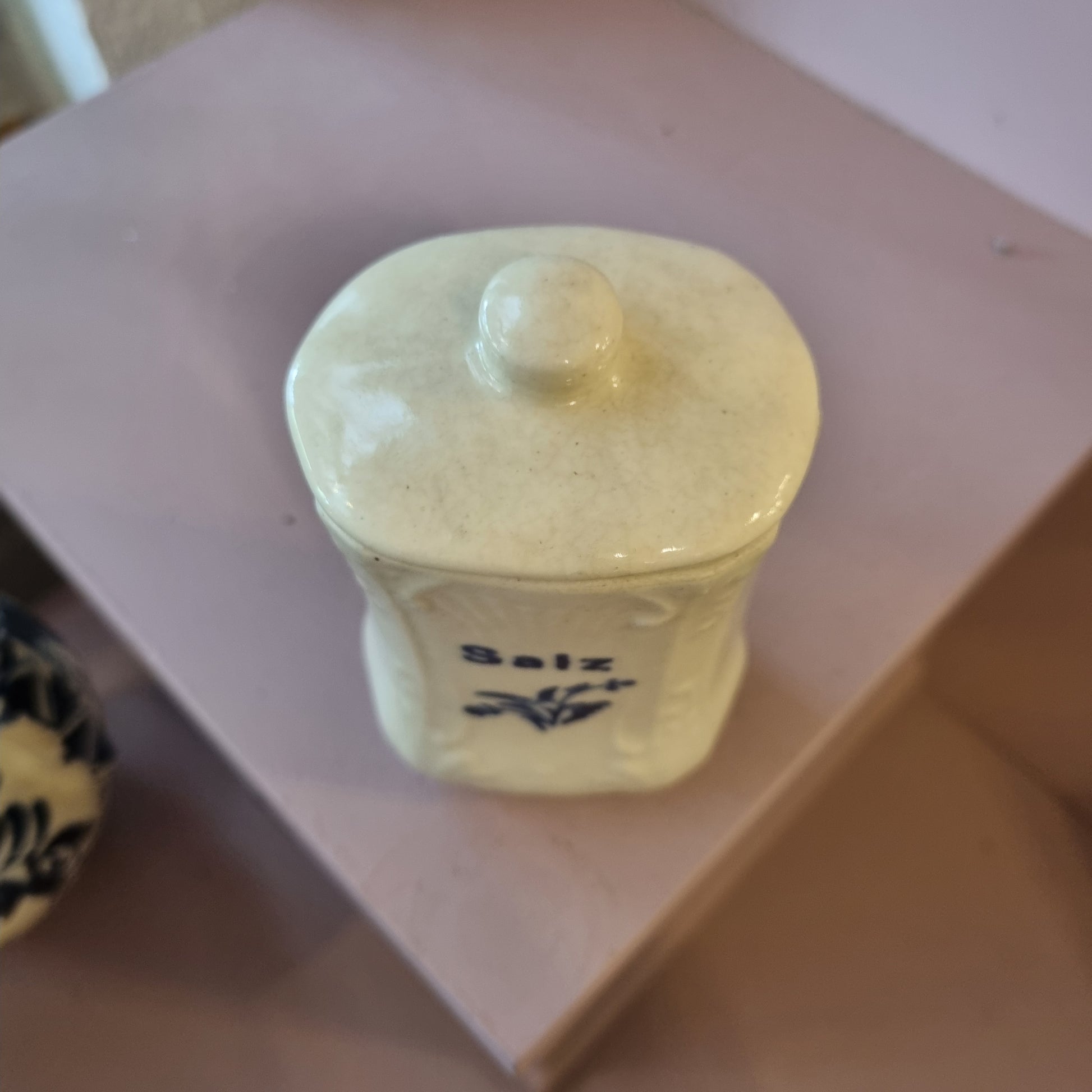 Mit dieser kleinen handbemalten Vorratsdose für Salz kannst du deiner Küche eine rustikale Note verleihen. Perfekt für die Aufbewahrung von Salz und anderen kleinen Schätzen. Ein einzigartiges und charmantes Accessoire für deine Küche. (Salzig gut!)