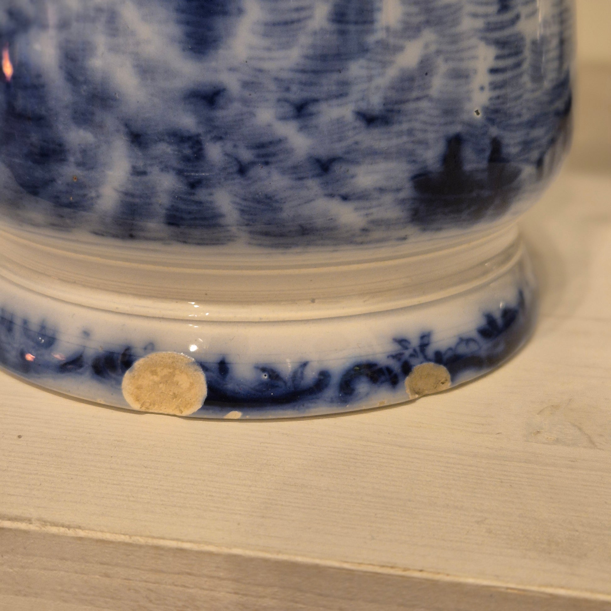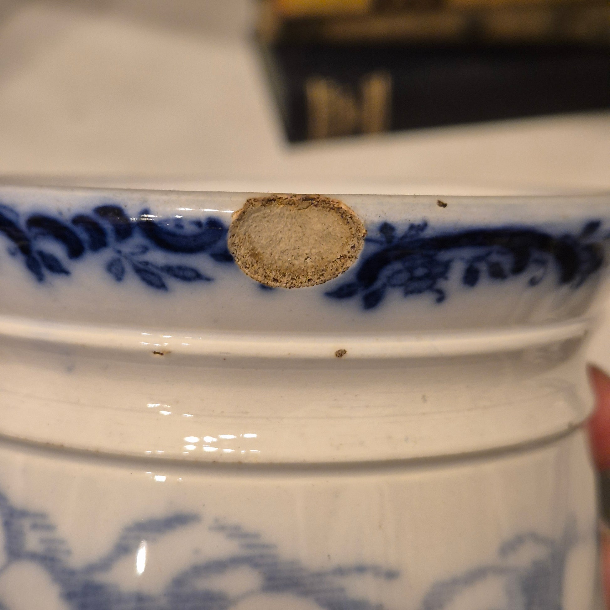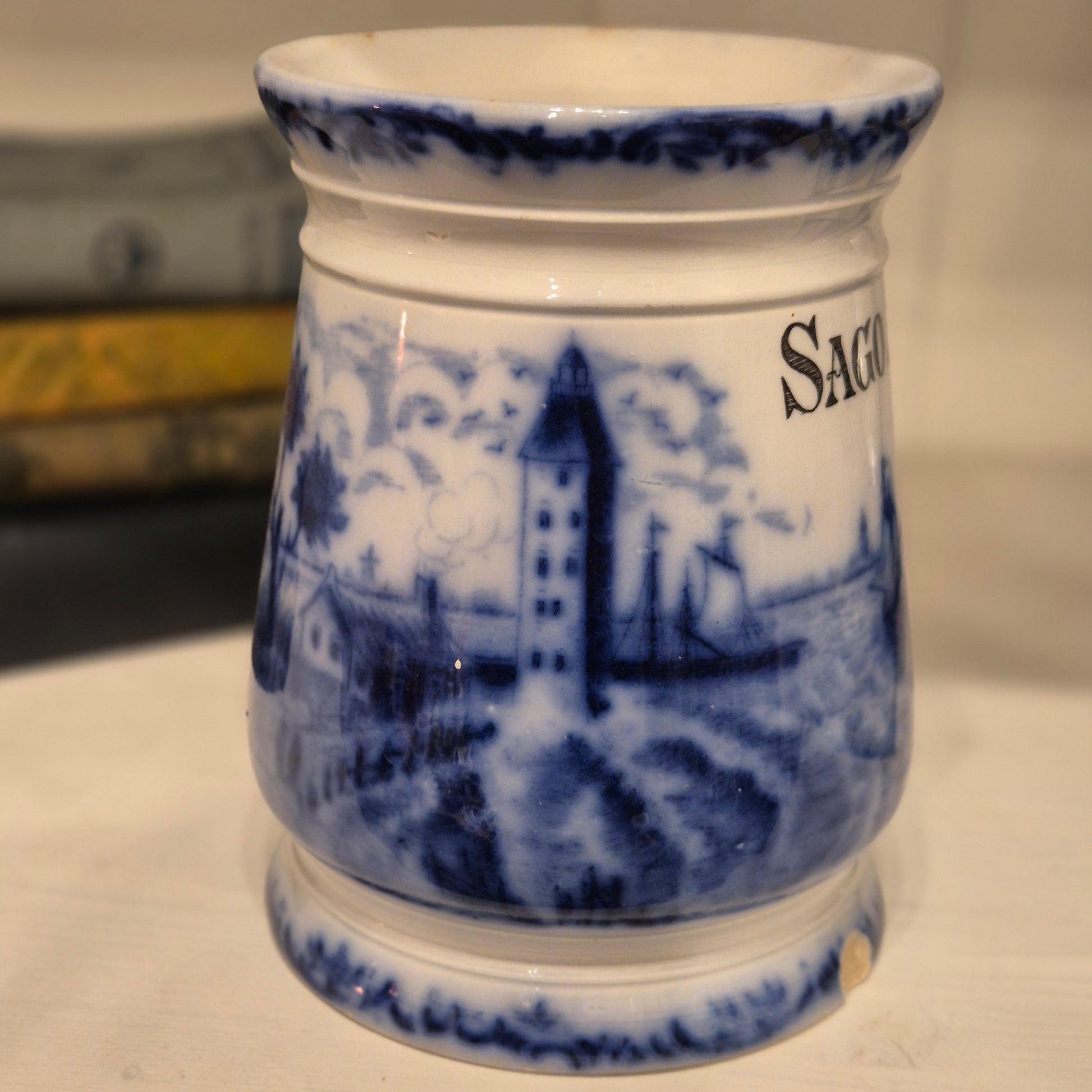 Antike H.H & Cie Delft Vorratsdose ohne Deckel blau weiß 120Jahre alt Kochlöffelhalter Aufschrift "Sago."