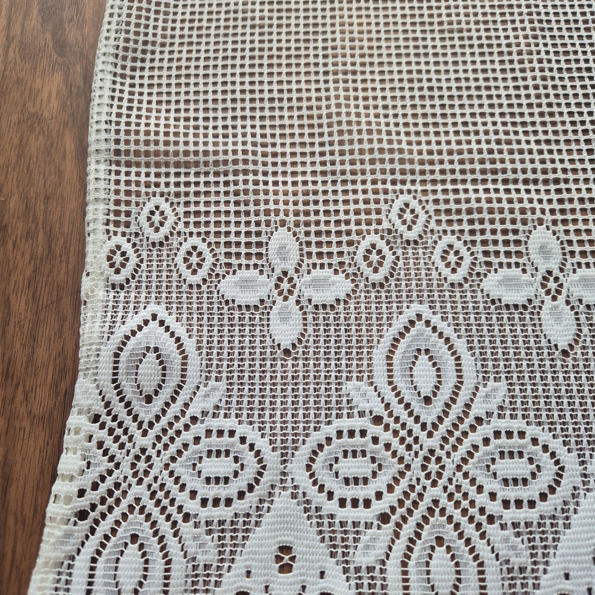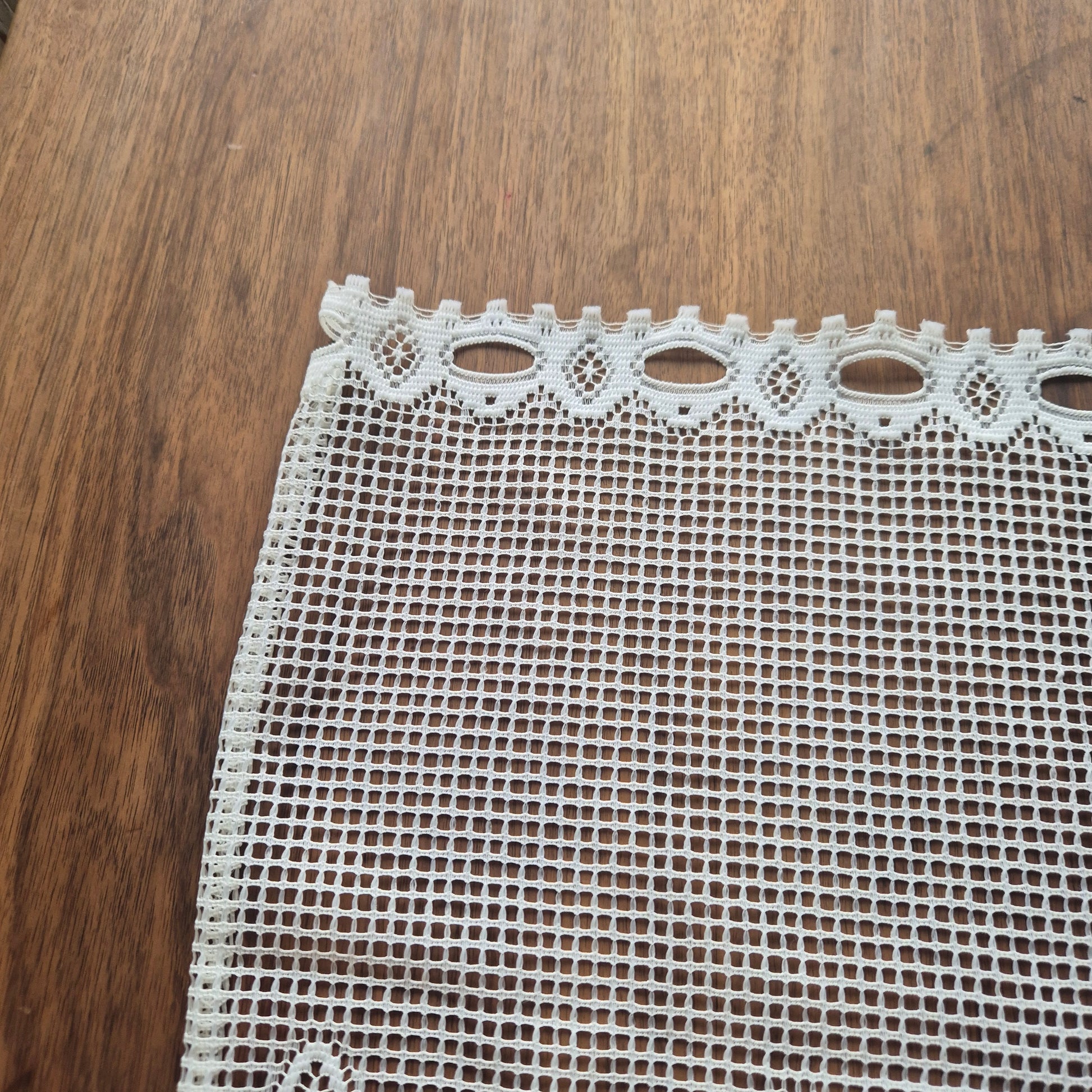Eine Scheibengardine, perfekt für ein Fenster mit einer Stange, im Vintage-Stil und einer Größe von 55x47cm. Erwecke deine Fenster mit dieser einzigartigen Gardine zum Leben!