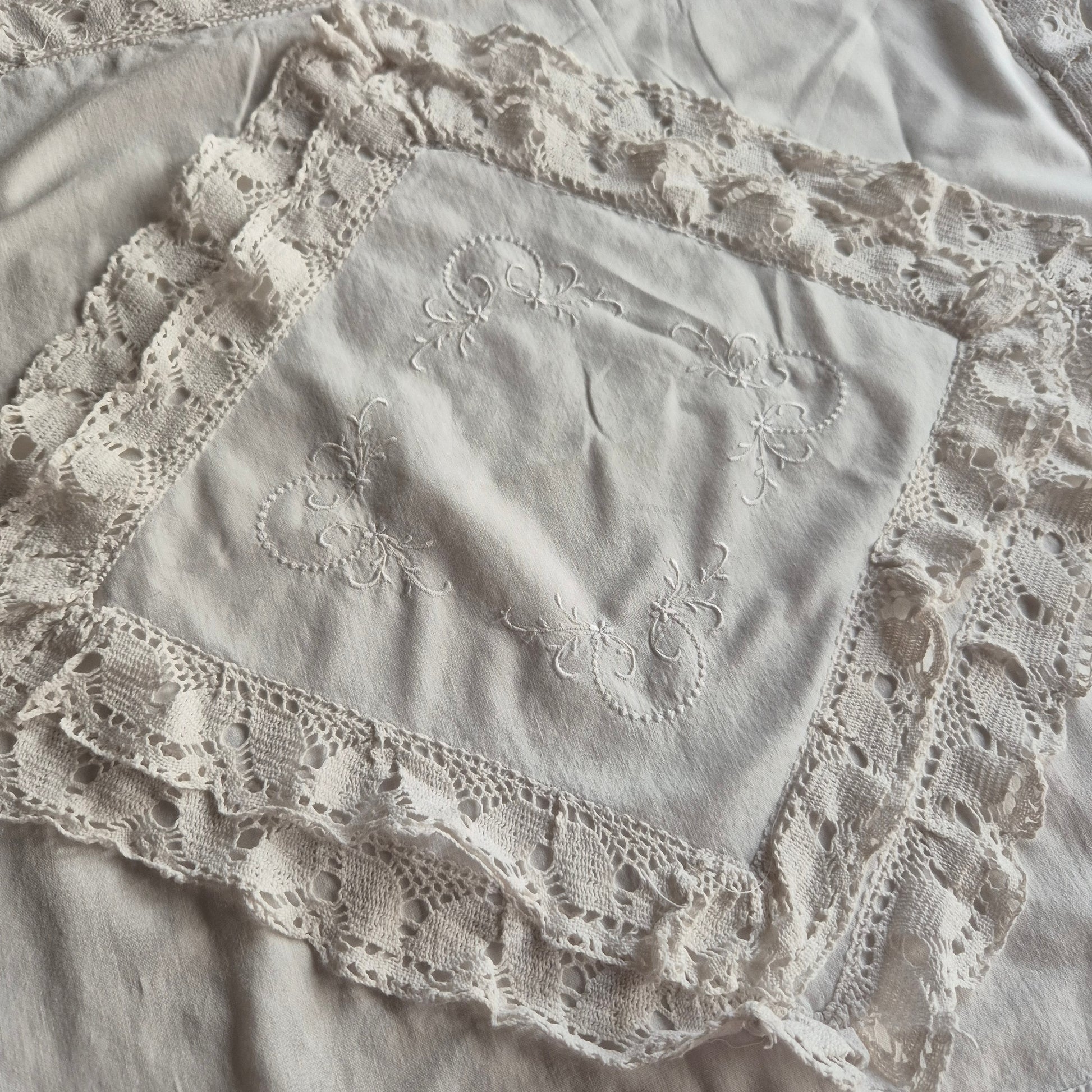 Antiker großer Jugendstil Kopfkissenbezug mit Häkelspitze 70x80cm Baumwolle weiß