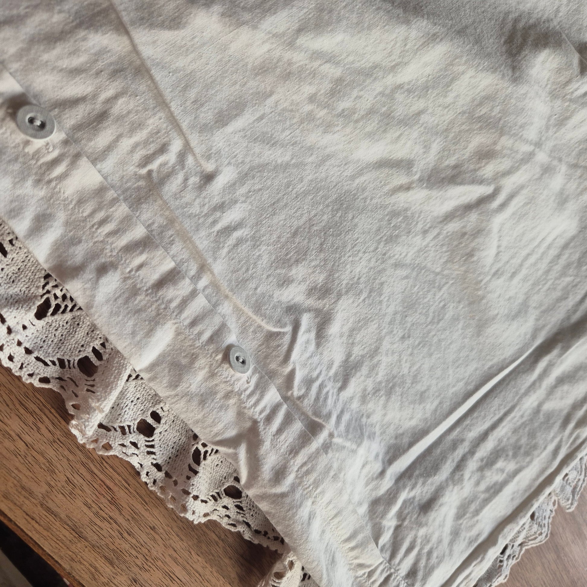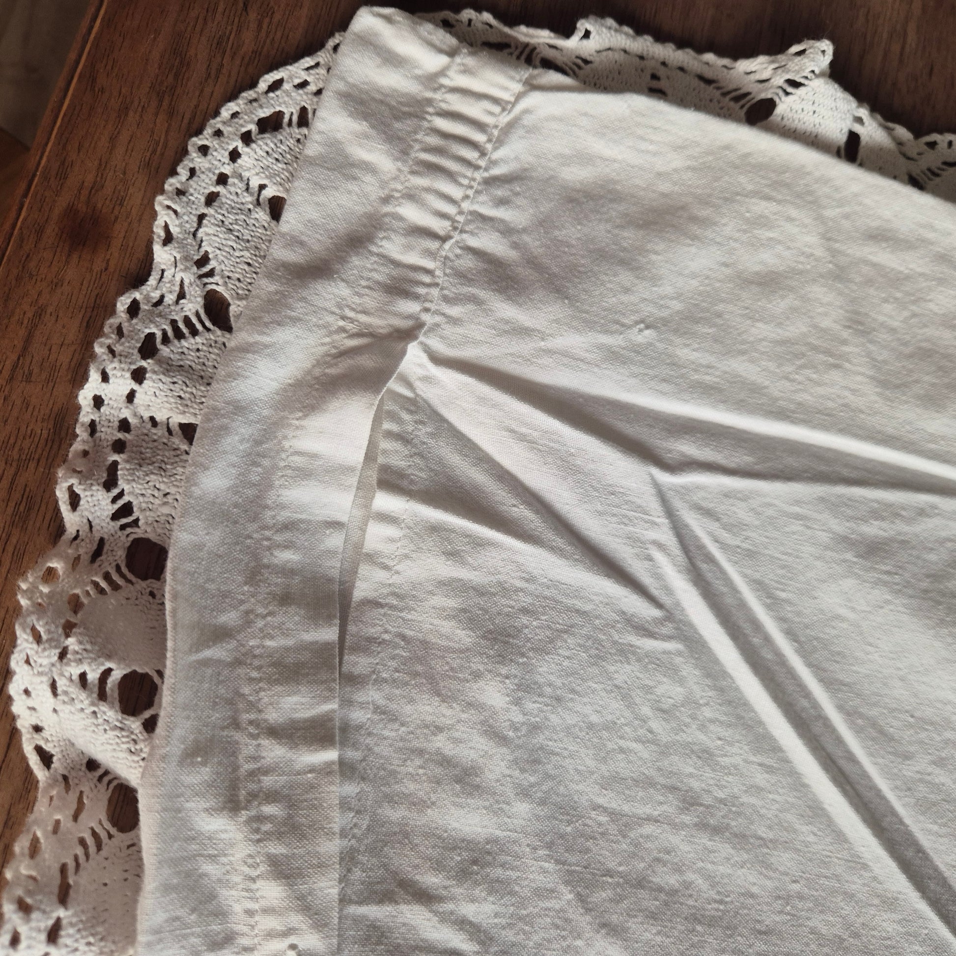 Dieser antike Kopfkissenbezug aus weißer Baumwolle bringt mit seiner zarten Häkelspitze nostalgischen Charme in dein Schlafzimmer. Mit großzügigen 70x80 cm bietet er nicht nur Komfort, sondern auch einen verspielten Vintage-Look, der jedes Kissen zum Hingucker macht. Perfekt, um deinem Bett eine liebevolle, zeitlose Note zu verleihen!