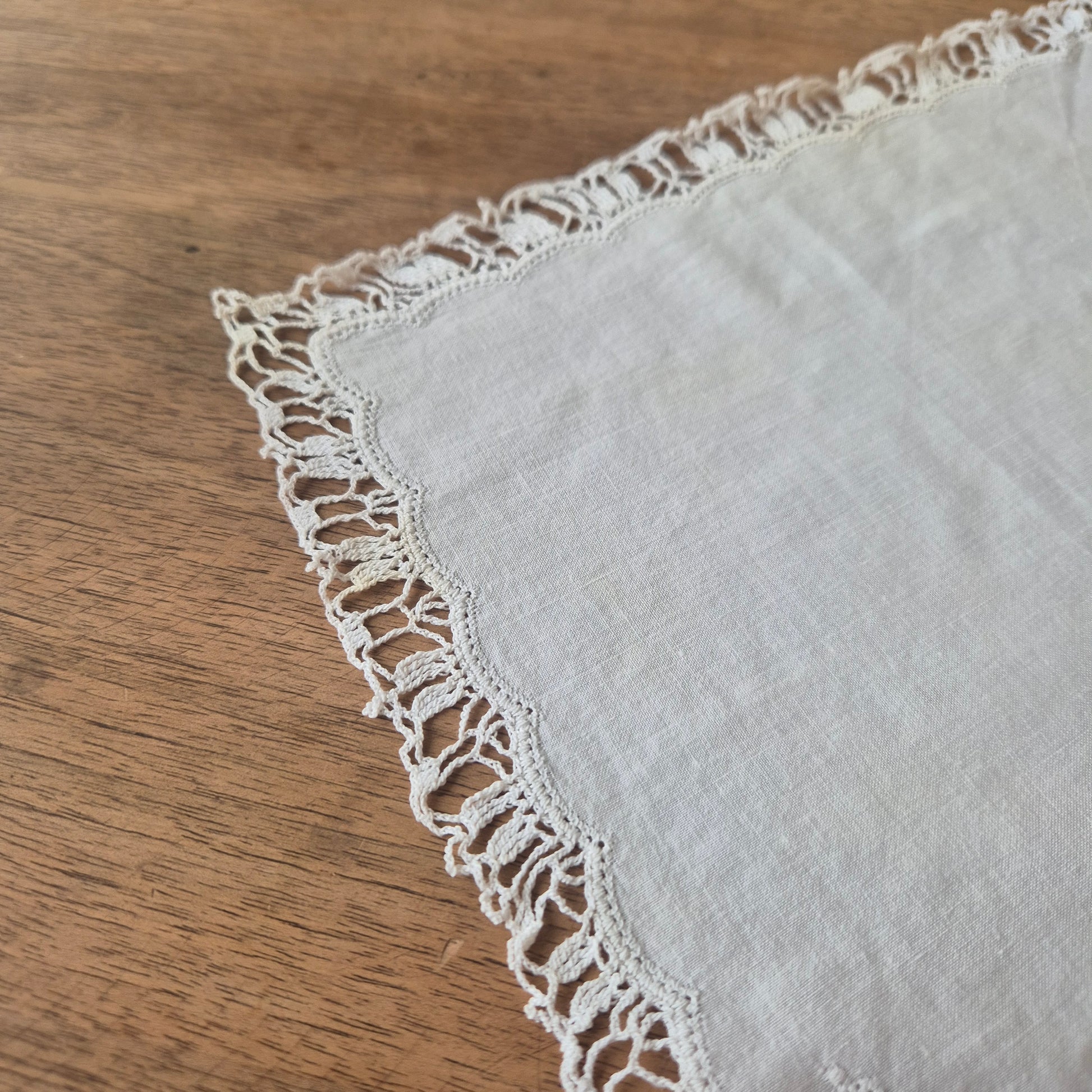 Vintage Stofftaschentuch weiß Stickerei Baumwolle gehäkelt/geklöppelt 28x28cm (Flecken)