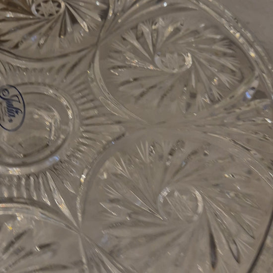 Bringen Sie mit dieser verspielten Vintage Bleikristall Kuchenplatte aus den 60er Jahren Charme und Stil auf Ihren Tisch. Der elegante Ständer mit Fuß und die filigranen Musterornamente verleihen jeder Torte das gewisse Extra – perfekt, um Ihre süßen Meisterwerke gekonnt in Szene zu setzen und bewundernde Blicke zu ernten. Ein zeitloses Stück, das Feiern noch schöner macht!