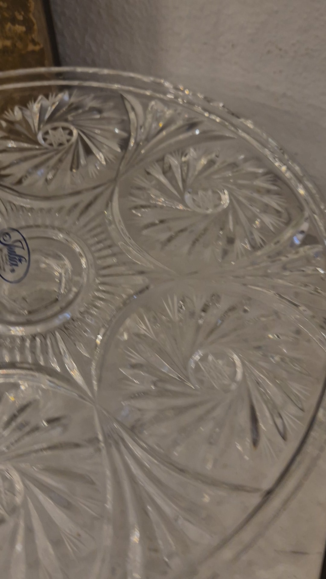Vintage Bleikristall Kuchenplatte/Tortenplatte Ständer mit Fuß 60er Jahre mit Muster Ornamenten