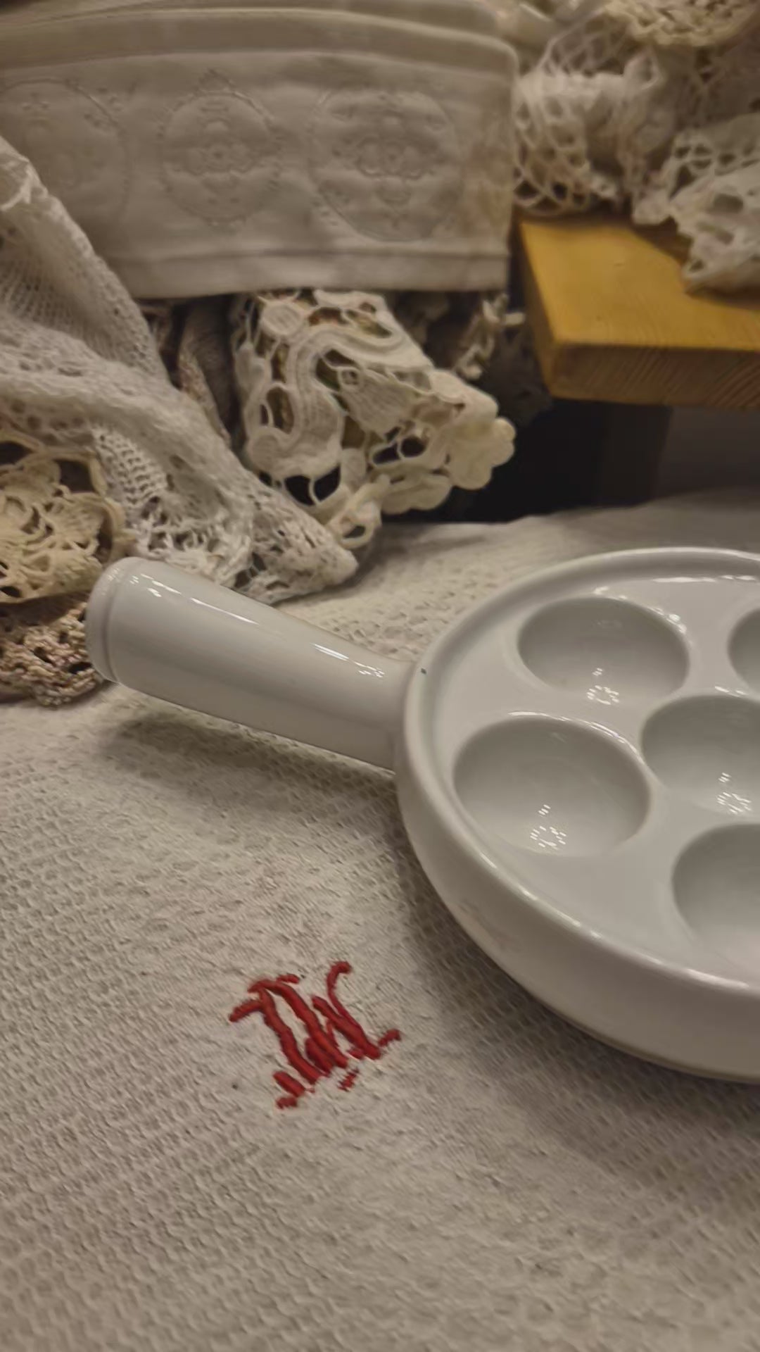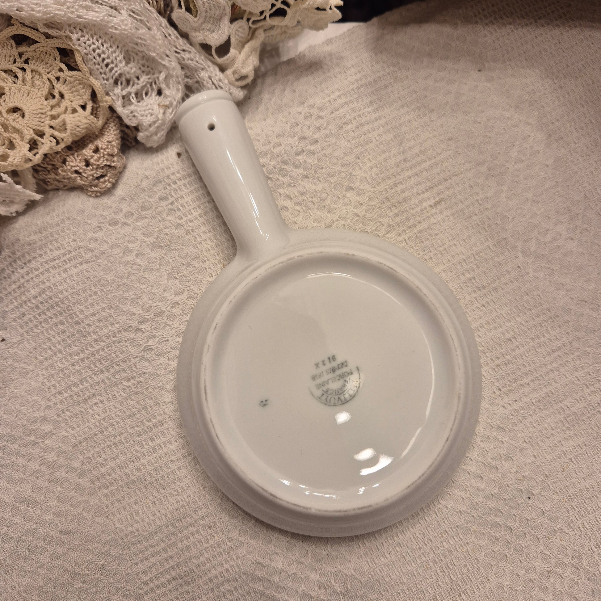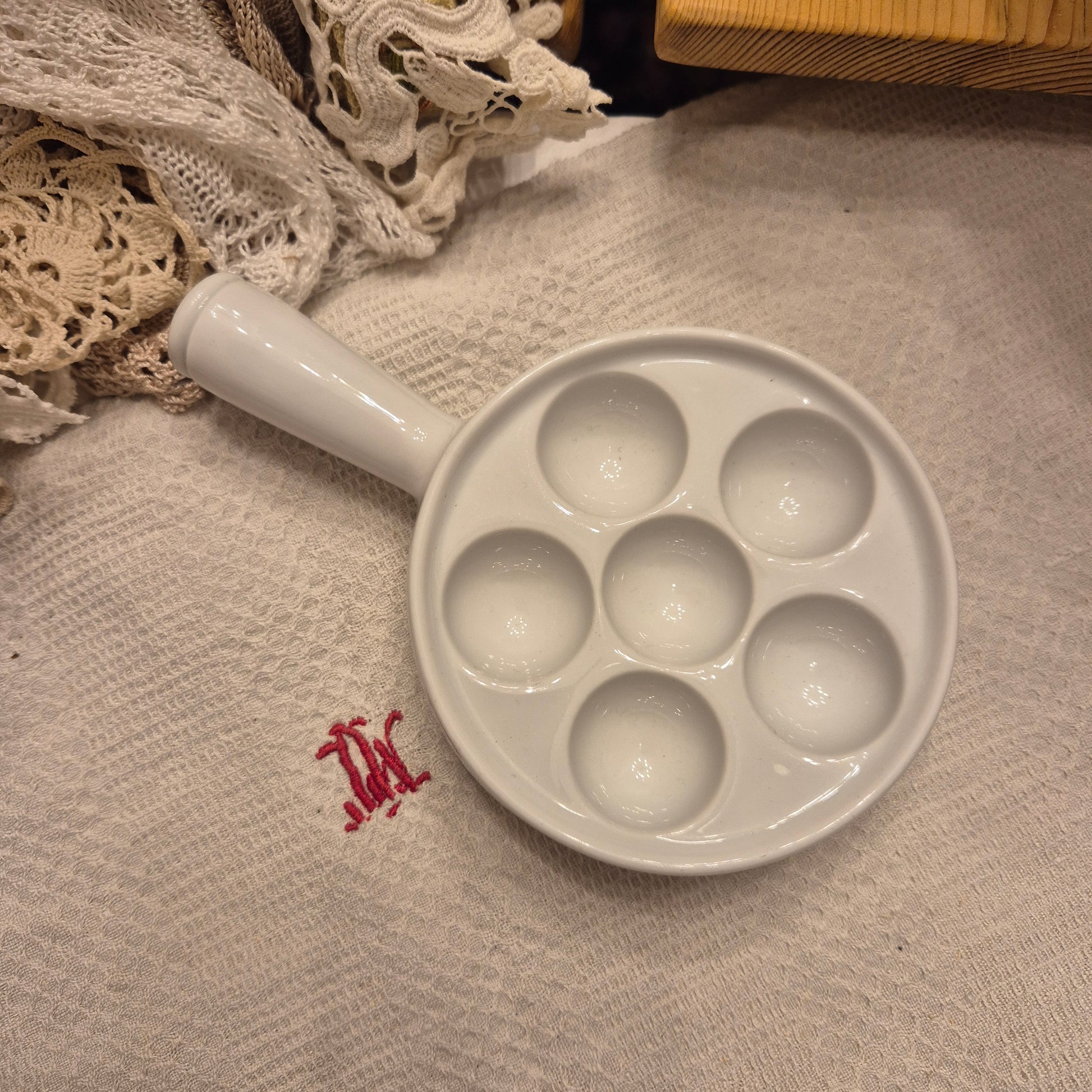 Antike Pillivuyt Schneckenpfanne 6 Augen Vintage Eierplatte Eierteller Porzellan weiß