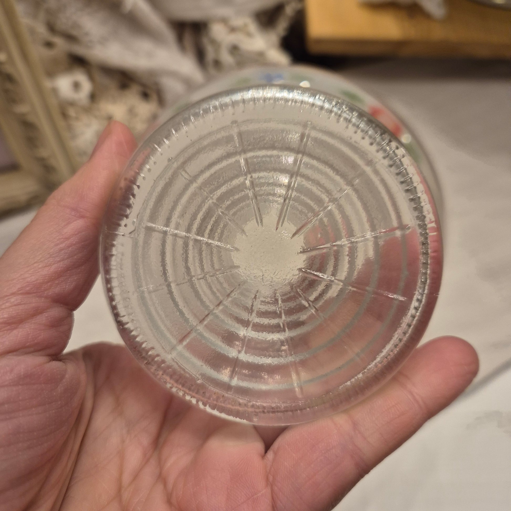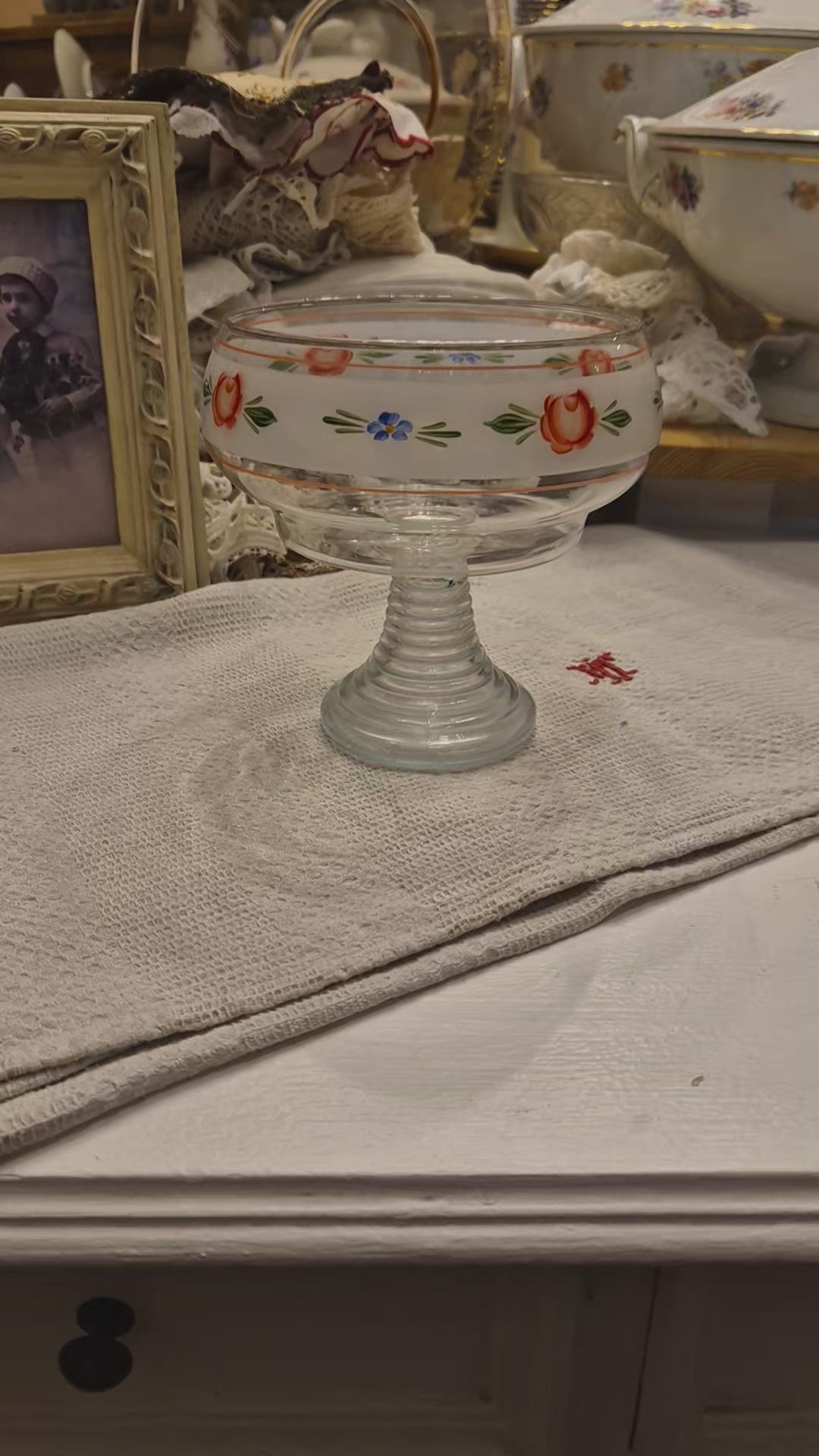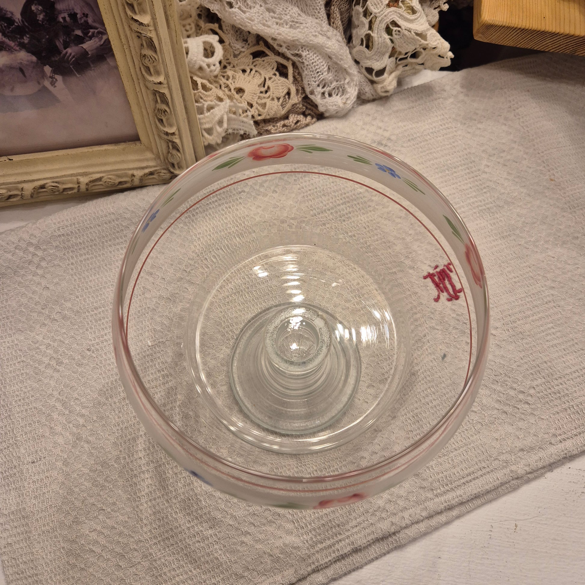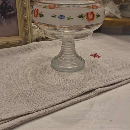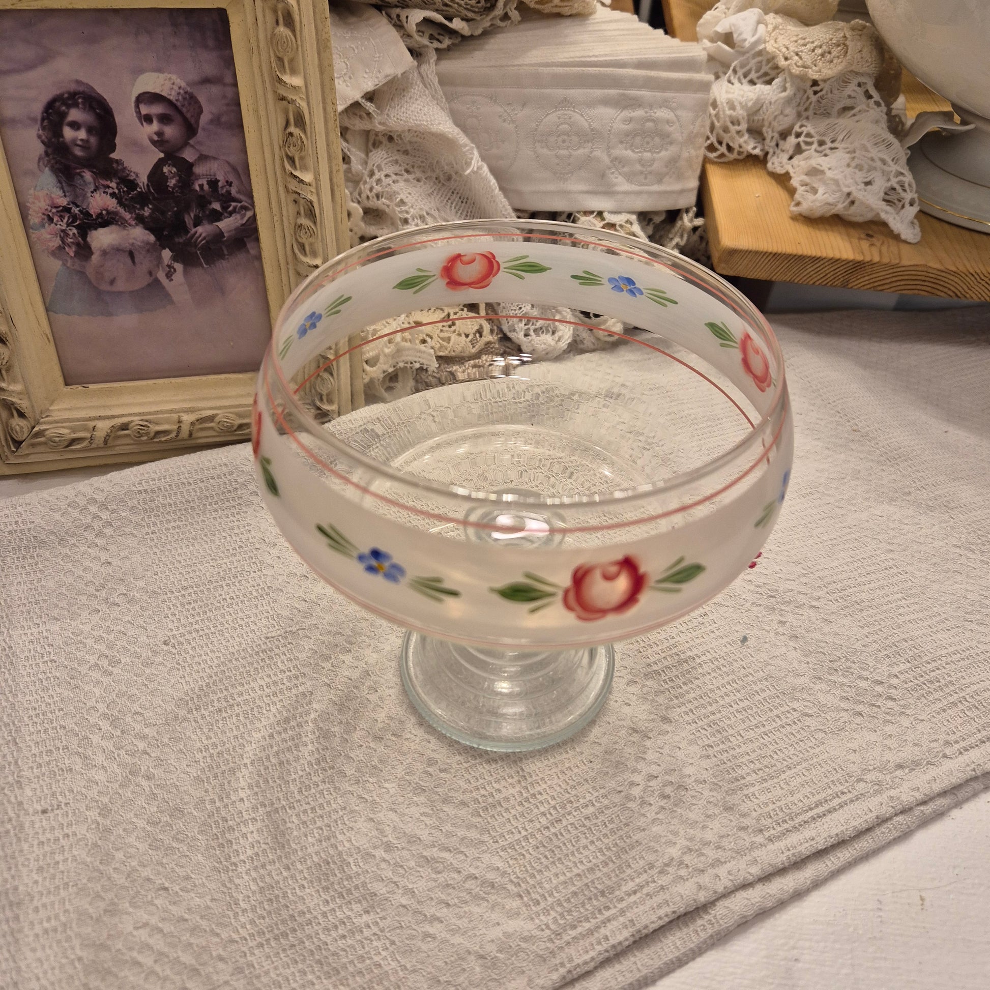 Vintage Glas Schale mit Fuß Bonbon Rosenmalerei Blumen Handbemalt