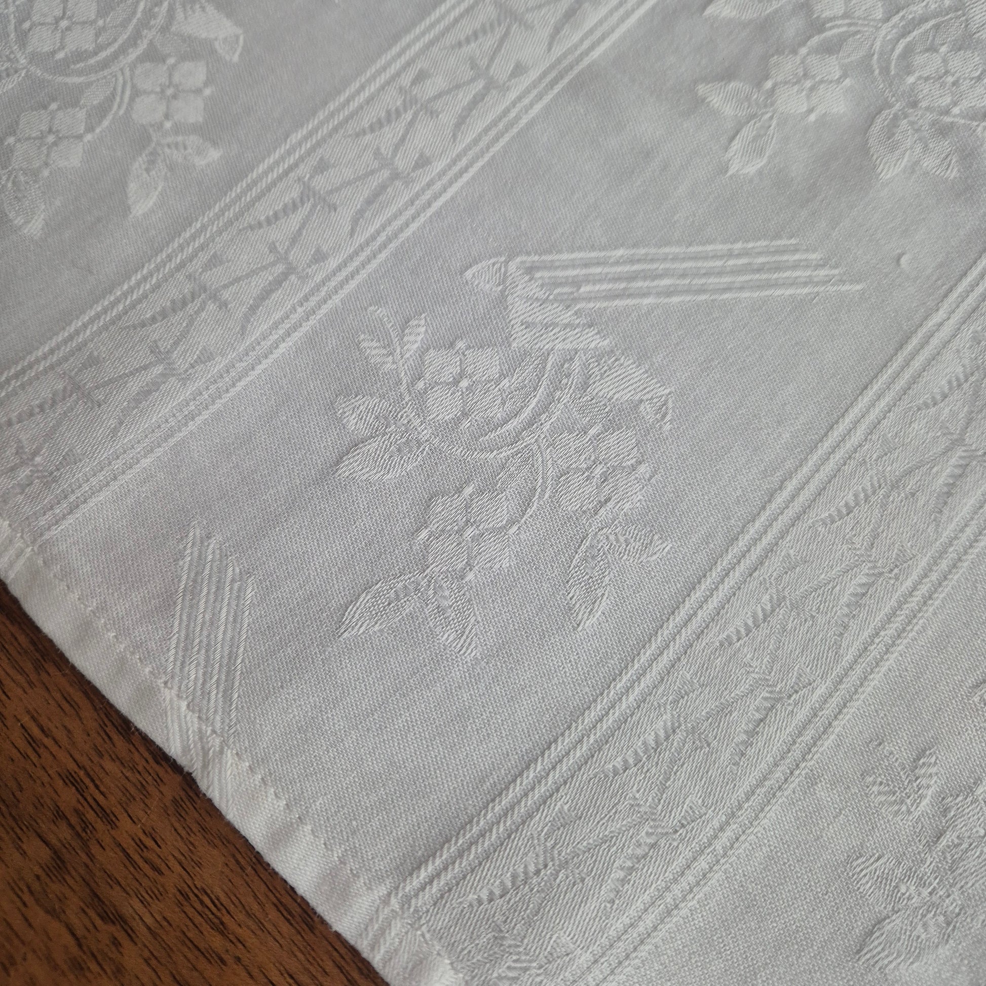 Vintage Tischdecke Tuch weiß 74x 130cm Damast weiß Baumwolle