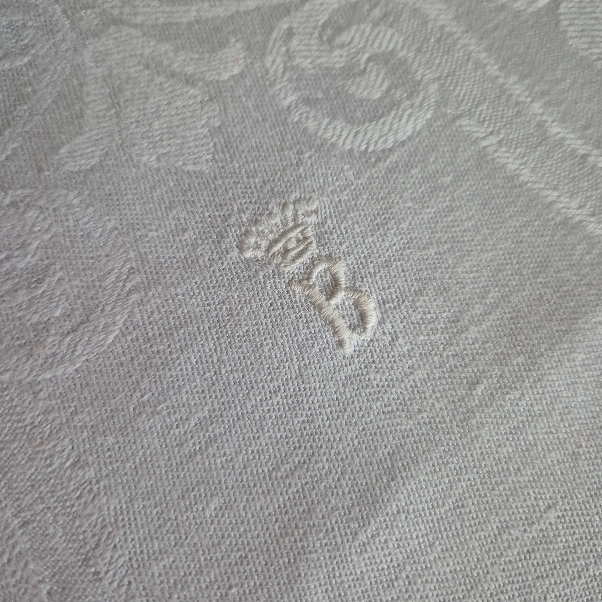 Jugendstil Küchen-&Geschirrtuch Damast mit Initialen B. und Krone 50x115cm Baumwolle weiß