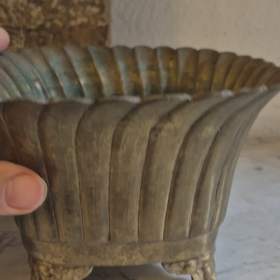 Dieser charmante Vintage Messing Übertopf bringt mit seiner authentischen Patina eine elegante Geschichte in dein Zuhause. Ideal, um deinen Pflanzen einen stilvollen und zugleich herzhaften Look zu verleihen. Ein Dekostück mit Charakter, das jede Pflanze zum Star macht – ein bisschen Retro, ein bisschen schick und ganz schön pfiffig!