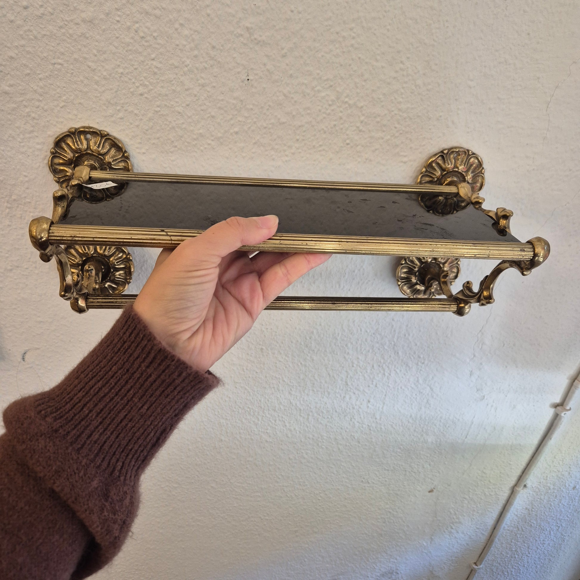 Antikes Messing Badregal unterm Spiegel Ablage Badablage Spiegelablage schwarz gold