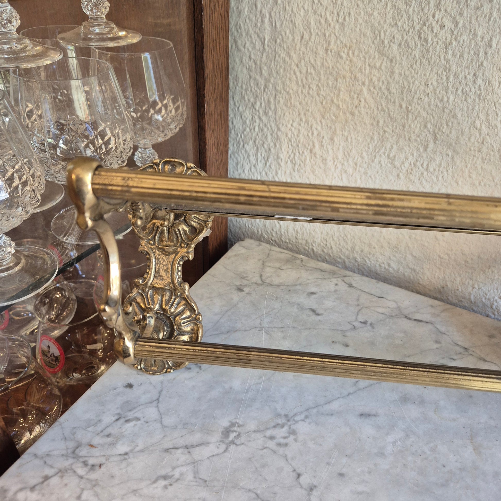 Bringen Sie mit diesem antiken Messing-Badregal in Schwarz-Gold einen Hauch von Vintage-Charme in Ihr Badezimmer! Perfekt unter dem Spiegel montiert, bietet es stilvolle Ablagefläche für all Ihre Badutensilien. Das elegante Design kombiniert praktische Funktion mit einem verspielten Retro-Flair – so wird das tägliche Schönheitsritual zum kleinen Design-Highlight.
