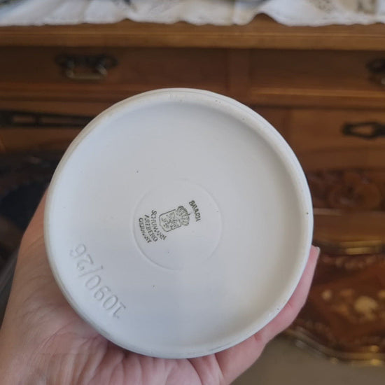 Schuhmann Arzberg Germany Porzellan Vase weiß Relief und Henkel