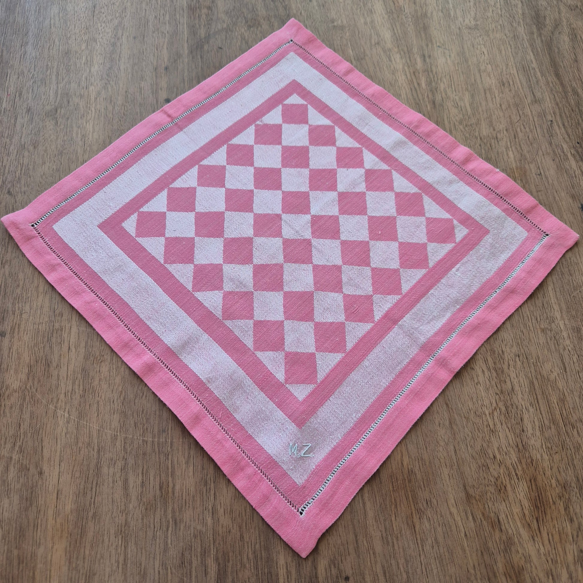Diese Vintage Stoffserviette in Rosa und Weiß, mit dem charmanten Monogramm M.Z, misst 34x34 cm und besteht aus hochwertiger Baumwolle. Ein Hauch von Nostalgie und Stil. Perfekt, um Ihren Mitmenschen ein Lächeln ins Gesicht zu zaubern!